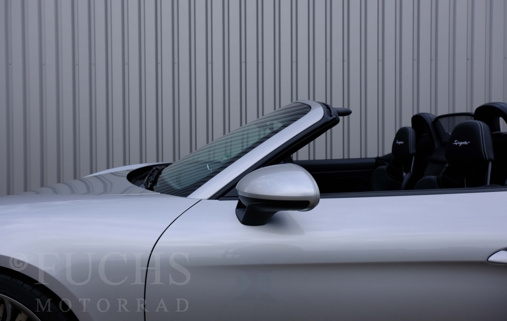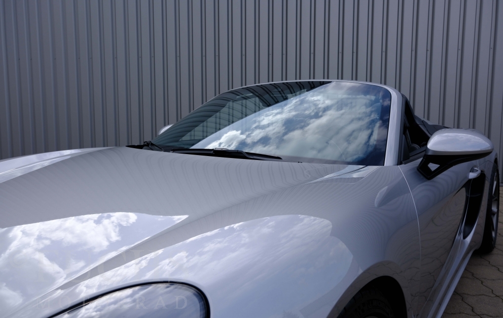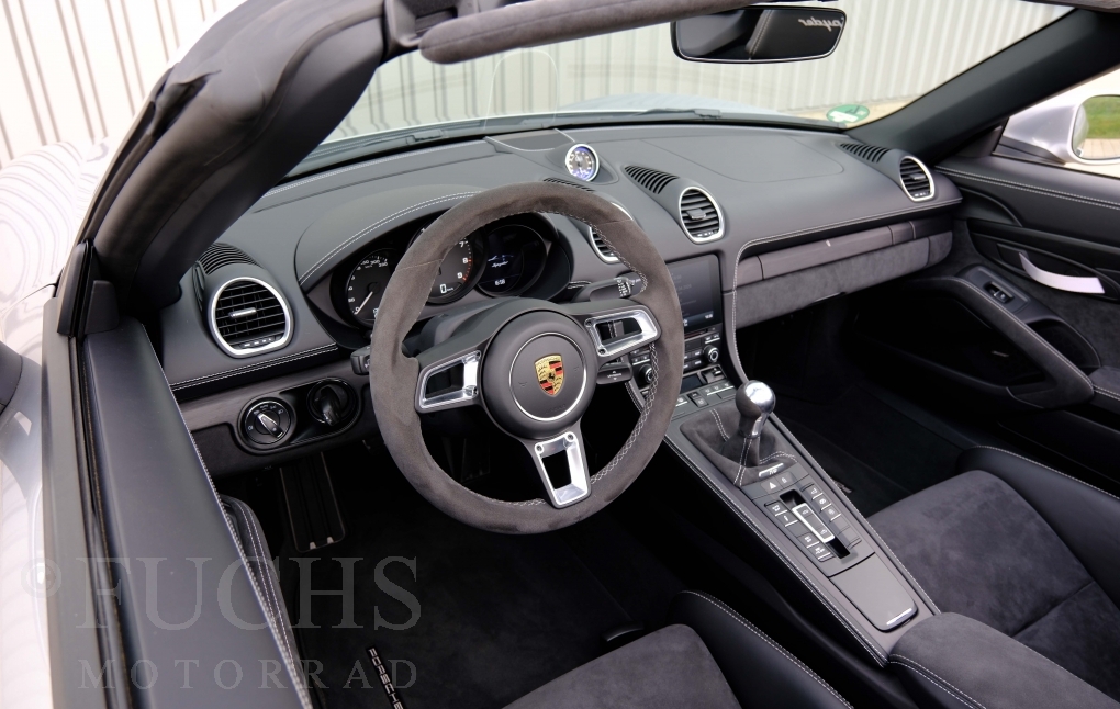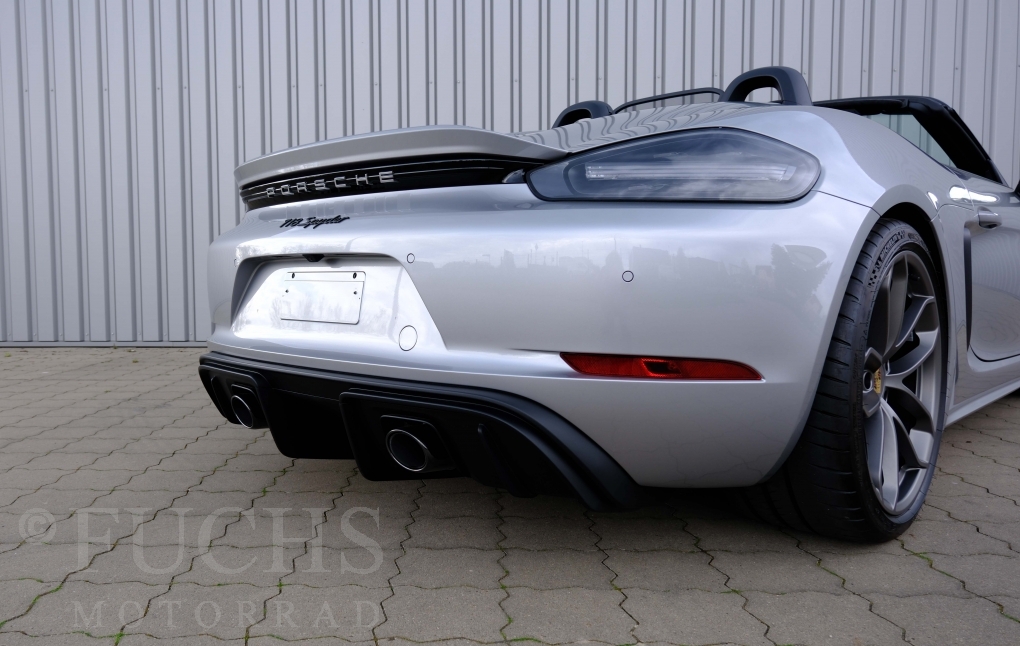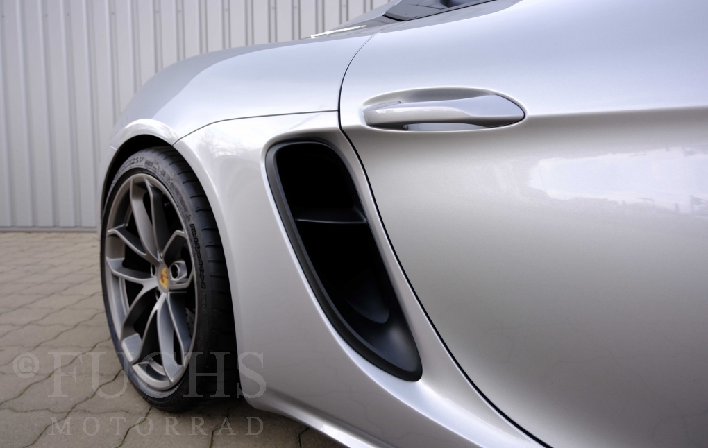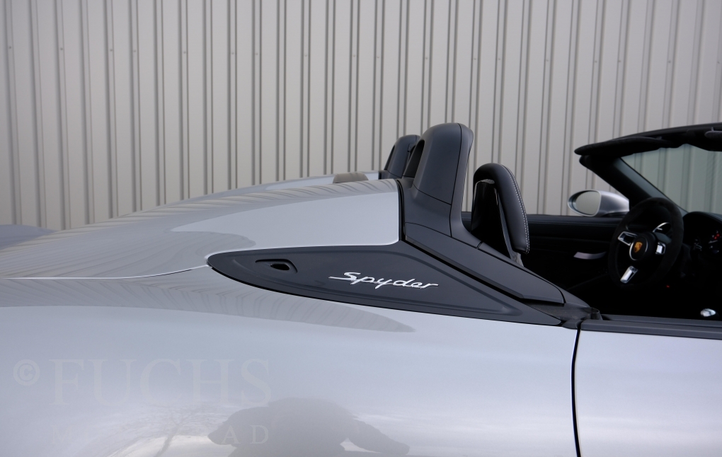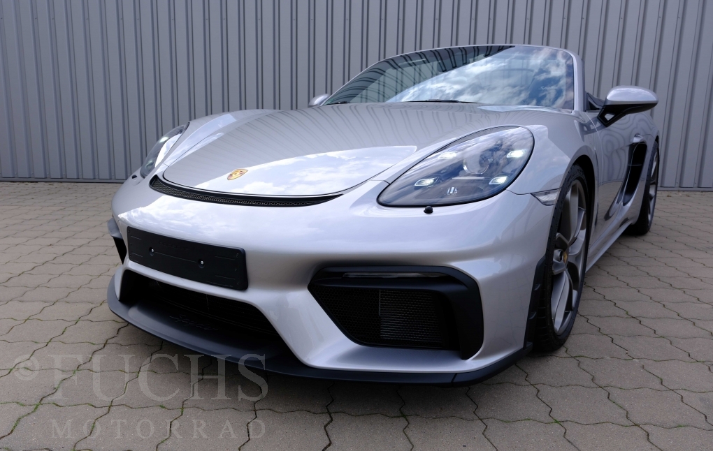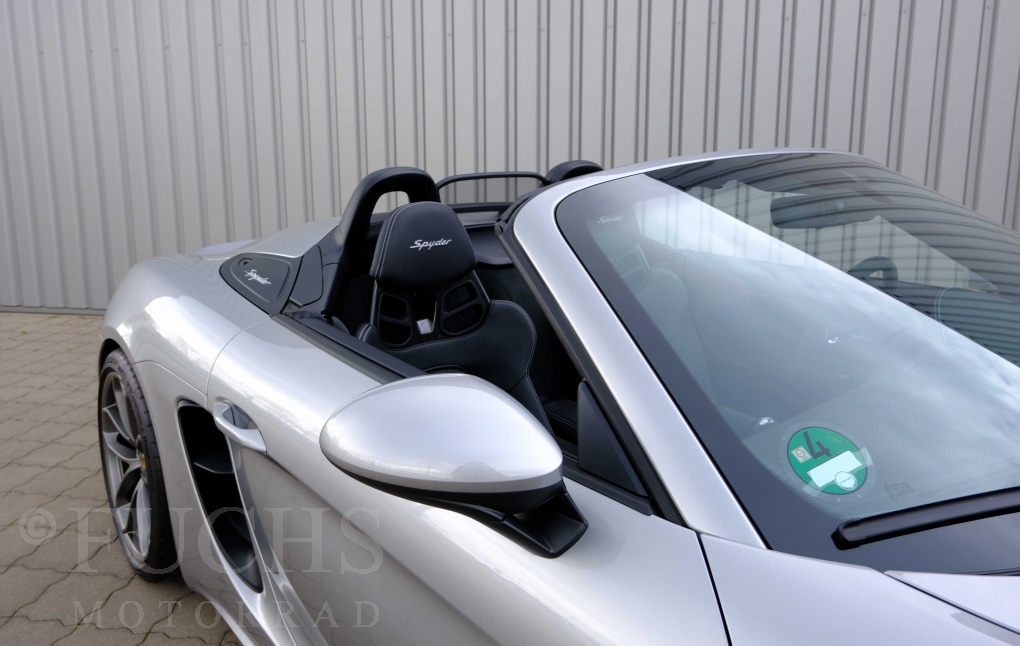 Dieser Porsche 718 Spyder in der Farbe GT-Silbermetallic. Der Spyder verfügt über eine hochwertige und umfangreiche Ausstattung, darunter Handschaltgetriebe, Carbon-Vollschalensitze sowie 20 Zoll Räder aus der Porsche Exclusice Manufaktur und hat lediglich nur einen Briefeintrag.