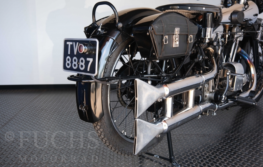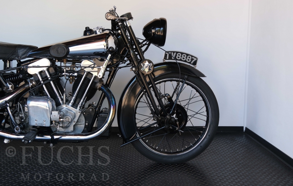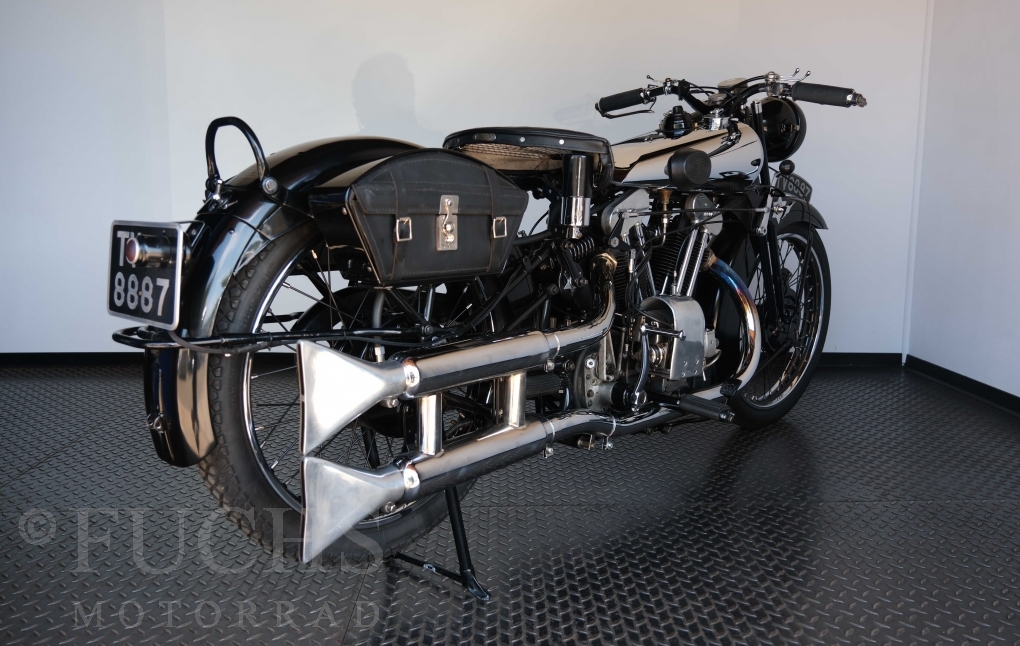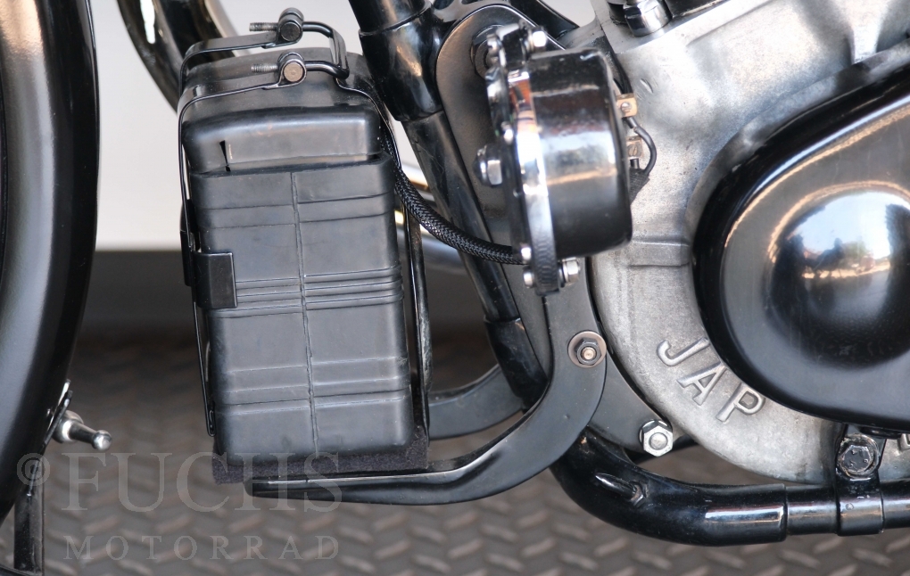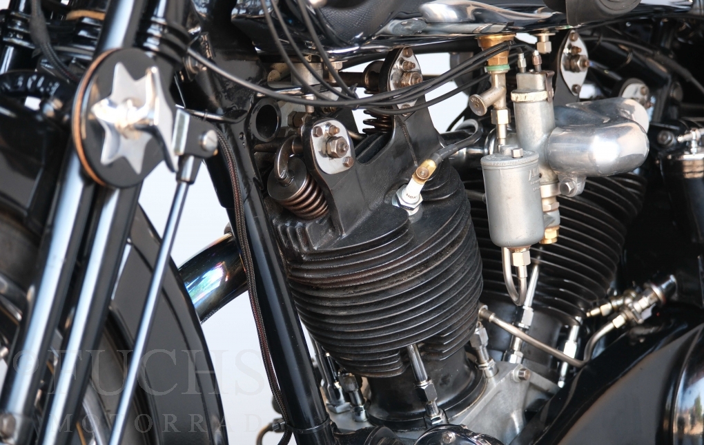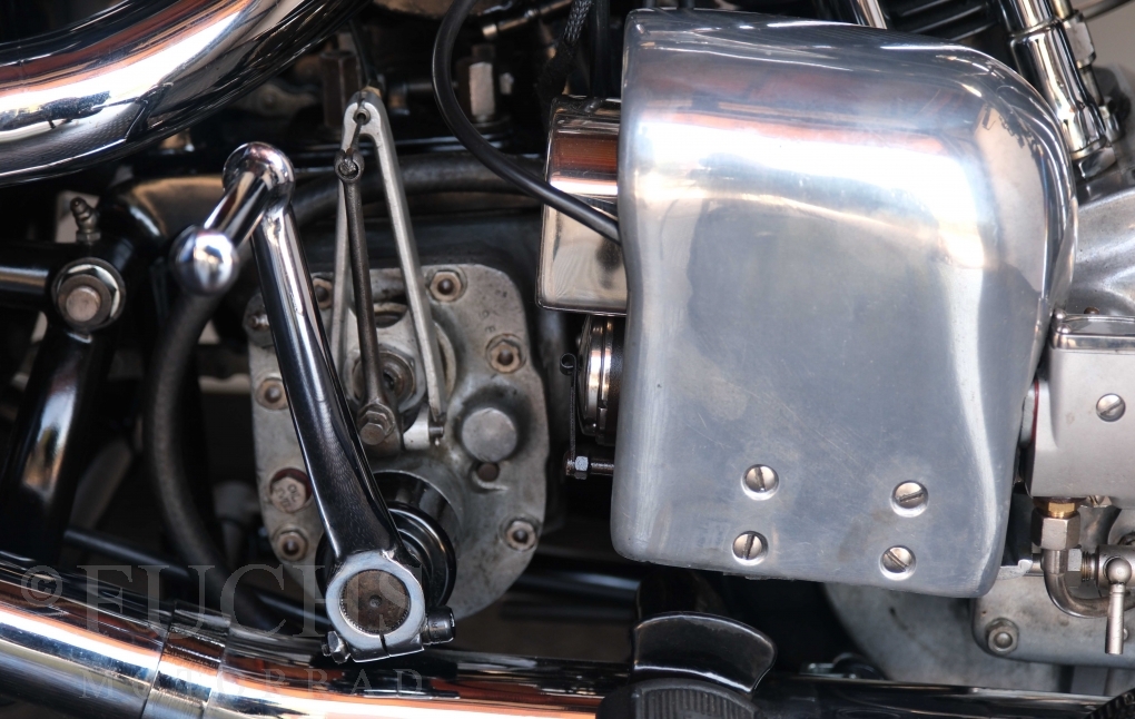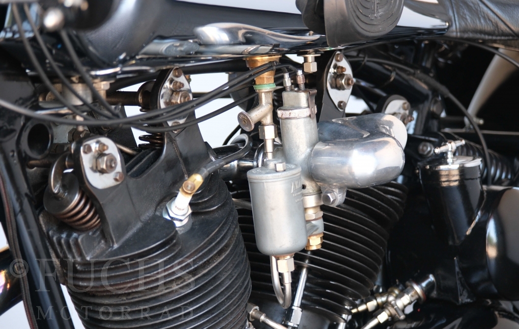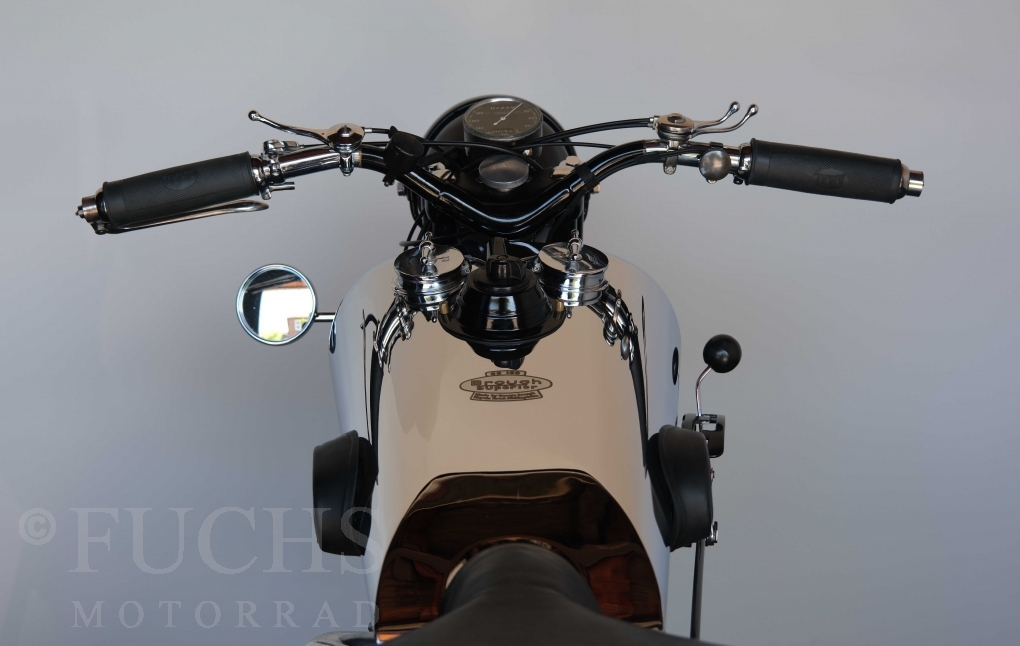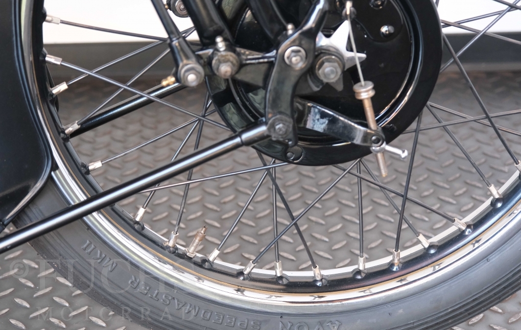 Die SS100 ist ein erstklassiges Exemplar. Zunächst ist es eine Offerte für anspruchsvolle Motorradsammler. Die Motornummer, Fahrgestellnummer und Getriebenummer entsprechen der Works Record card oder einfach formuliert die Brough hat matching numbers. Von eminenter Bedeutung ist der Motor, denn diese SS100 wurde noch serienmäßig mit einem JAP Motor ausgeliefert. Bei unserer SS100 ist der originale JTO/Z Motor verbaut. Im weiteren Sinne ist die Brough in einem erstklassigen optischen und technischen Zustand und selbstverständlich fahrfertig. Deutsche Fahrzeugpapiere liegen vor.