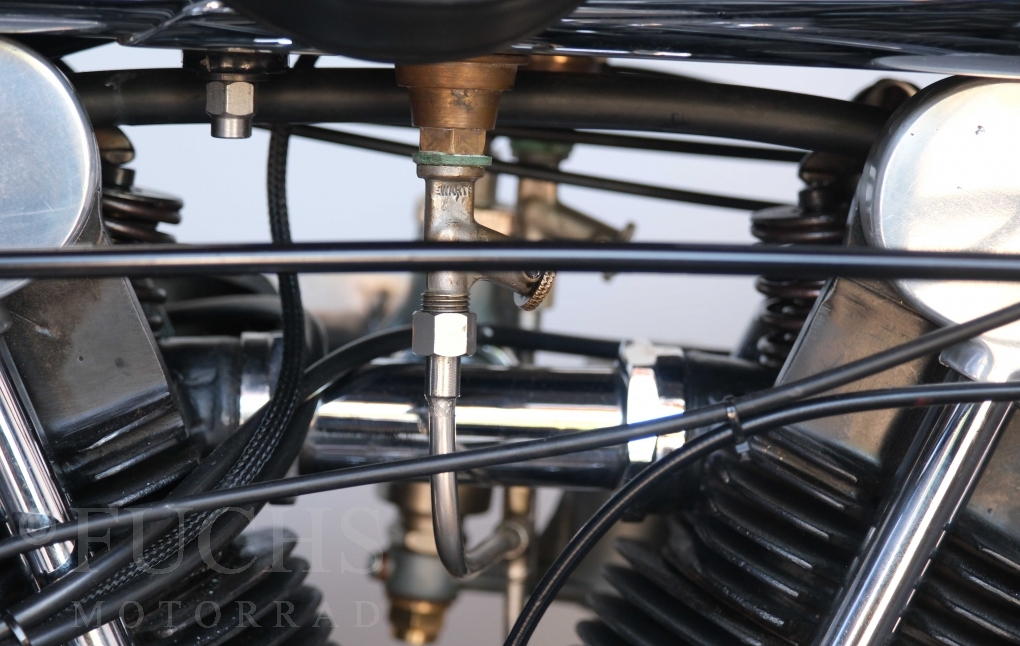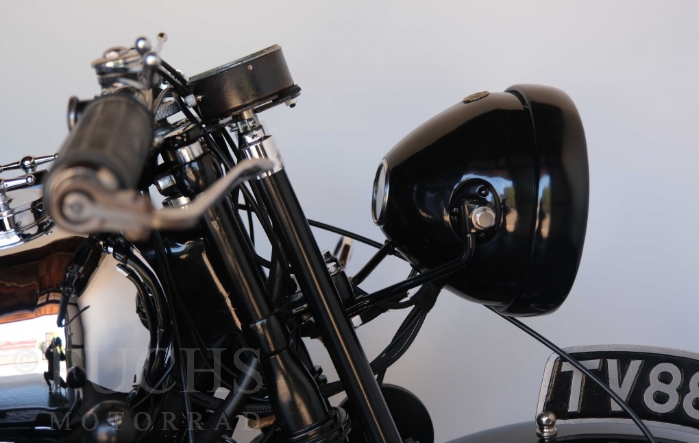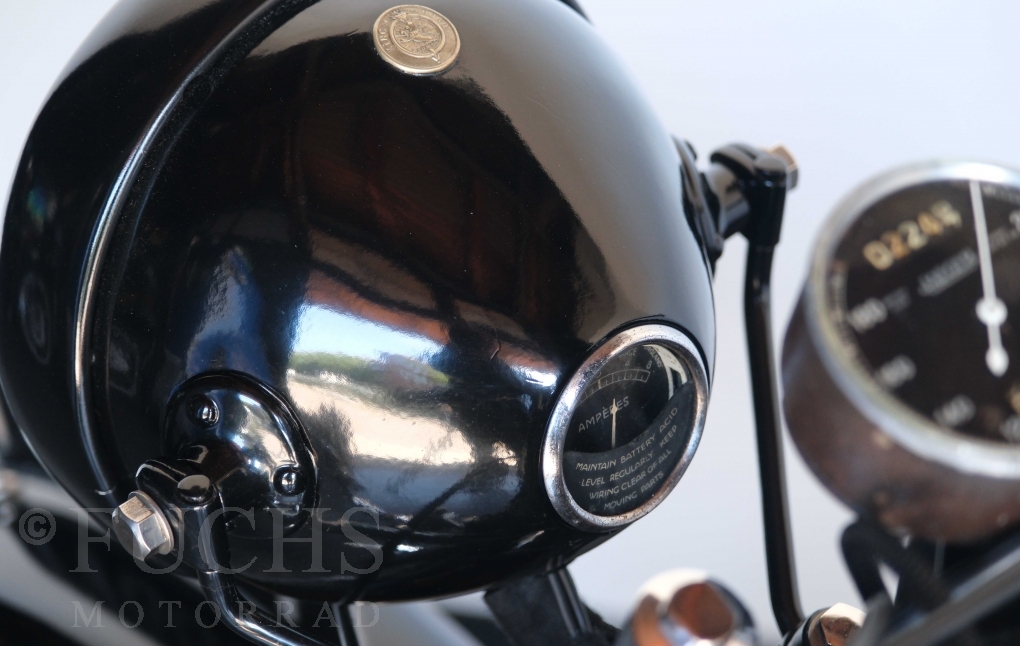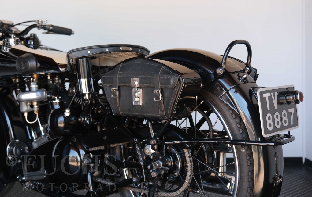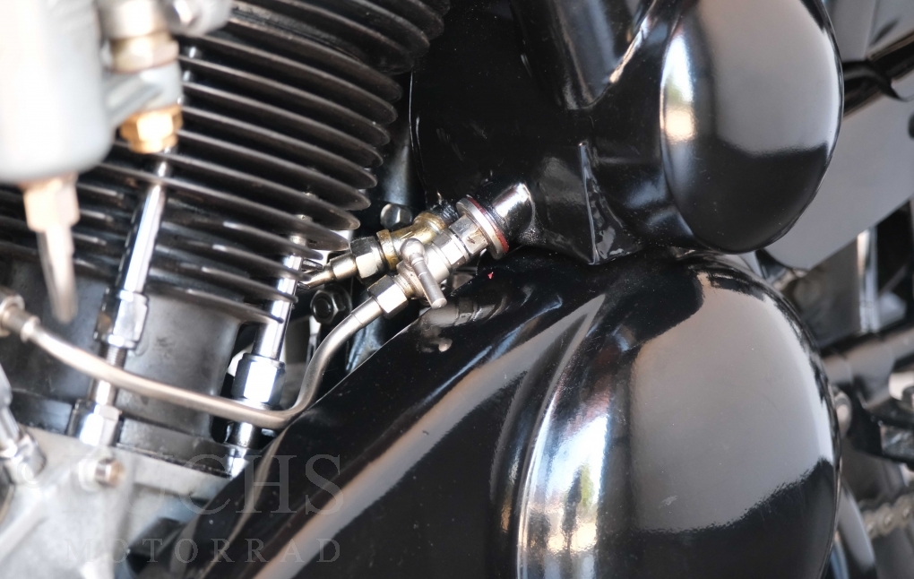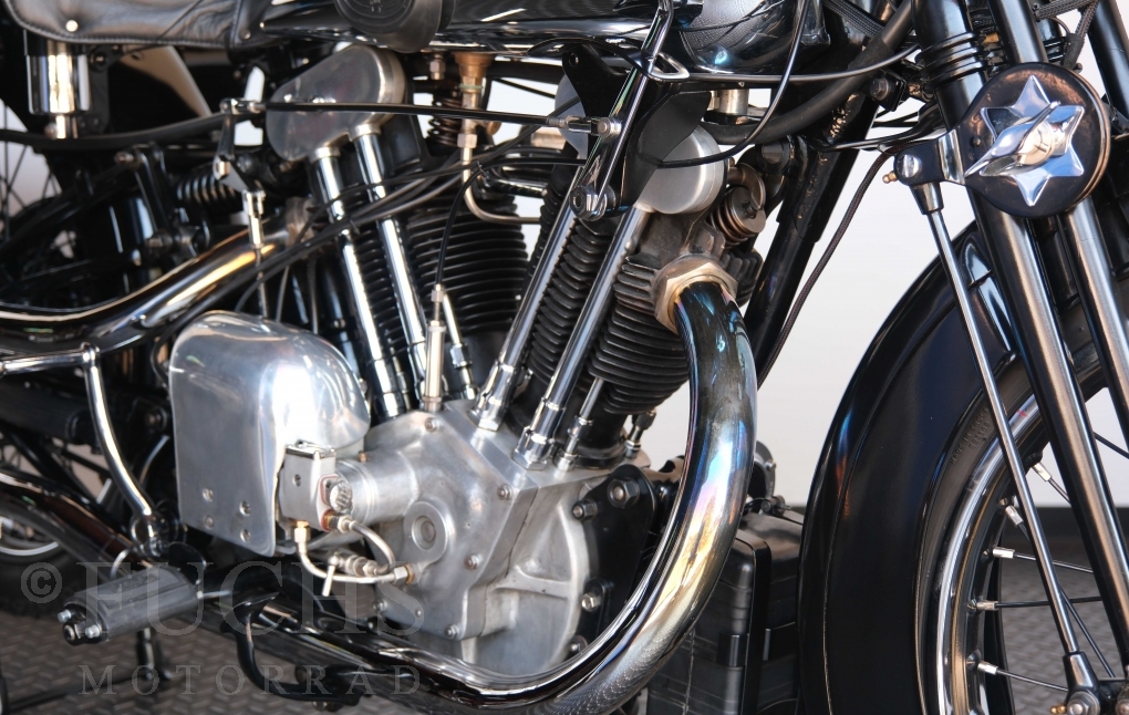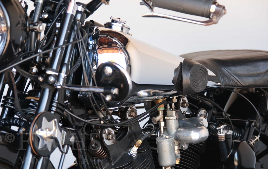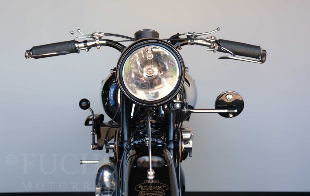 Die SS100 ist ein erstklassiges Exemplar. Zunächst ist es eine Offerte für anspruchsvolle Motorradsammler. Die Motornummer, Fahrgestellnummer und Getriebenummer entsprechen der Works Record card oder einfach formuliert die Brough hat matching numbers. Von eminenter Bedeutung ist der Motor, denn diese SS100 wurde noch serienmäßig mit einem JAP Motor ausgeliefert. Bei unserer SS100 ist der originale JTO/Z Motor verbaut. Im weiteren Sinne ist die Brough in einem erstklassigen optischen und technischen Zustand und selbstverständlich fahrfertig. Deutsche Fahrzeugpapiere liegen vor.
