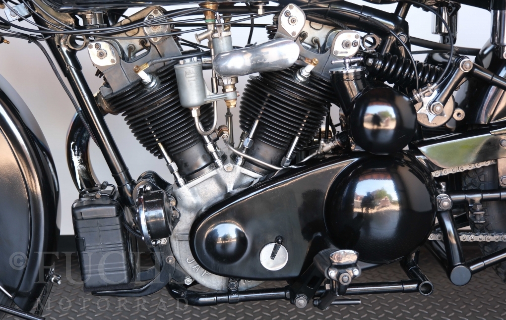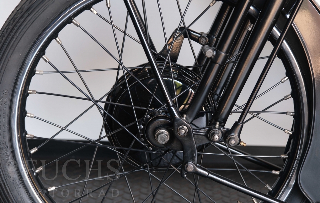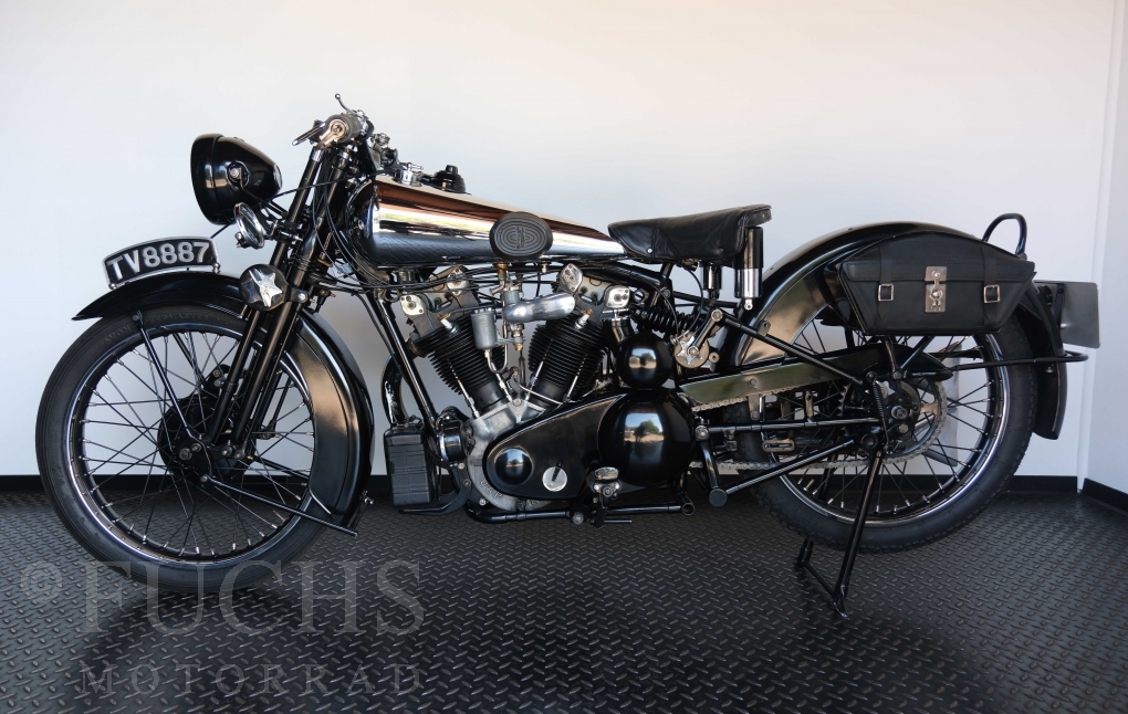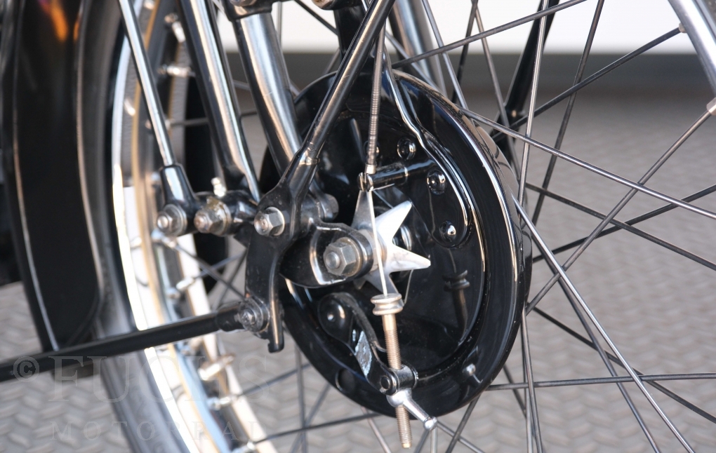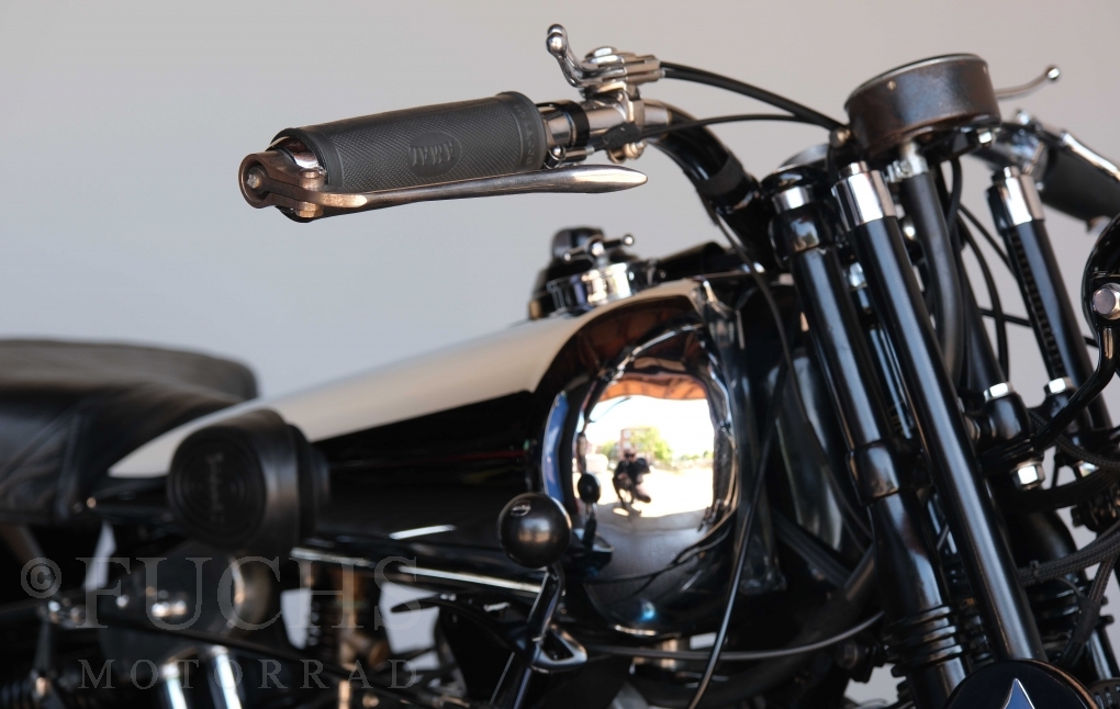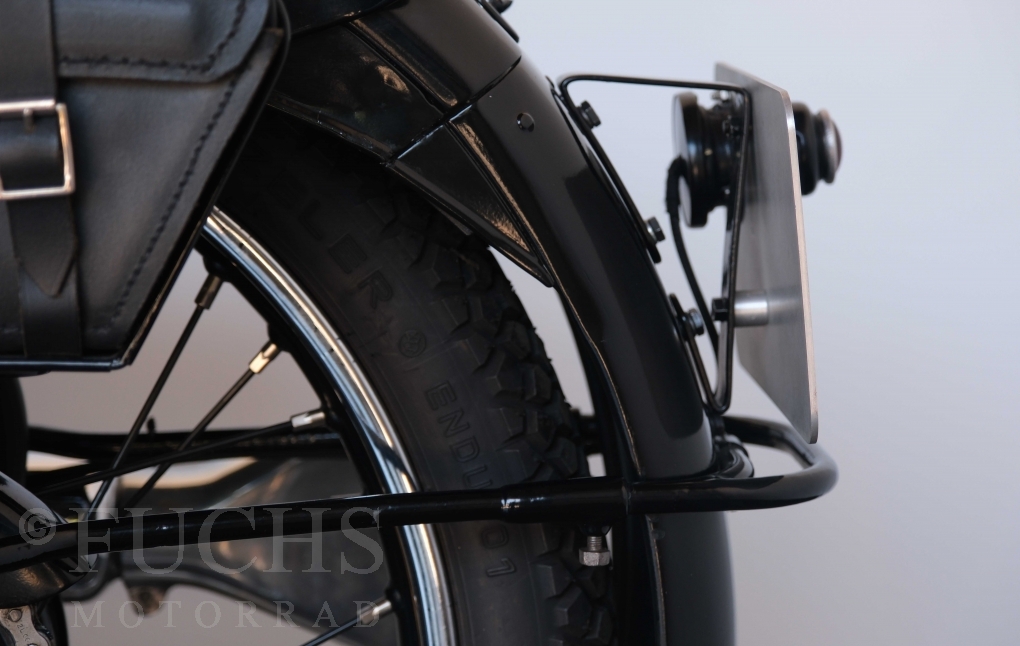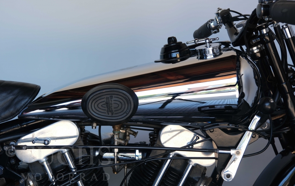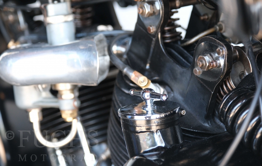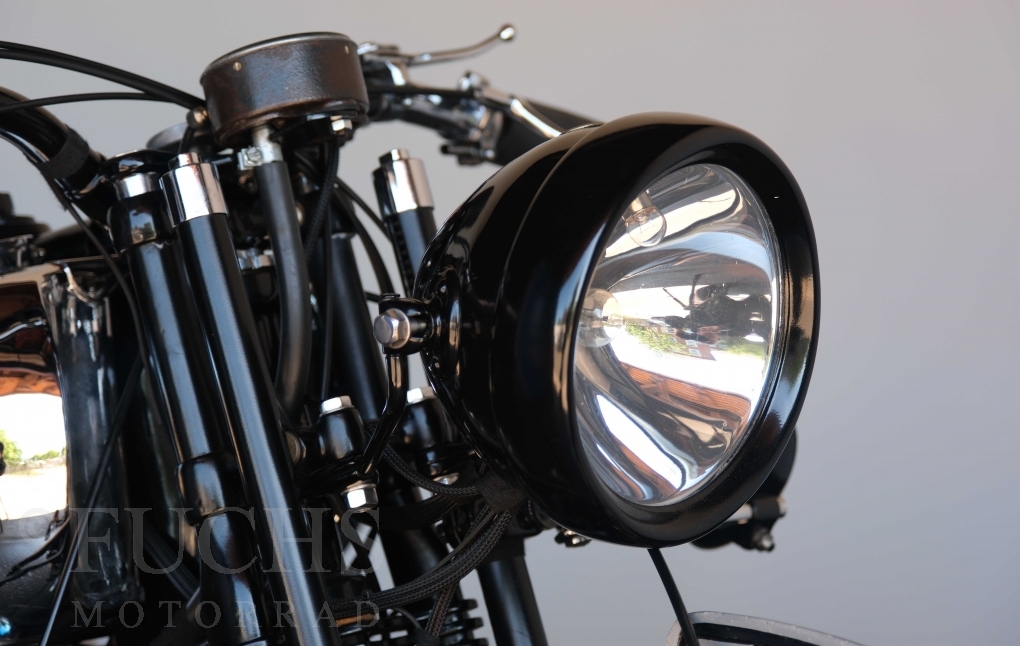 Die SS100 ist ein erstklassiges Exemplar. Zunächst ist es eine Offerte für anspruchsvolle Motorradsammler. Die Motornummer, Fahrgestellnummer und Getriebenummer entsprechen der Works Record card oder einfach formuliert die Brough hat matching numbers. Von eminenter Bedeutung ist der Motor, denn diese SS100 wurde noch serienmäßig mit einem JAP Motor ausgeliefert. Bei unserer SS100 ist der originale JTO/Z Motor verbaut. Im weiteren Sinne ist die Brough in einem erstklassigen optischen und technischen Zustand und selbstverständlich fahrfertig. Deutsche Fahrzeugpapiere liegen vor.