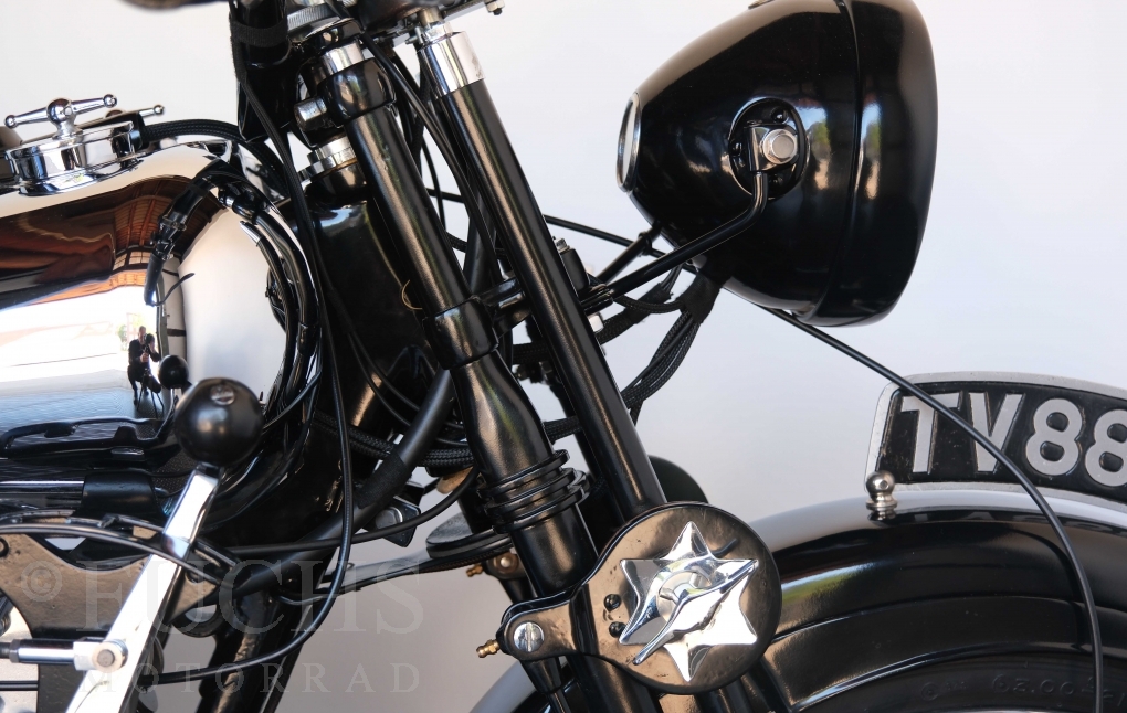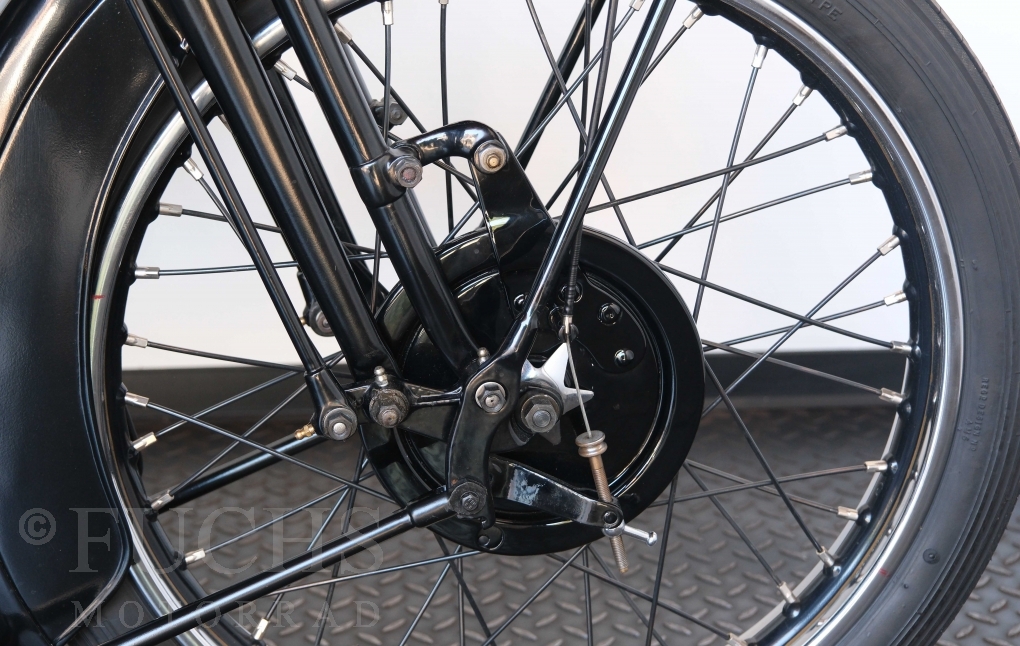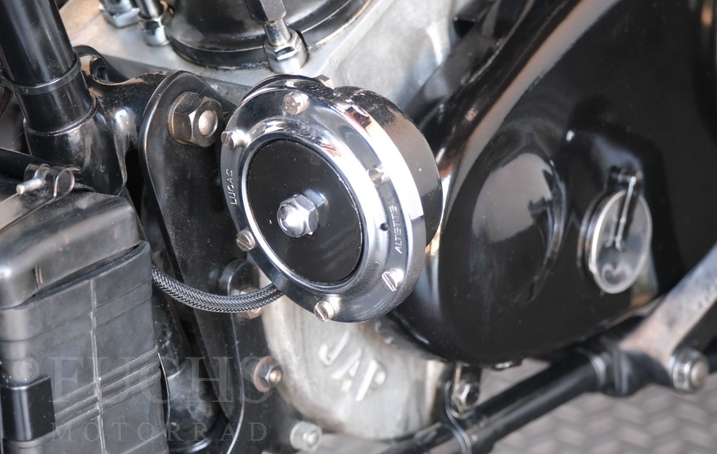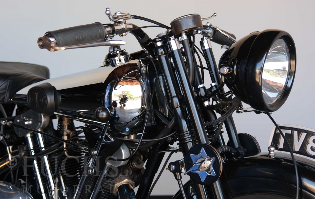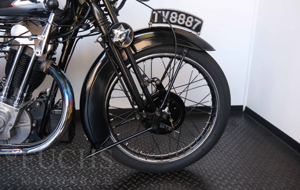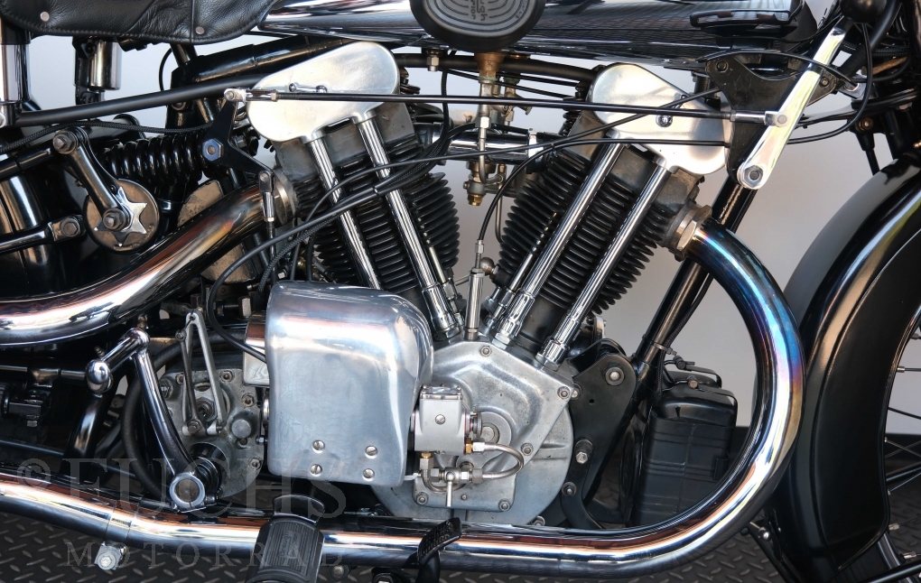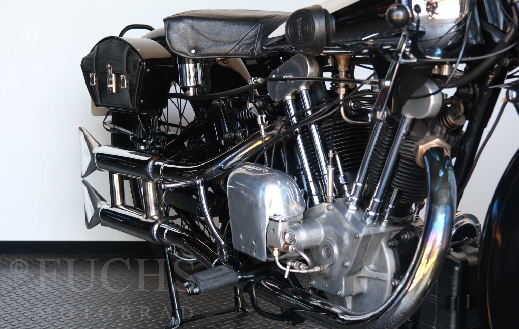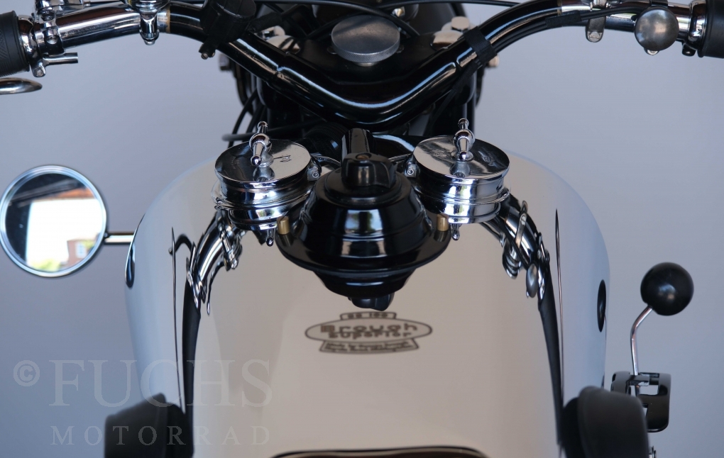 Die SS100 ist ein erstklassiges Exemplar. Zunächst ist es eine Offerte für anspruchsvolle Motorradsammler. Die Motornummer, Fahrgestellnummer und Getriebenummer entsprechen der Works Record card oder einfach formuliert die Brough hat matching numbers. Von eminenter Bedeutung ist der Motor, denn diese SS100 wurde noch serienmäßig mit einem JAP Motor ausgeliefert. Bei unserer SS100 ist der originale JTO/Z Motor verbaut. Im weiteren Sinne ist die Brough in einem erstklassigen optischen und technischen Zustand und selbstverständlich fahrfertig. Deutsche Fahrzeugpapiere liegen vor.