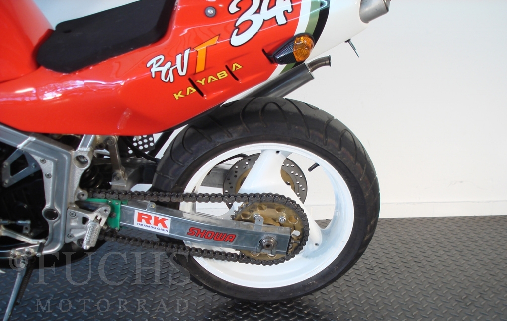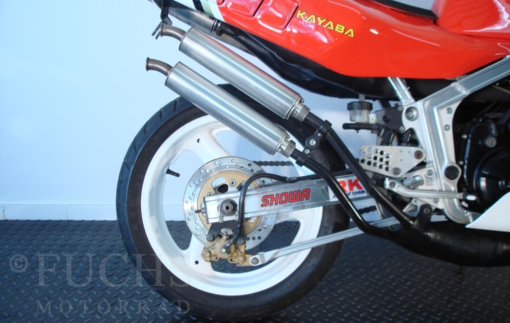 Unsere RG 500 läuft sehr gut, da der Motor überholt wurde. Optisch ist die Maschine in einem sehr schönen Zustand. Unsere RG 500 wurde optisch der ehemaligen Rennmaschine von Kevin Schwantz angeglichen. Die Vorderradgabel, Gabelbrücken, Räder, Bremsanlage stammen von einer GSX 750 R. Eine Gimbel Verkleidung wurde verbaut. Alle Änderungen sind im Fahrzeugbrief eingetragen.