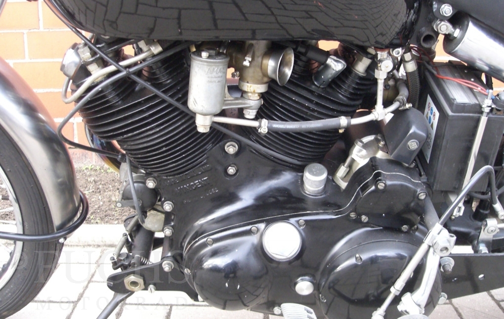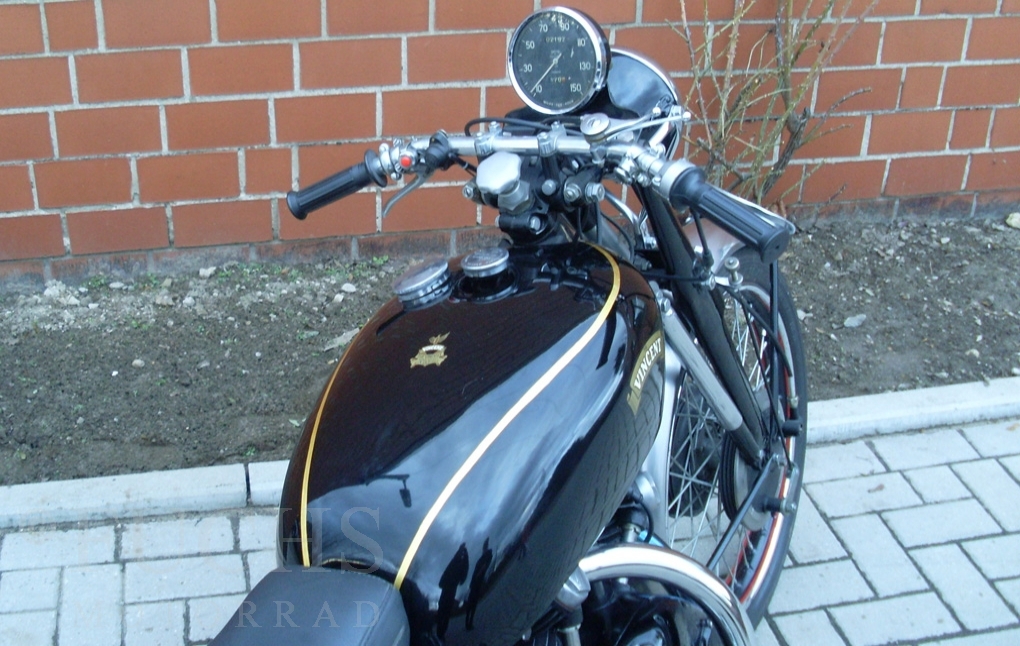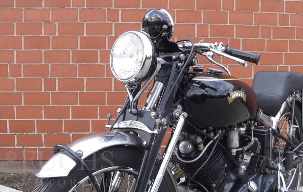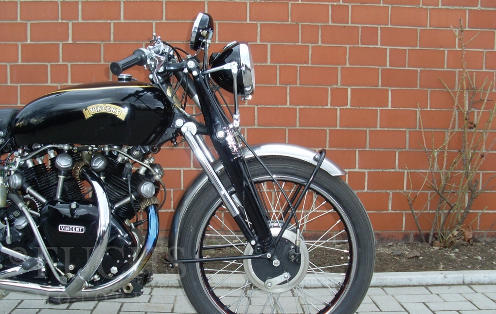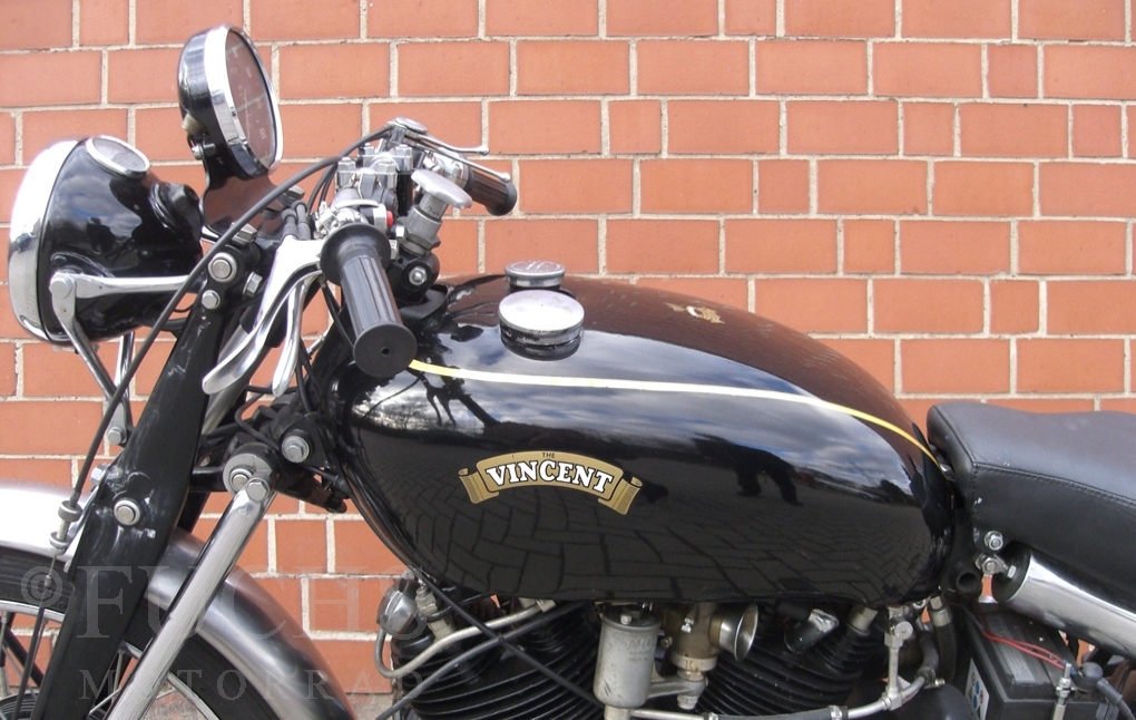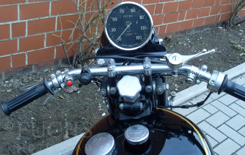 Unsere Vincent stammt aus einer Privatsammlung. Die Maschine ist bis auf wenige Details im Originalzustand.