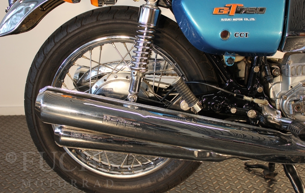 Die GT 750 wurde technisch und optisch überholt. Alles funktioniert. Lediglich an der Auspuffanlage gibt es kleine Schönheitsfehler.