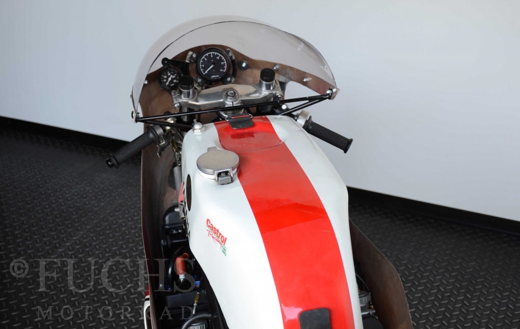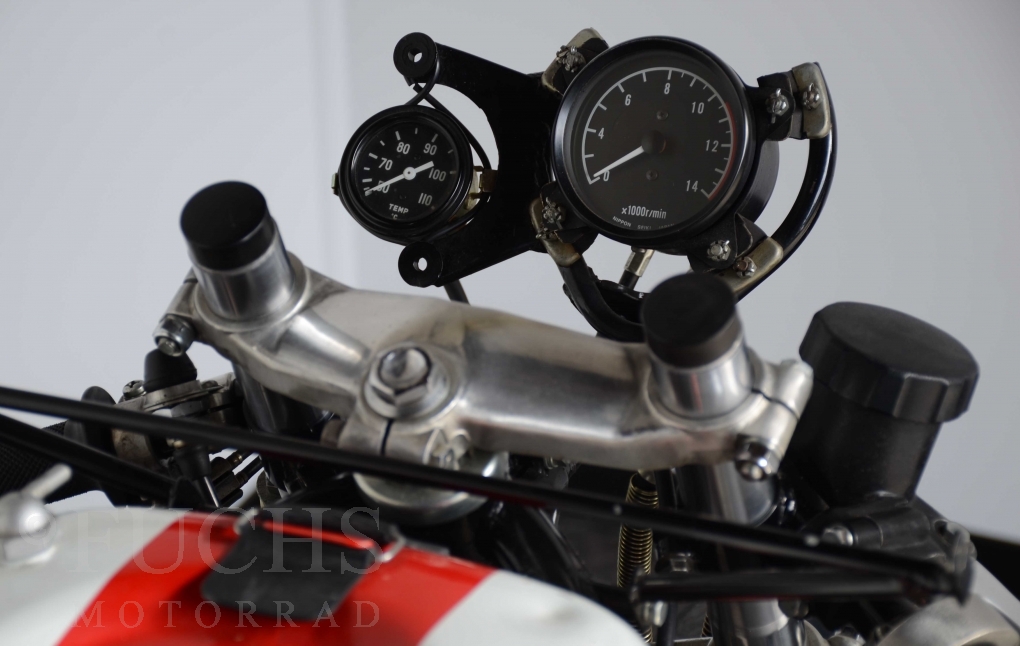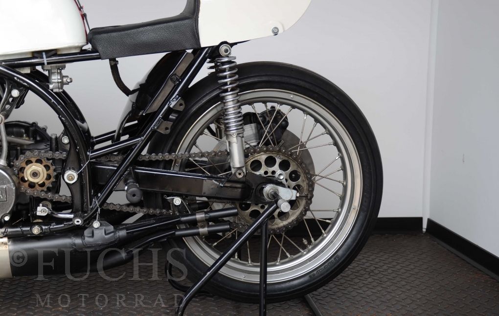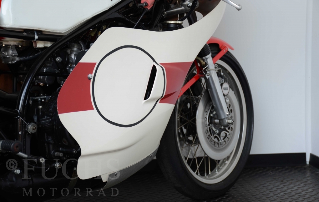 The TZ 700 was the predecessor model of the TZ 750. Because of the short construction time, these machines are very rarely and difficult to find. Our Yamaha TZ 700 is still in a very good and largely original condition. Also small details such as the chain tensioner are in our offer included. The exhaust system is unwelded and is in a very good condition.