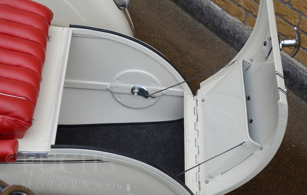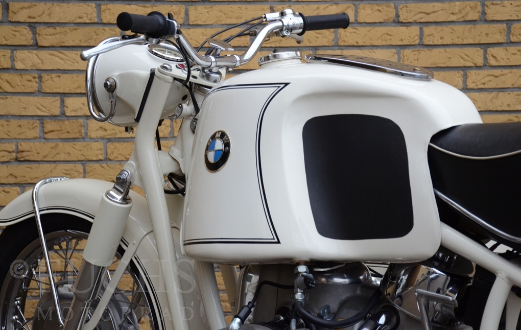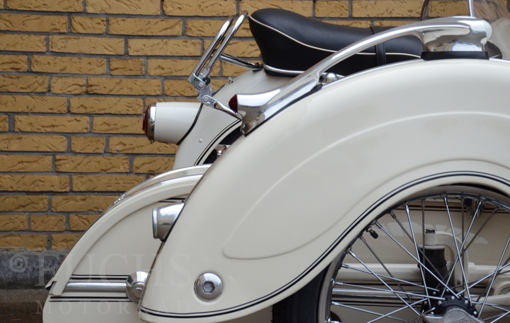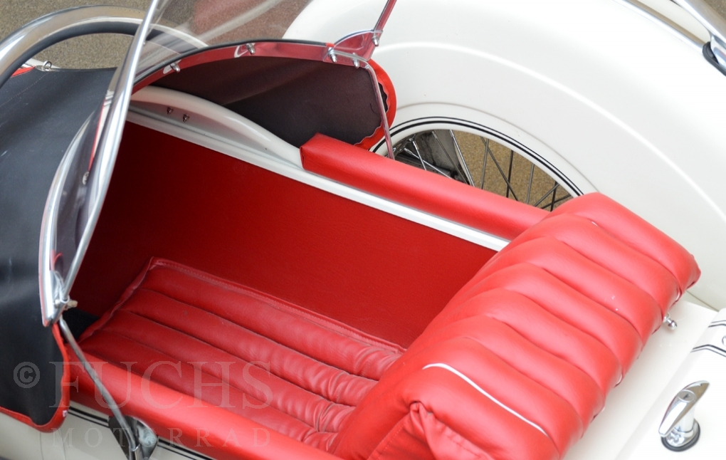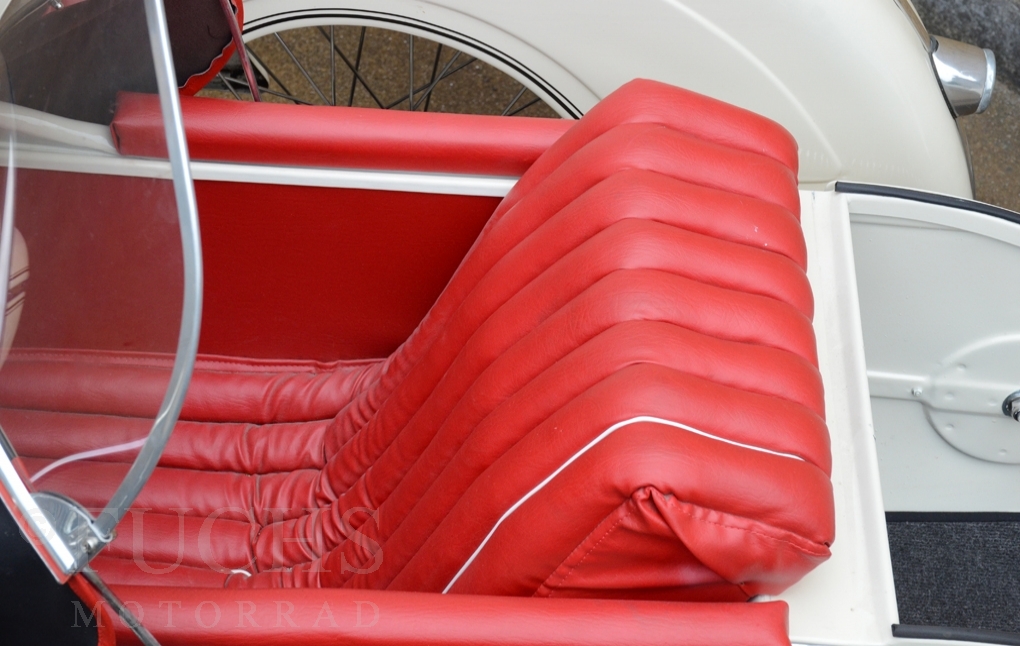 Our BMW sidecar with the white colour is one of the most beautiful BMW Sidecar we could offer in the past years. Together with the mighty Heinrich tank and the attractive sidecar, a special BMW Sidecar was built. After we were not happy about the technical performance at first, the construction has been modified, so that now not only the appearance is right, also to drive makes a lot of fun. But there is a downside to accept, BMW has no matching numbers.