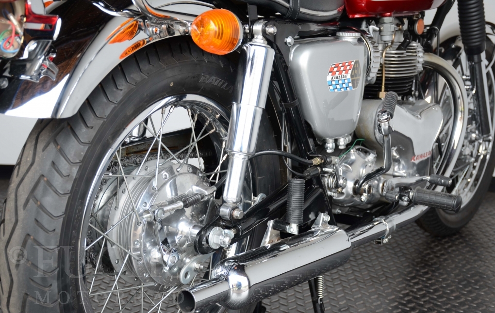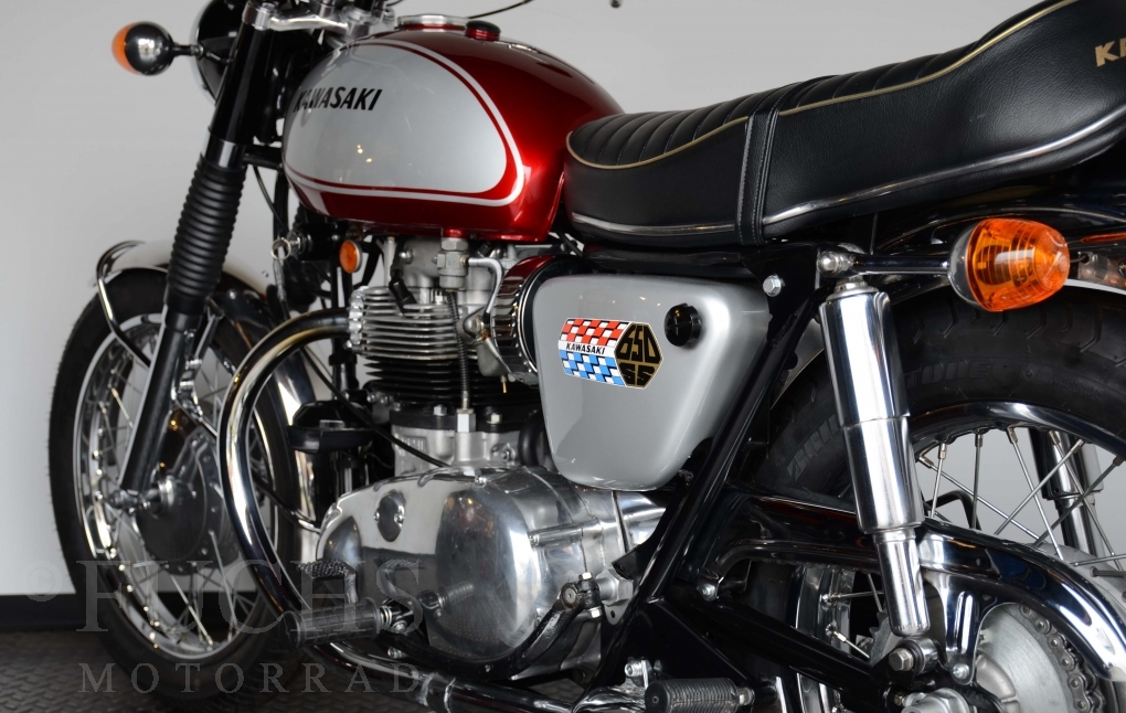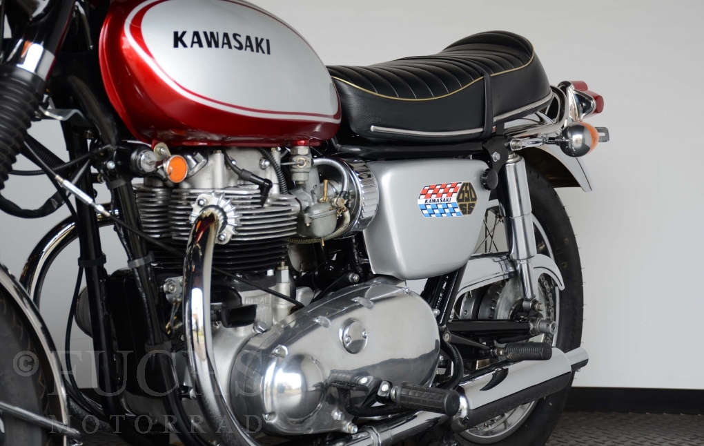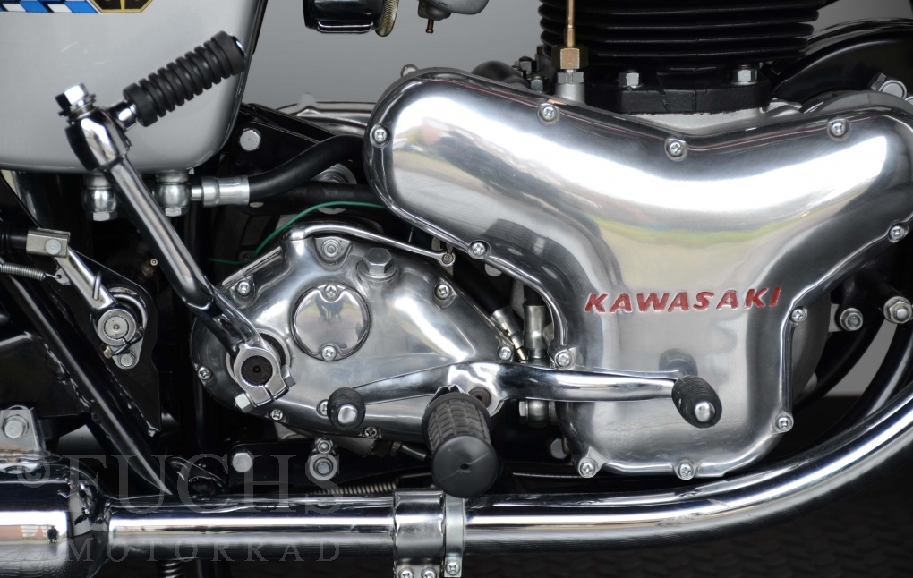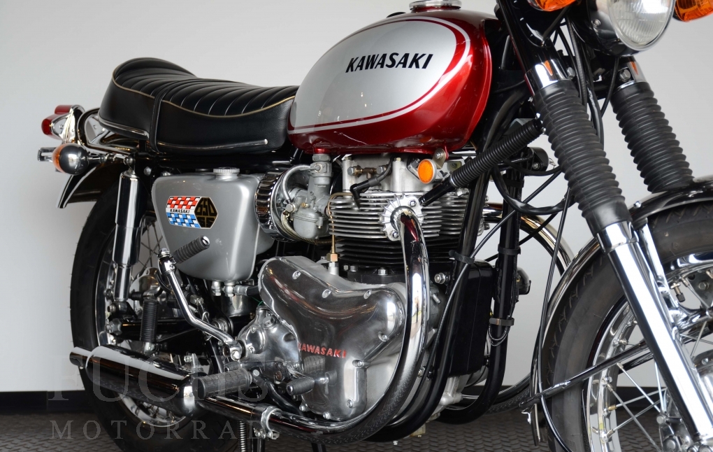 It is just fun to offer this Kawasaki. A beautiful and superbly restored motorcycle. I like to mention the name Ralf Gille, because I know what an effort is behind such a restoration. In 1968, this Kawasaki was one of the most powerful motorcycles from Japan. After all, our W2 SS reaches 180 km / h.