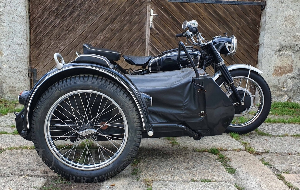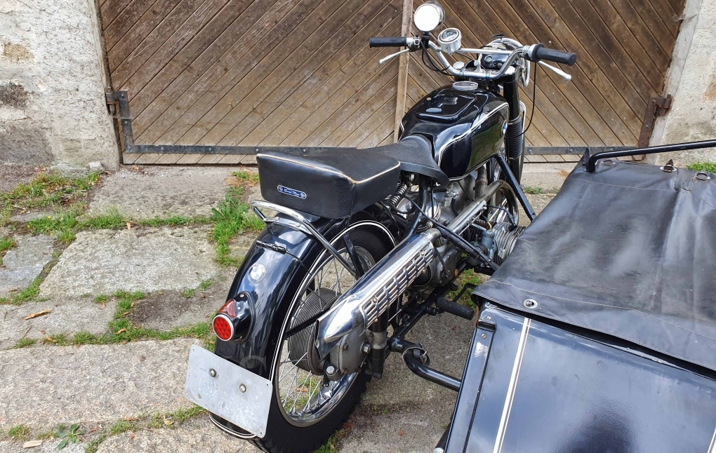 This BMW Motocross sidecar is a special rarity because it has not been restored and is still in a very nice ready to drive condition. We like it because the combination of all-terrain sidecar and motorcycle is very rare. Brake system, Köhler clock and searchlight with mirror are particularly rare details. The engine has 600 cc and is slightly more powerful than the production engine.