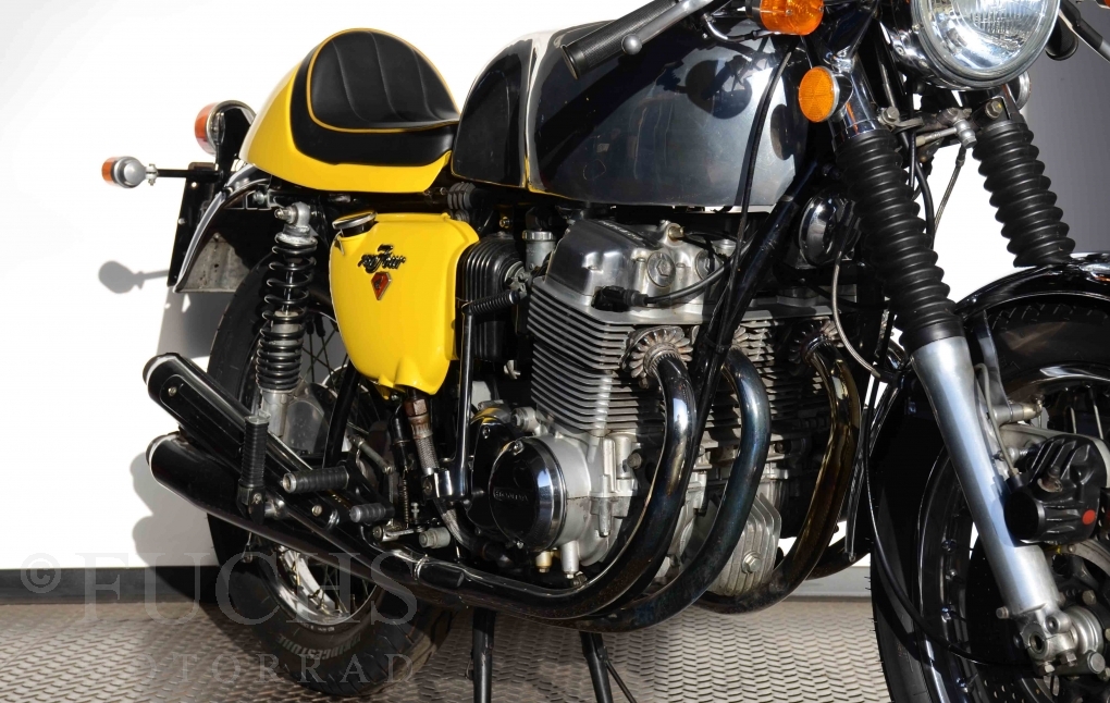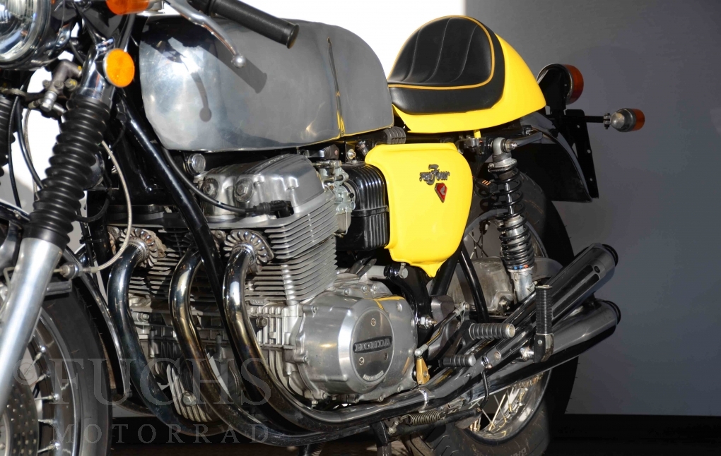 The CB 750 Four has been modified so we can offer an attractively priced cafe racer. The engine runs like a new one.