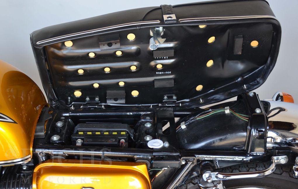 The CB 750 Four has been partially restored. Since then the machine has run 80 km. A beautiful CB 750 Four, in which the focus for the restorer was that the machine should be driven, so that deviations from the originality were accepted. The engine was overhauled.
