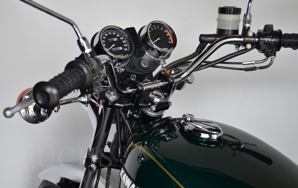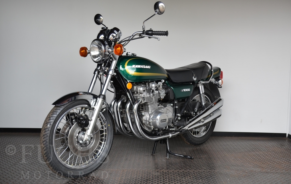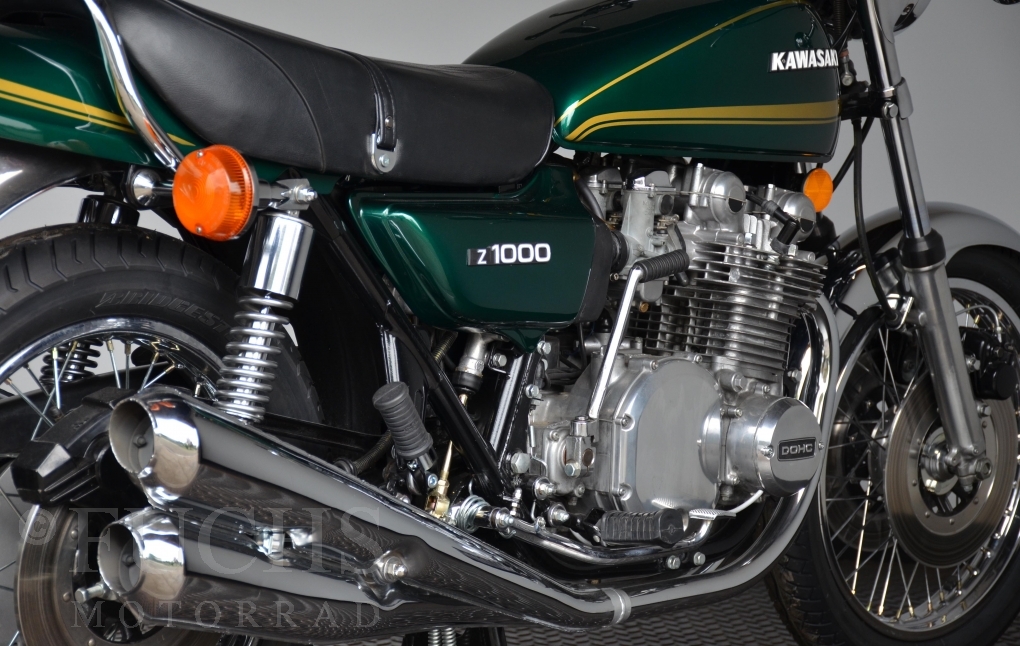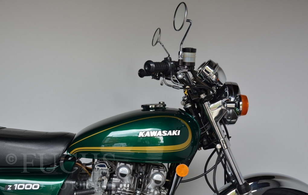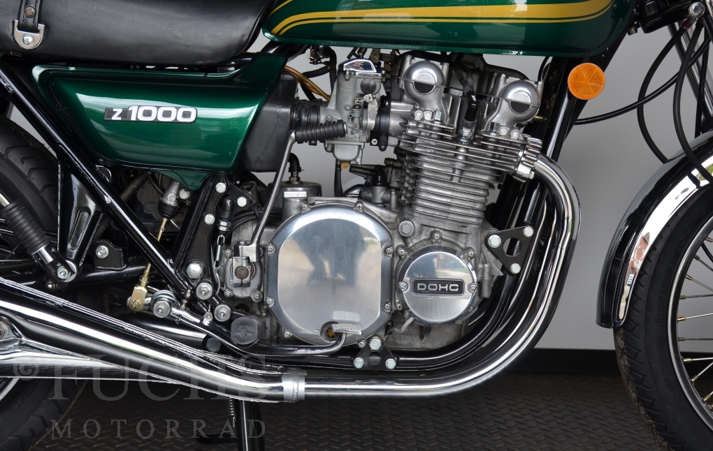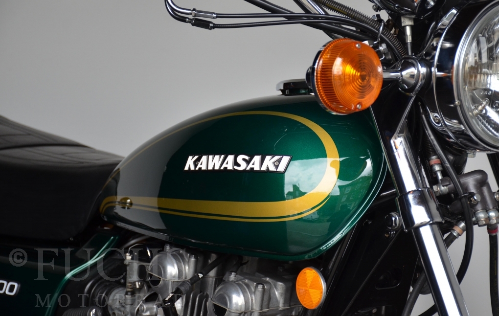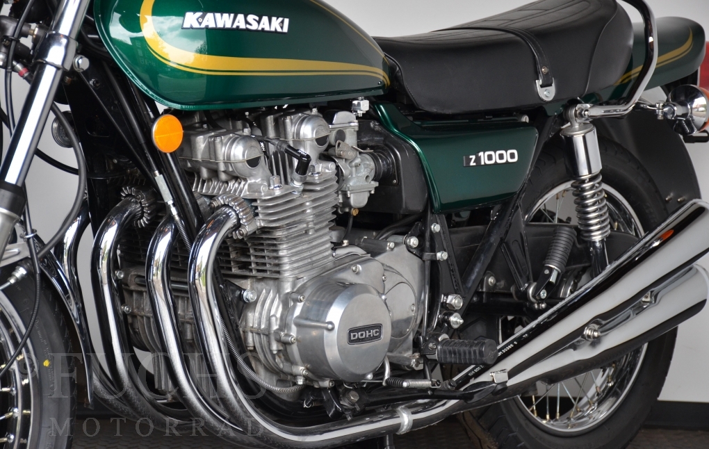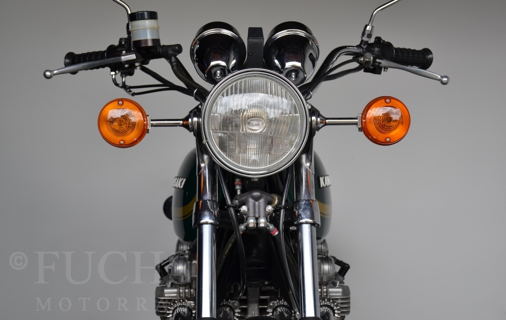 In the mid-1970s, the Kawasaki also and offered a 1000ccm motorcycle. The brake system was supplemented with a rear disc brake. The engine running became a bit more sophisticated and engine power rose to 63 KW. Our offered machine is a beautiful Z1000 in a restored, first-class condition.