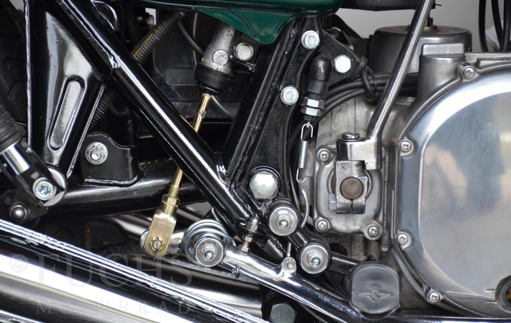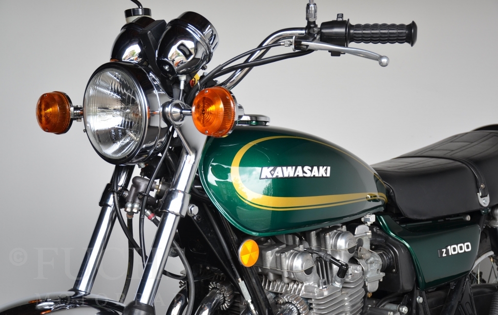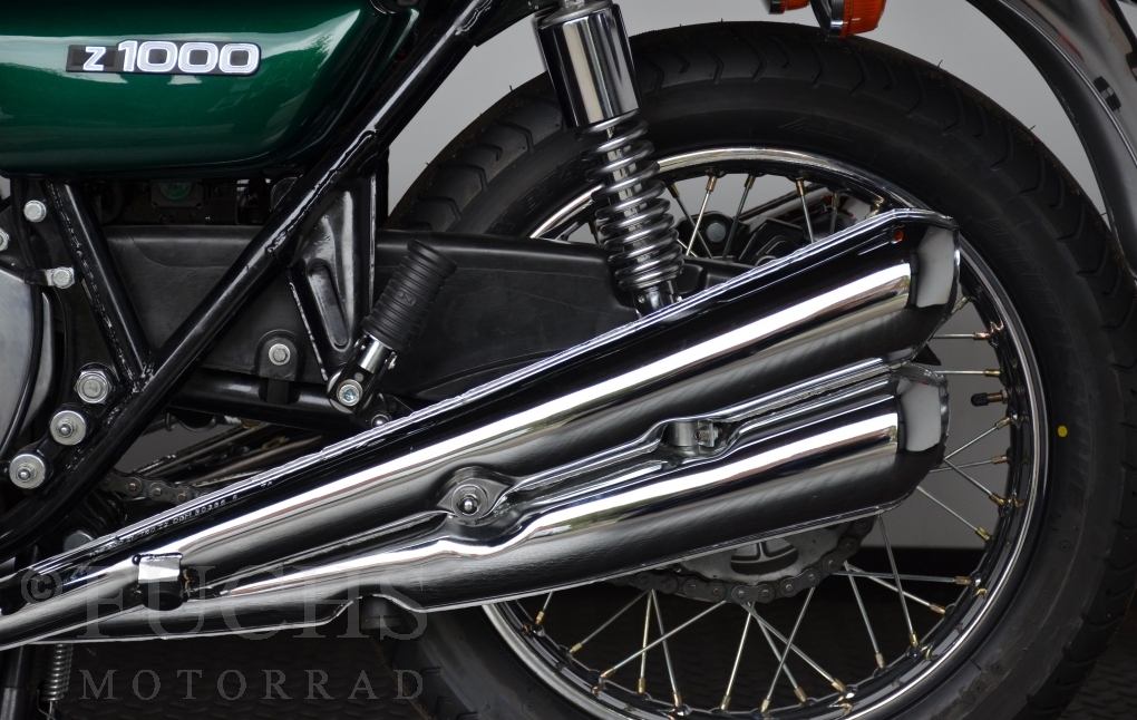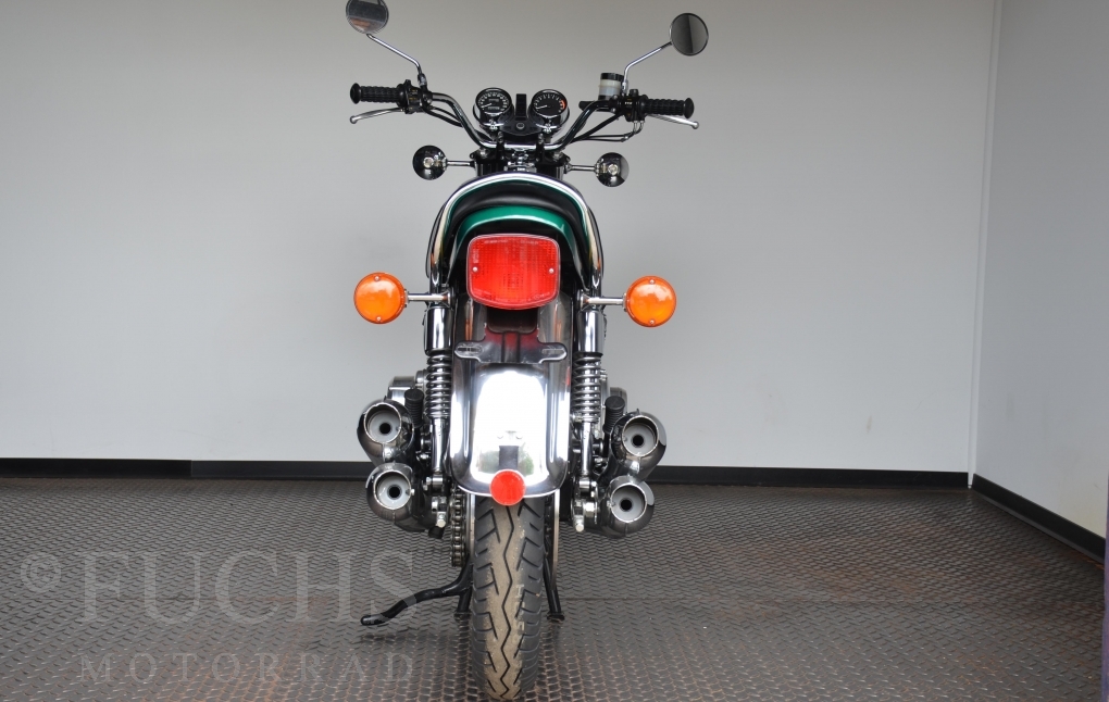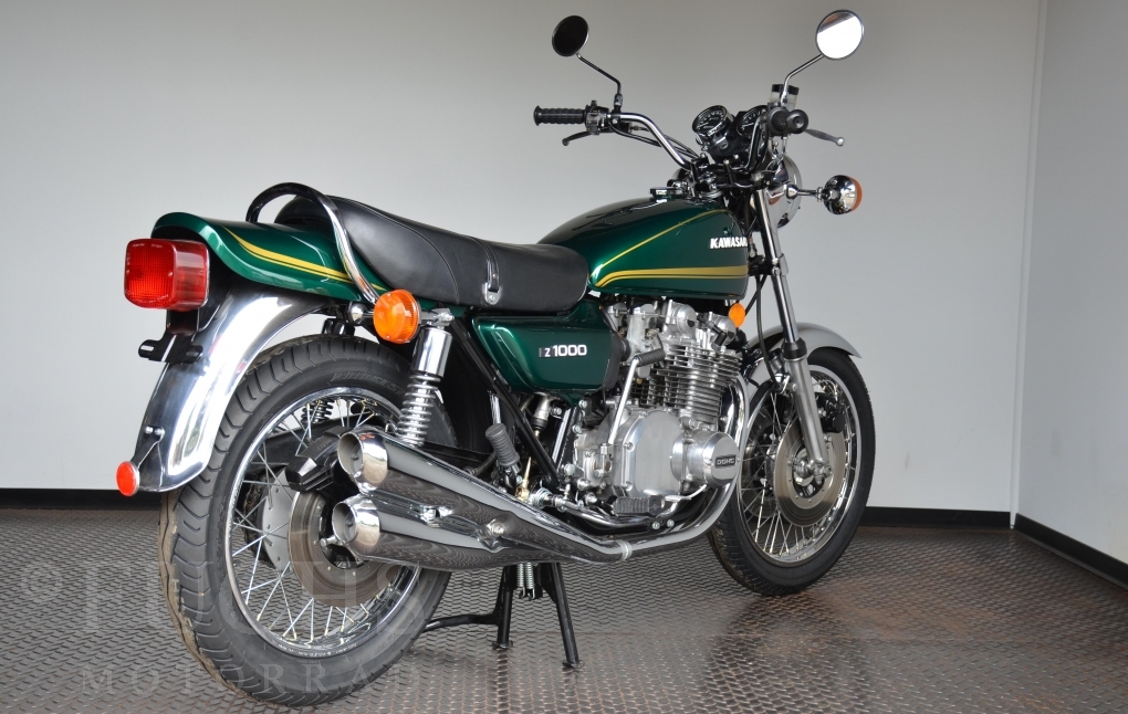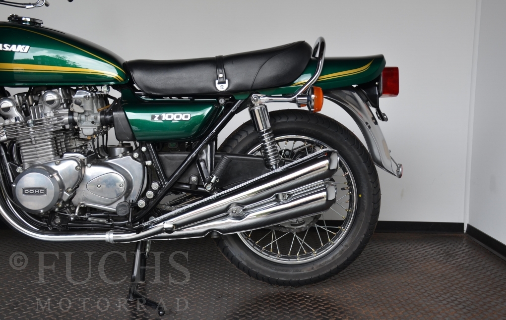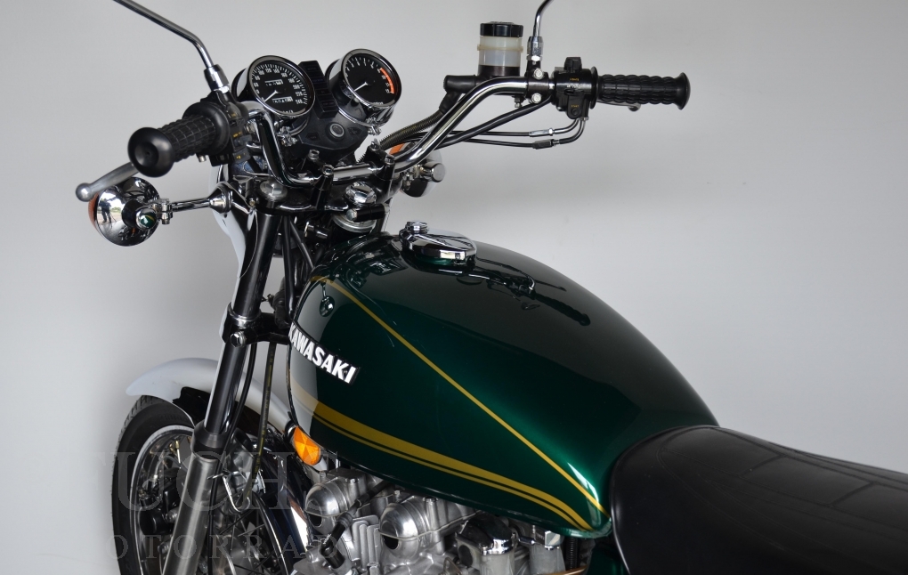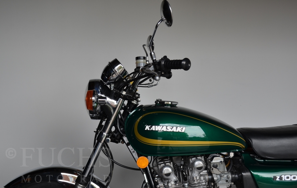 In the mid-1970s, the Kawasaki also and offered a 1000ccm motorcycle. The brake system was supplemented with a rear disc brake. The engine running became a bit more sophisticated and engine power rose to 63 KW. Our offered machine is a beautiful Z1000 in a restored, first-class condition.