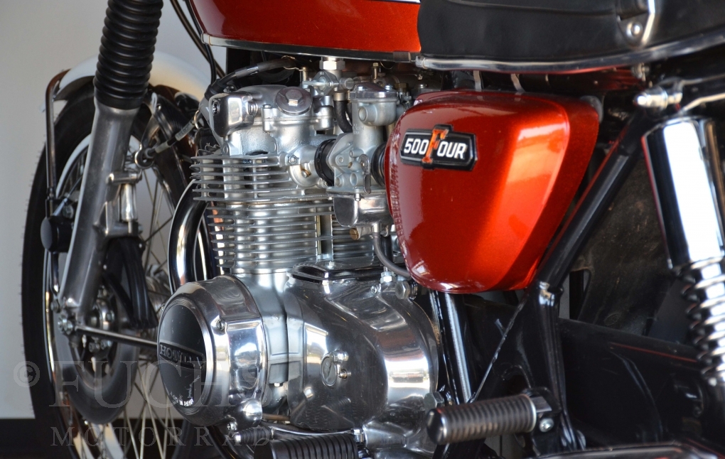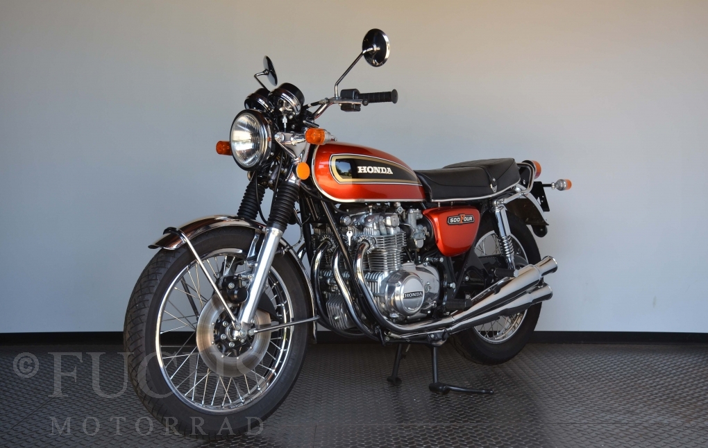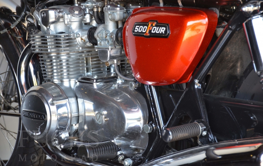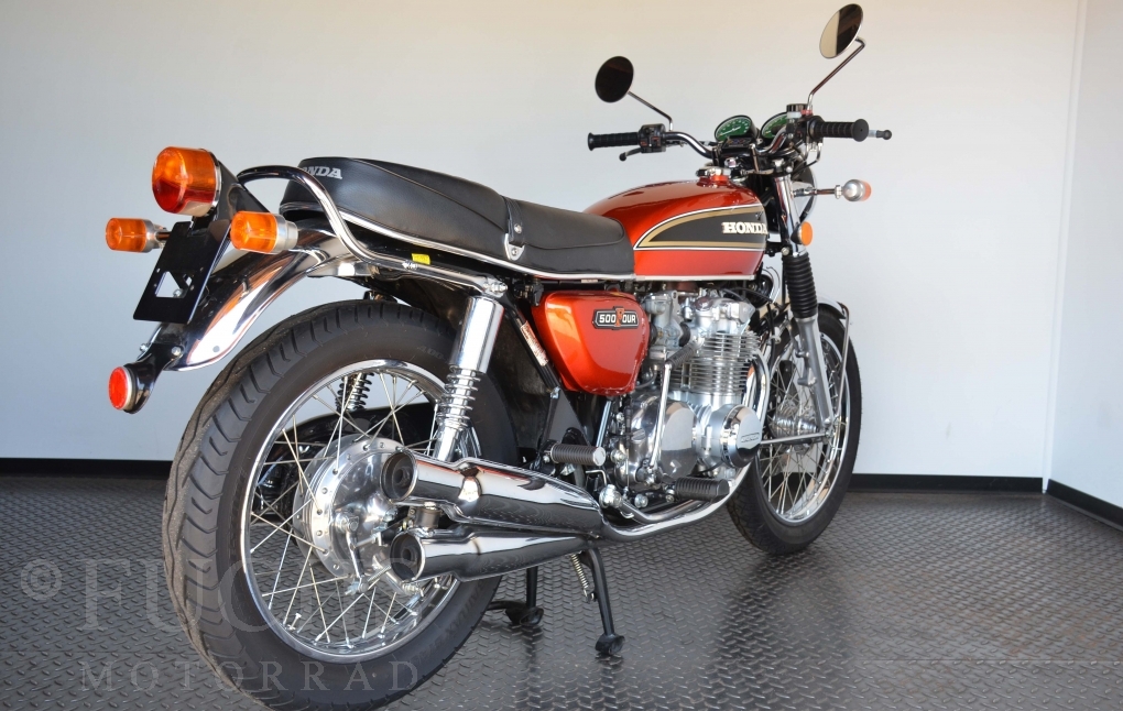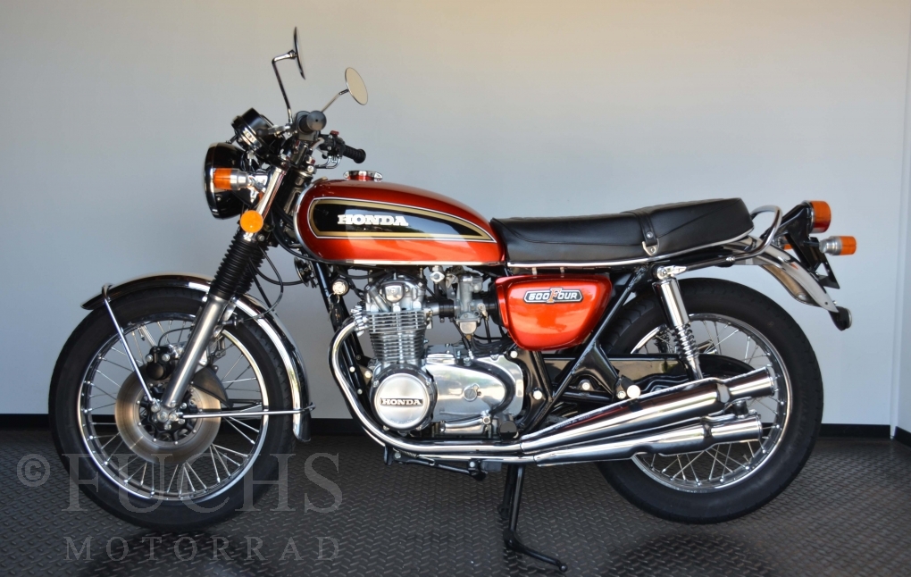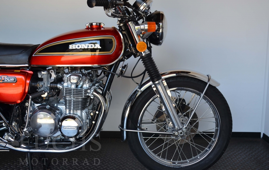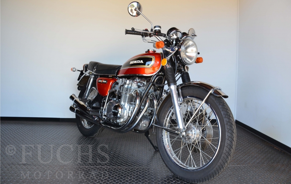 Although the machine visually corresponds to its bigger sister, the engine is a new construction. This beautiful classic motorcycle from Honda is also 30 kg lighter than the 750 Four. We can offer a fully restored CB 500 Four. German vehicle documents are available.