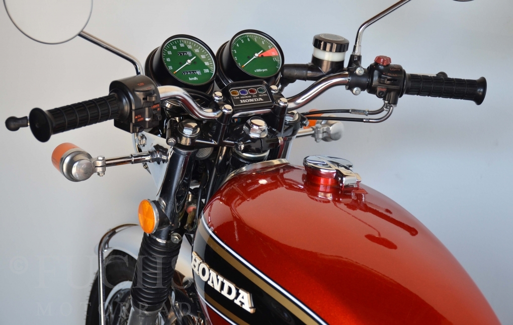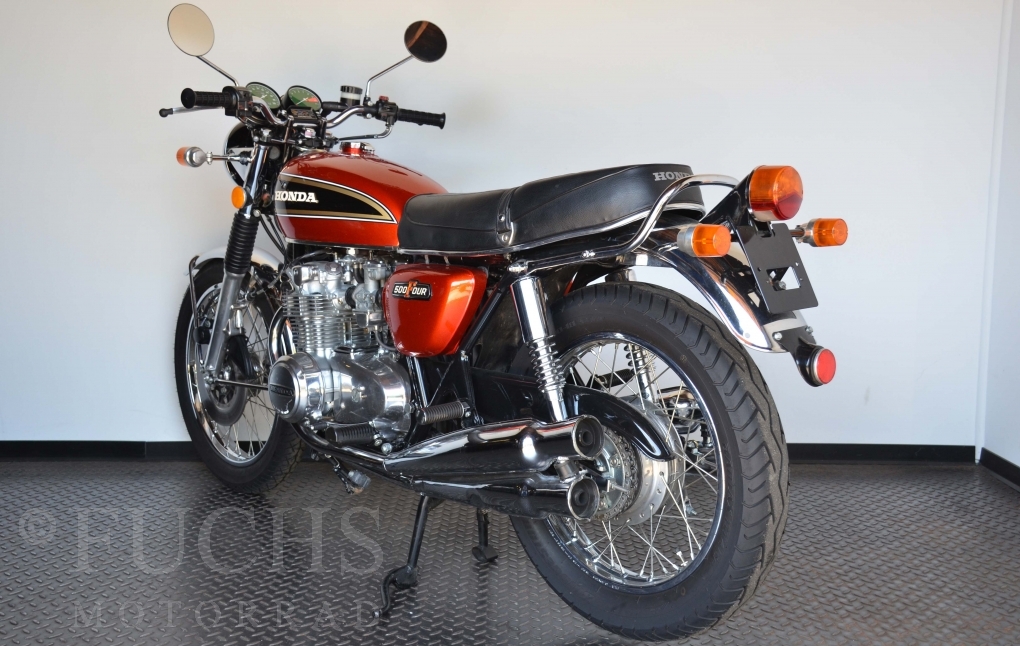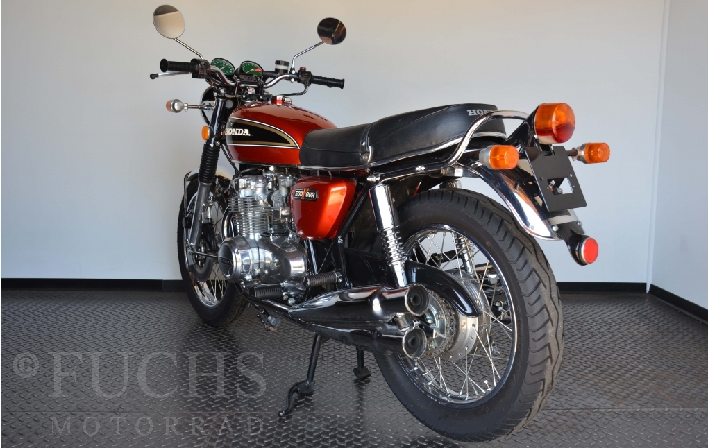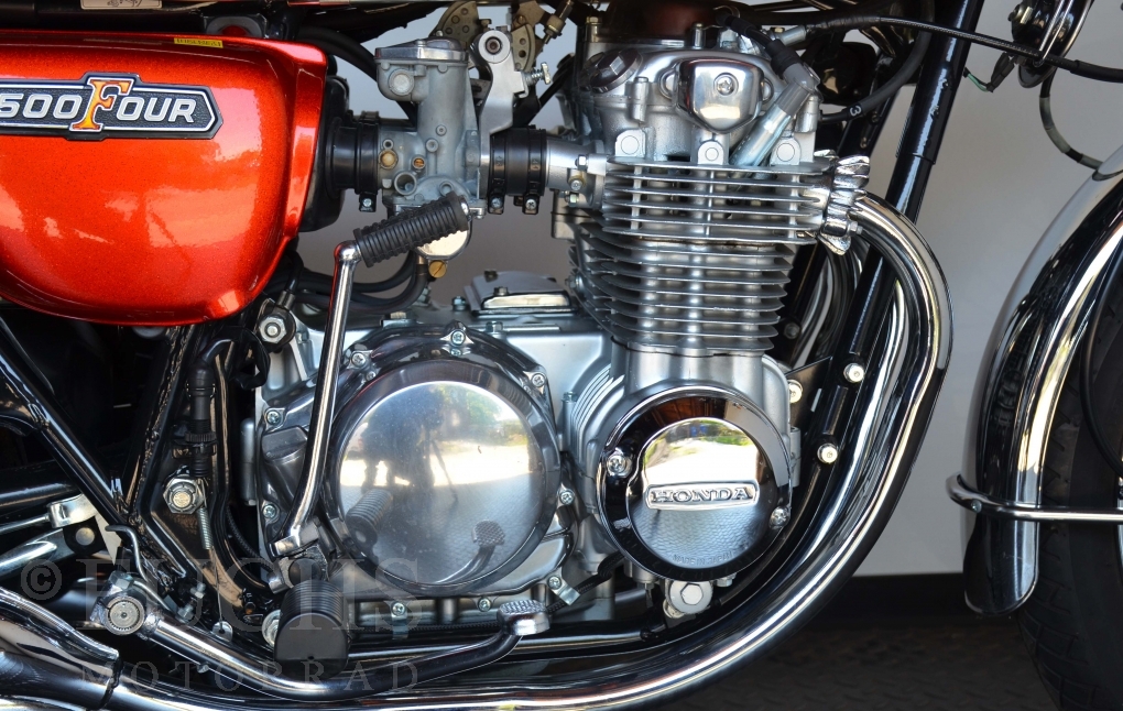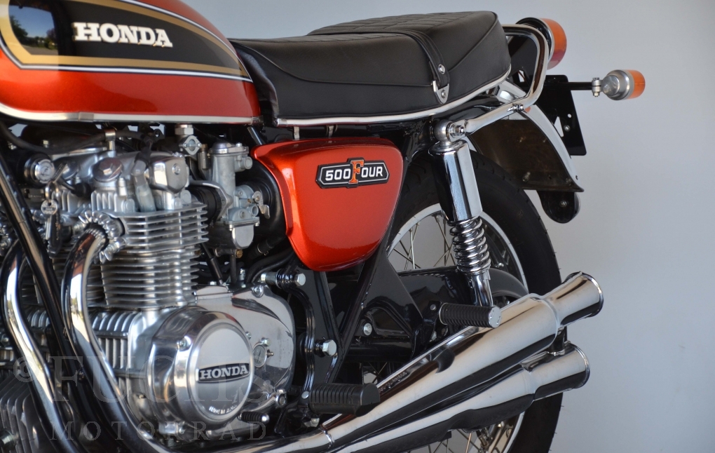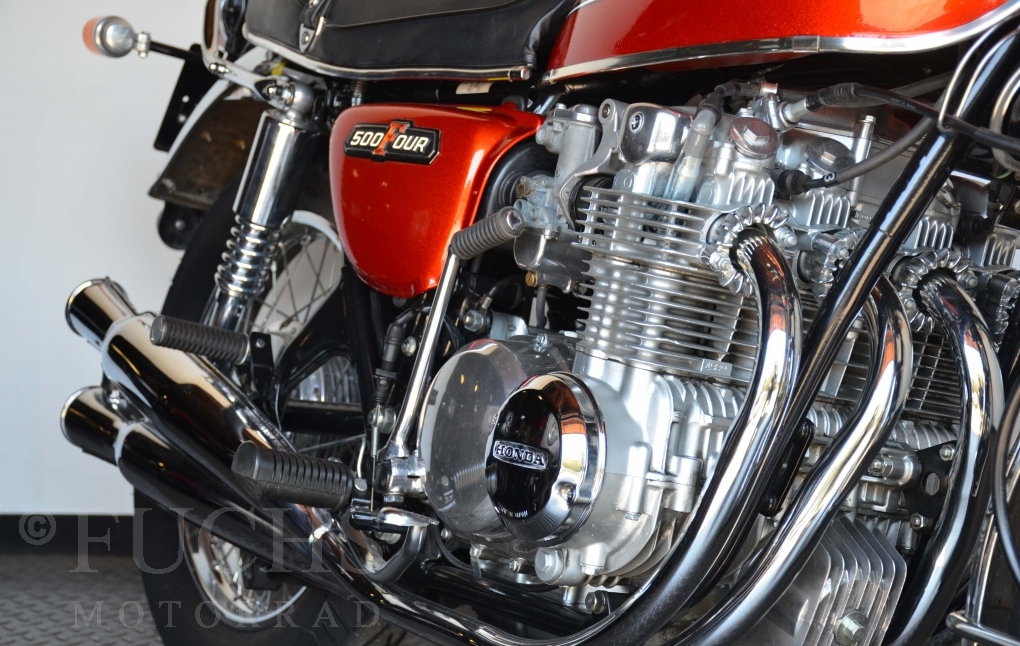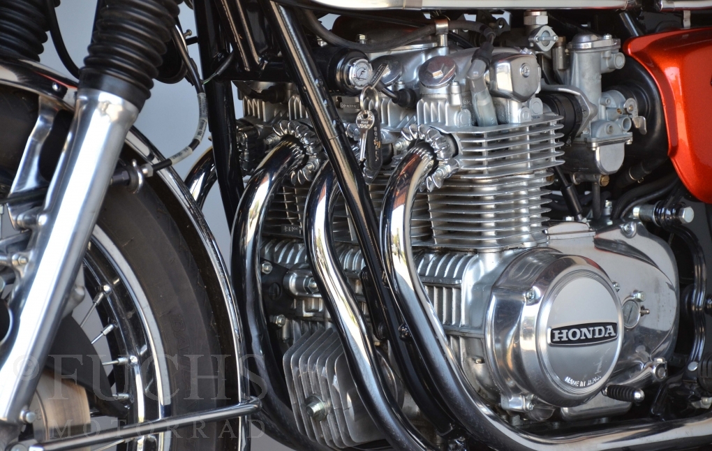 Although the machine visually corresponds to its bigger sister, the engine is a new construction. This beautiful classic motorcycle from Honda is also 30 kg lighter than the 750 Four. We can offer a fully restored CB 500 Four. German vehicle documents are available.