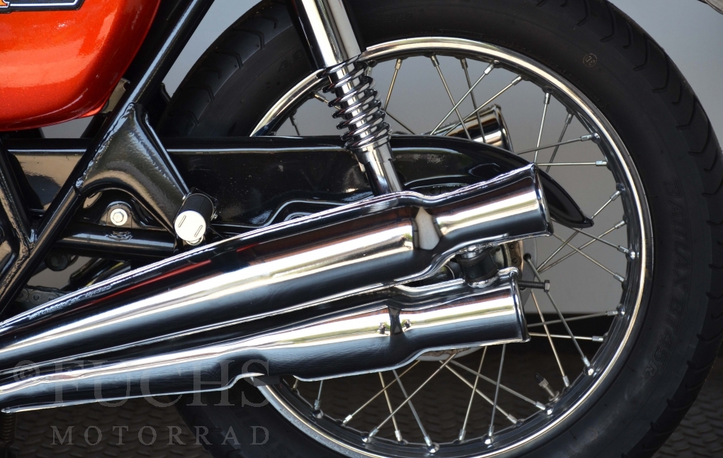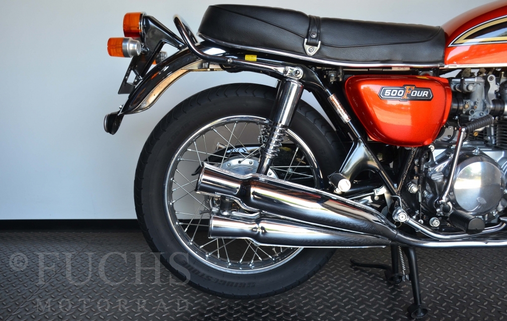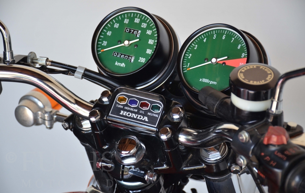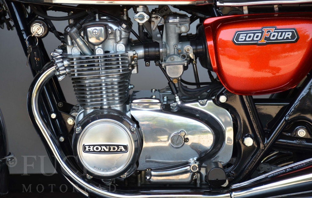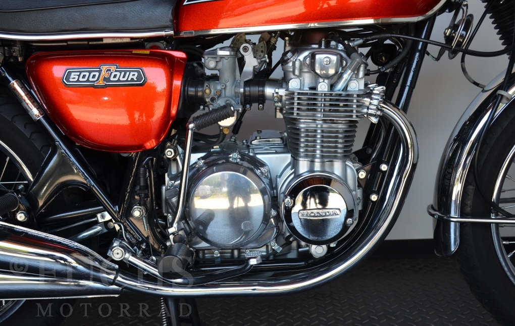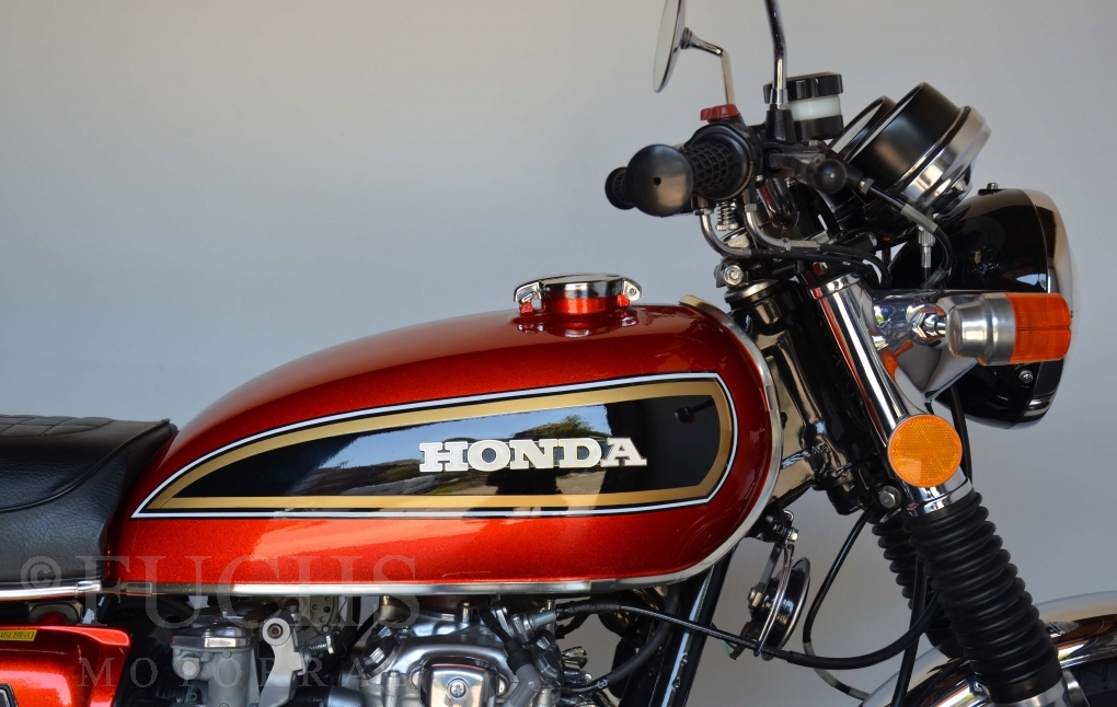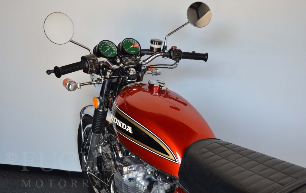 Although the machine visually corresponds to its bigger sister, the engine is a new construction. This beautiful classic motorcycle from Honda is also 30 kg lighter than the 750 Four. We can offer a fully restored CB 500 Four. German vehicle documents are available.