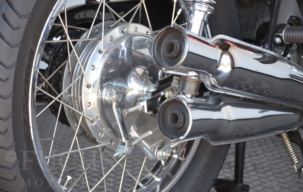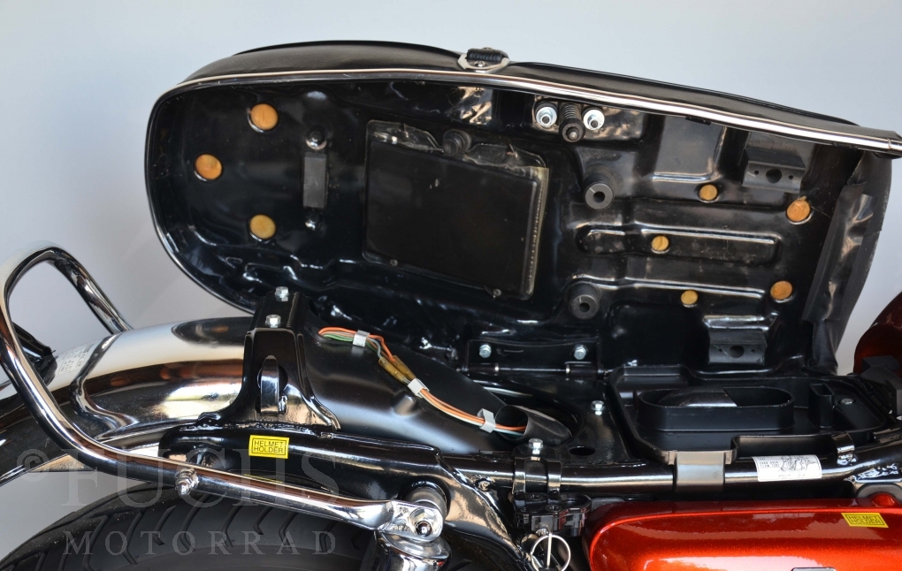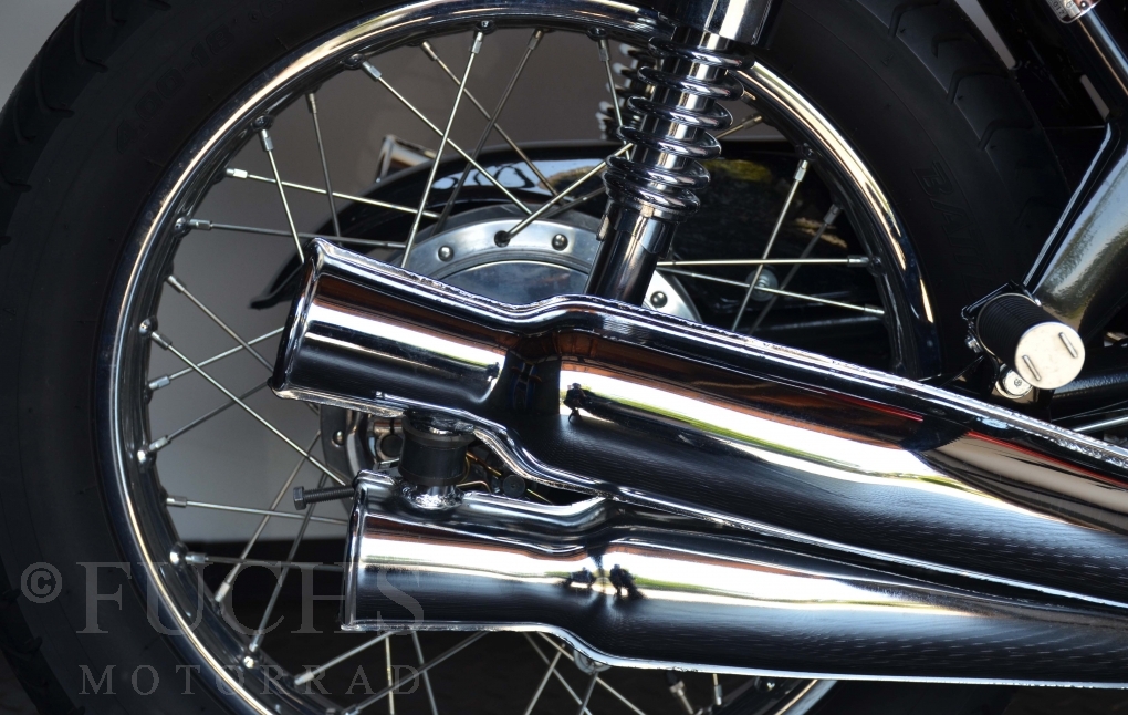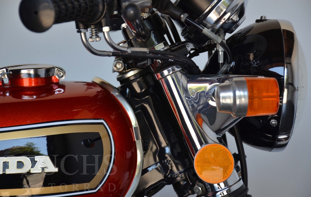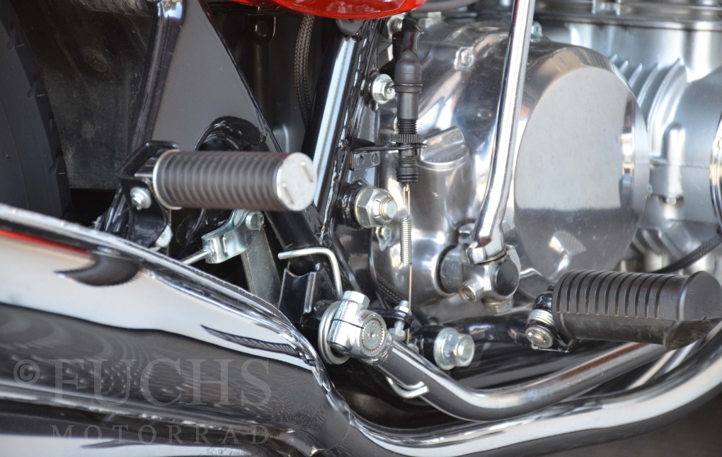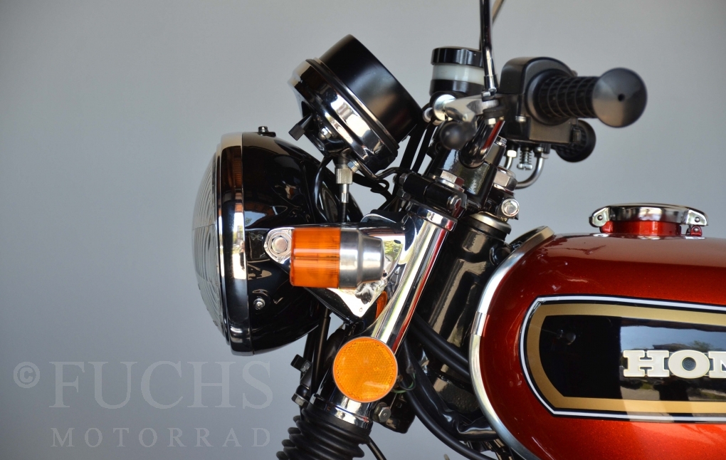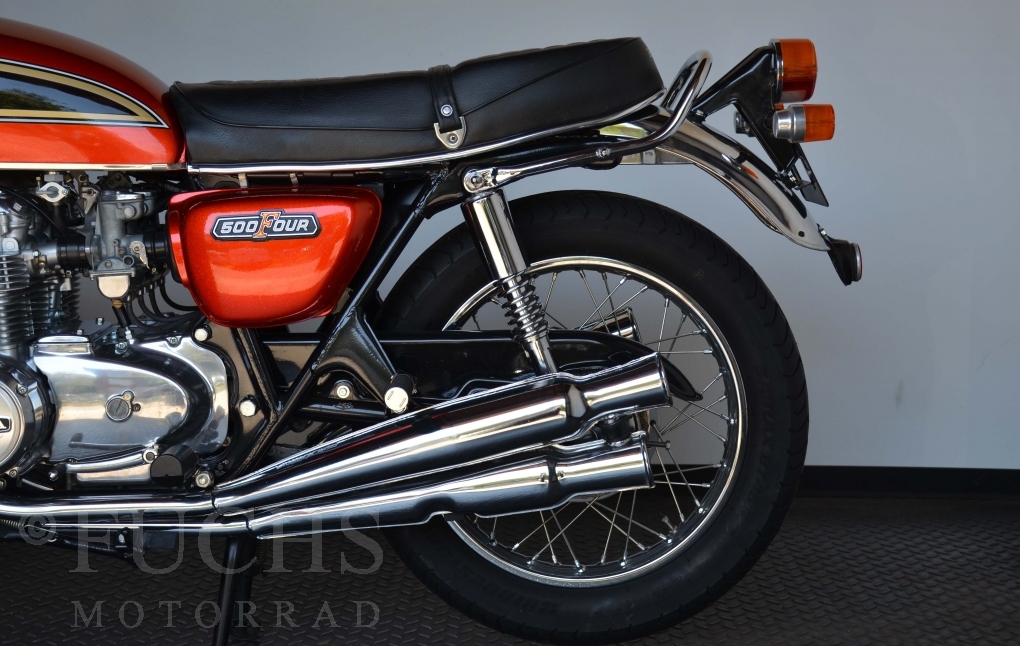 Although the machine visually corresponds to its bigger sister, the engine is a new construction. This beautiful classic motorcycle from Honda is also 30 kg lighter than the 750 Four. We can offer a fully restored CB 500 Four. German vehicle documents are available.