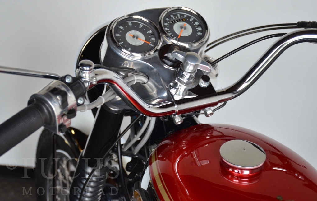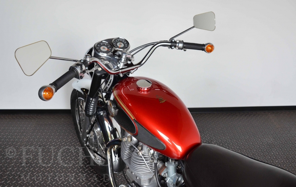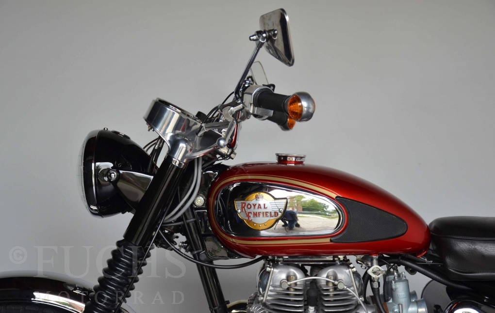 In 2011 the previous owner bought the Interceptor. In the following years he has restored the beautiful machine extensively. There is extensive documentation on the restoration. For a new project he has given the Royal Enfield to us. With German vehicle papers, we are therefore able to offer the Interceptor 750, which is first class both technically and visually.
