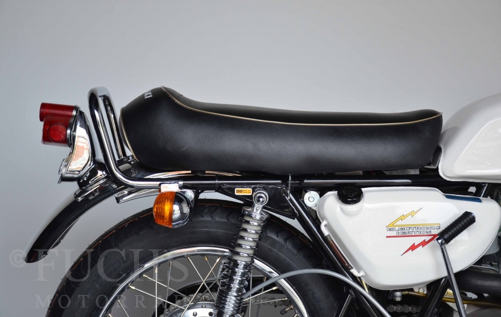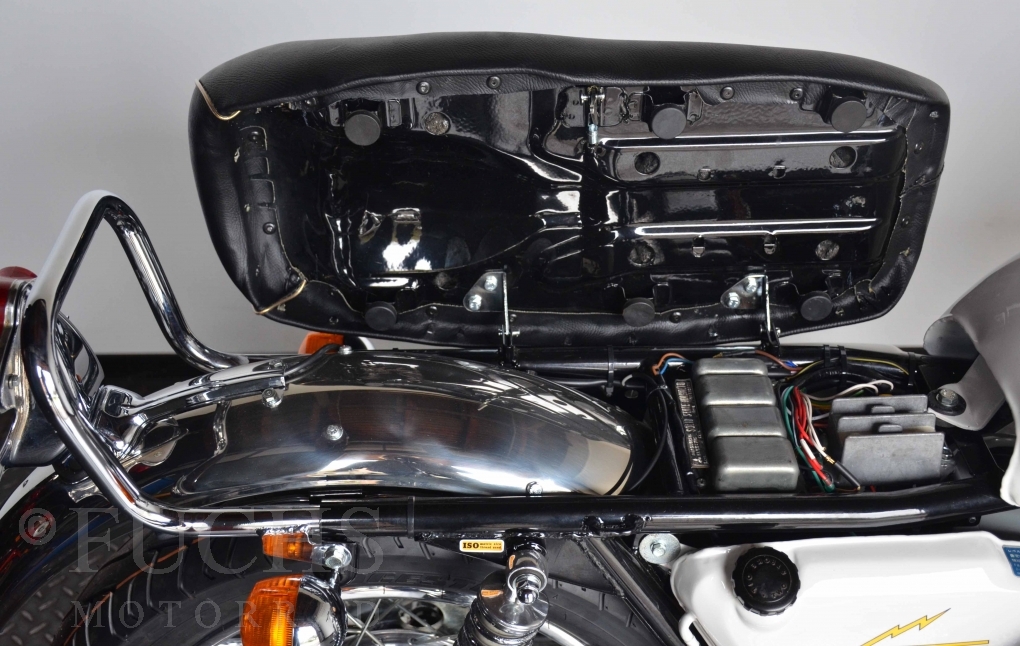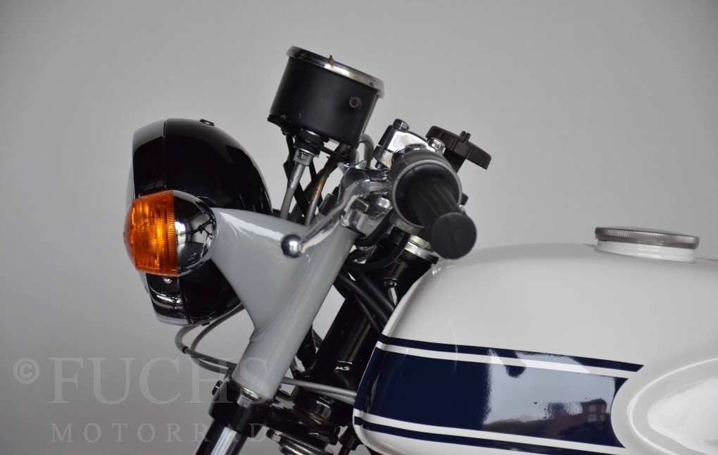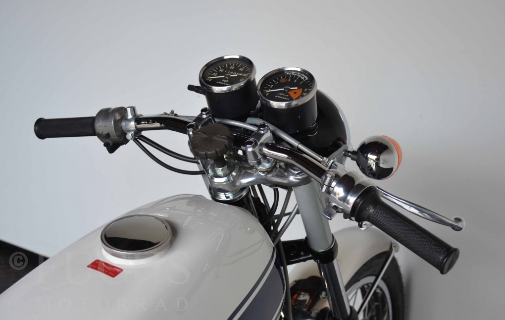 Especially in midnight white the H1 is definitely a highlight. The class victory in 2019 at the Concorso di Eleganza, Villa d este in Como is based on the first-class restored condition and of course also on the fact that our H1 500 with this paint, the drum brakes, has had and will have a special position among the classics of the 70s worldwide now and in the future. The main thing for us with this H1 was to overhaul the engine. Starting with the crankshaft, cylinders, pistons, ignition system (Lakeland), we now have a very good engine whose overhaul was completed in 2022. Now the engine needs to be run in because everything is as good as new.