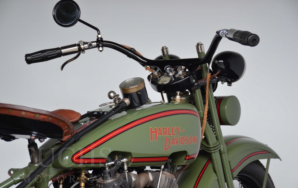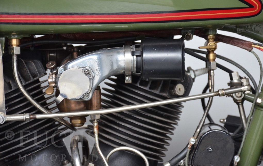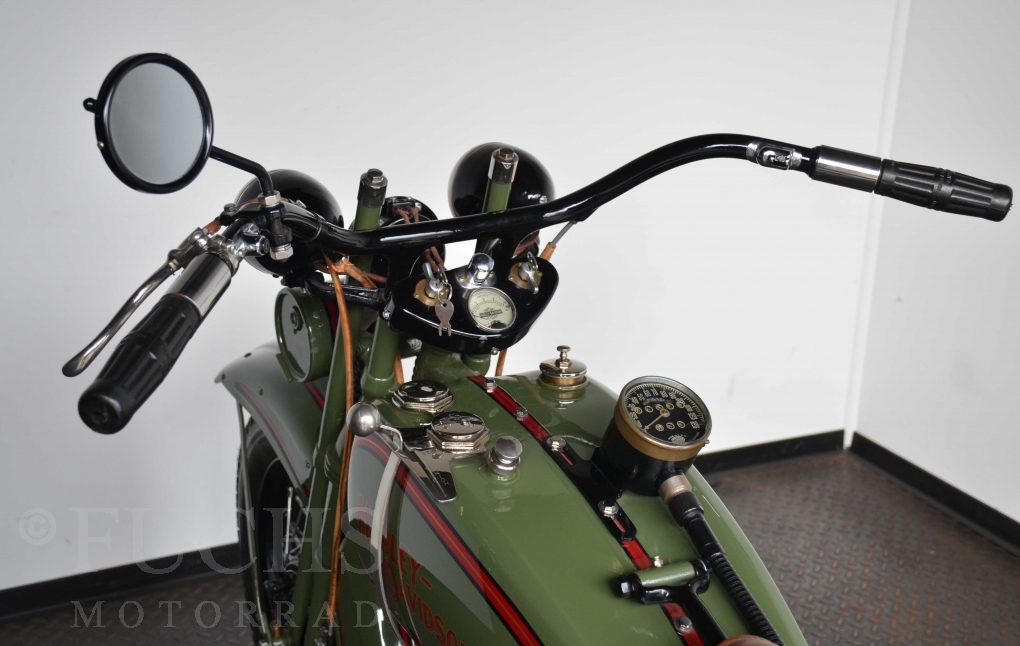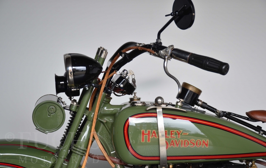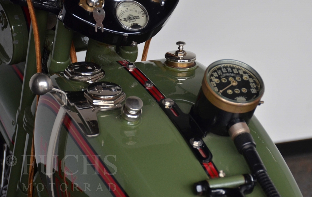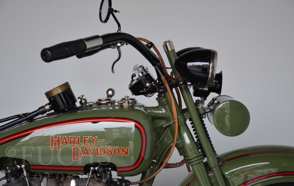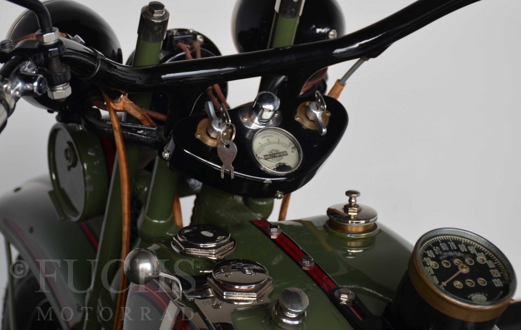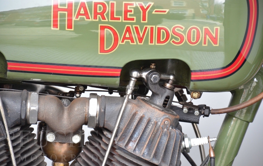 The JD is from the last production year and has the distinctive valve control. A few years ago the Harley was extensively restored and has since been part of a small and sophisticated motorbike collection. The JD convinces with a high degree of detailed originality.