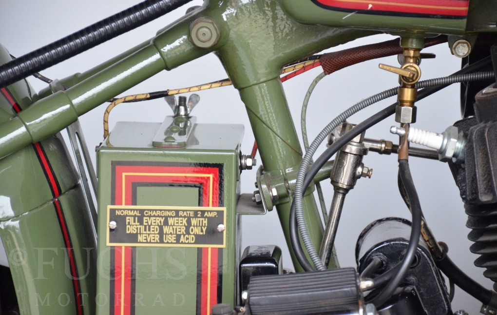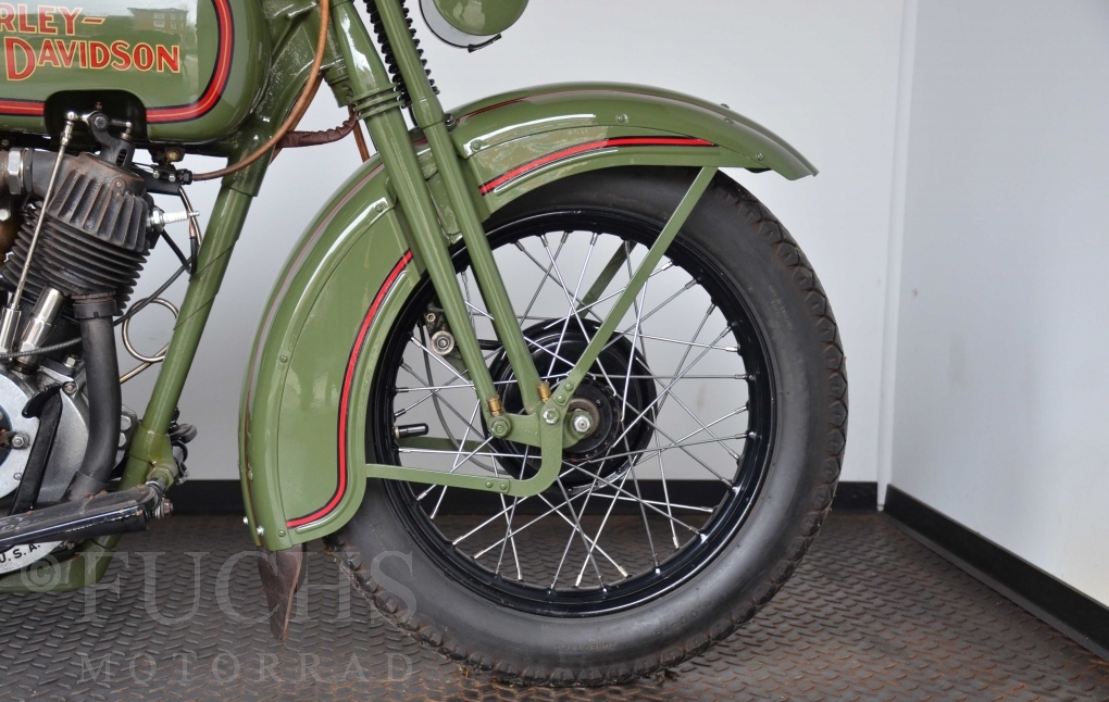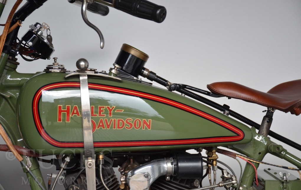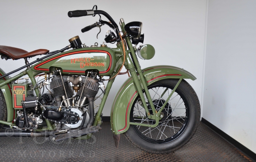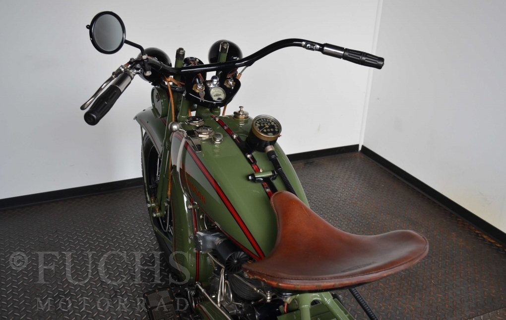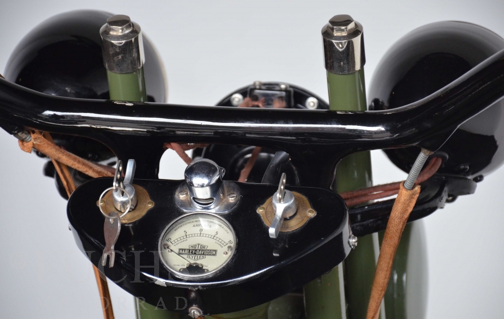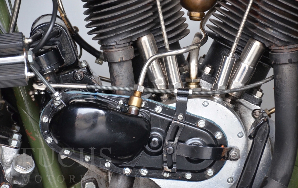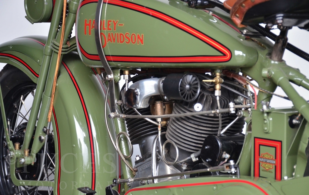 The JD is from the last production year and has the distinctive valve control. A few years ago the Harley was extensively restored and has since been part of a small and sophisticated motorbike collection. The JD convinces with a high degree of detailed originality.