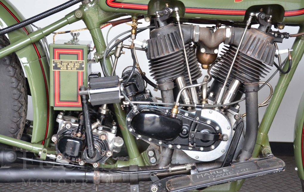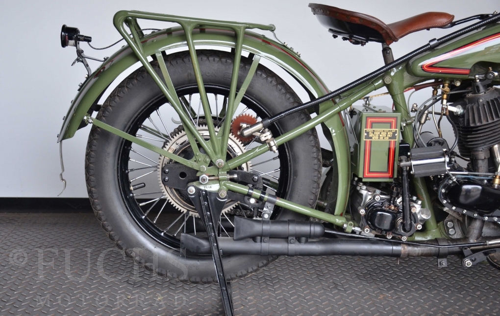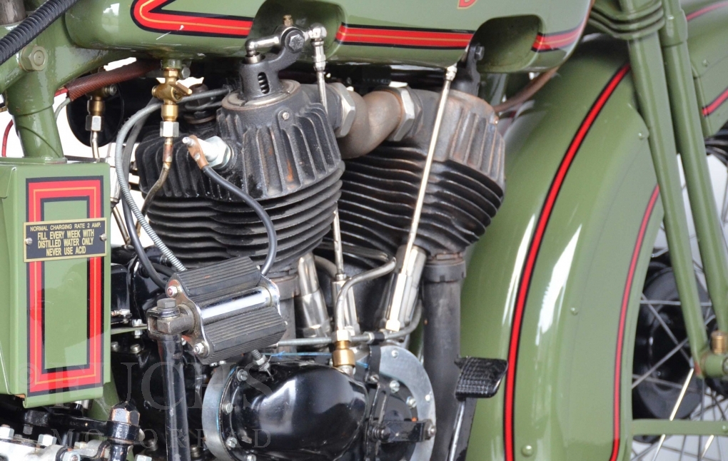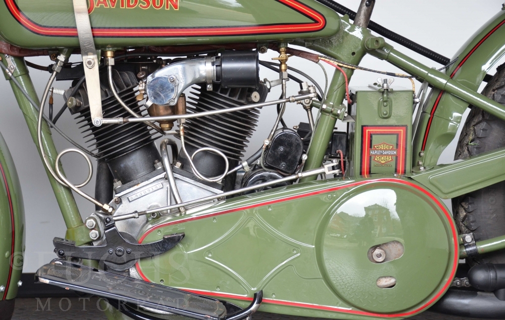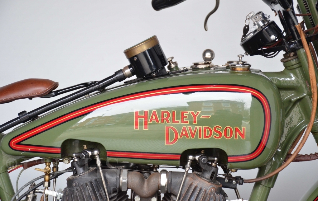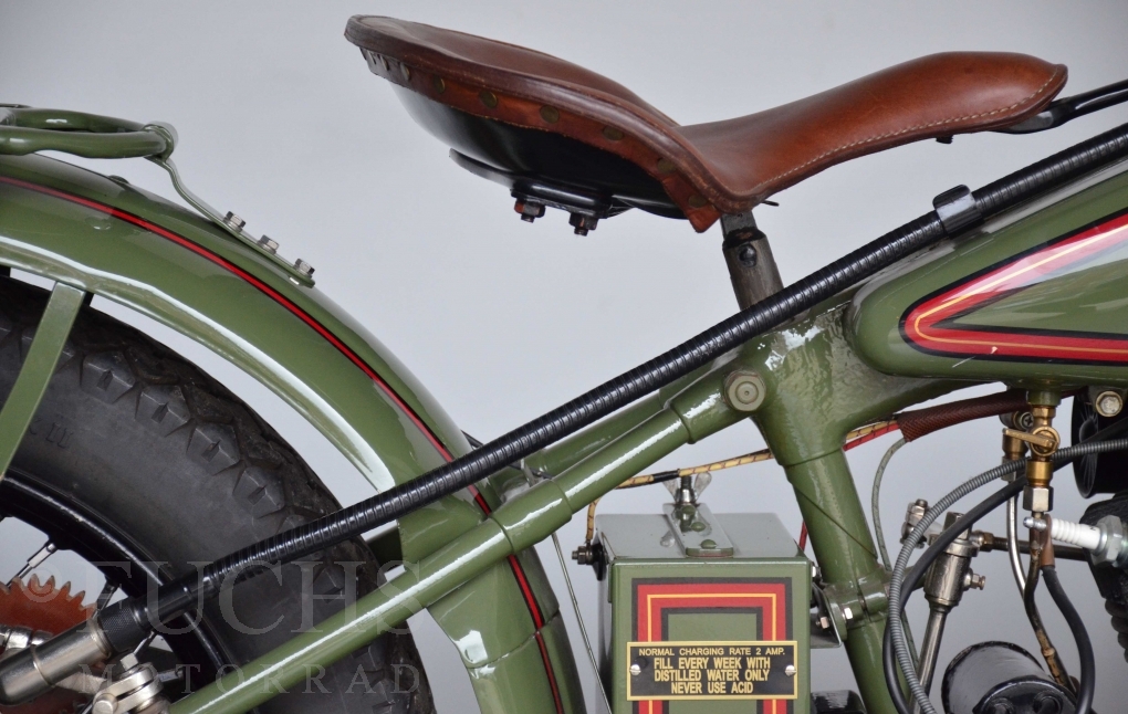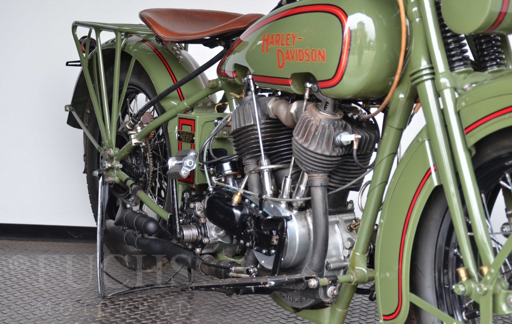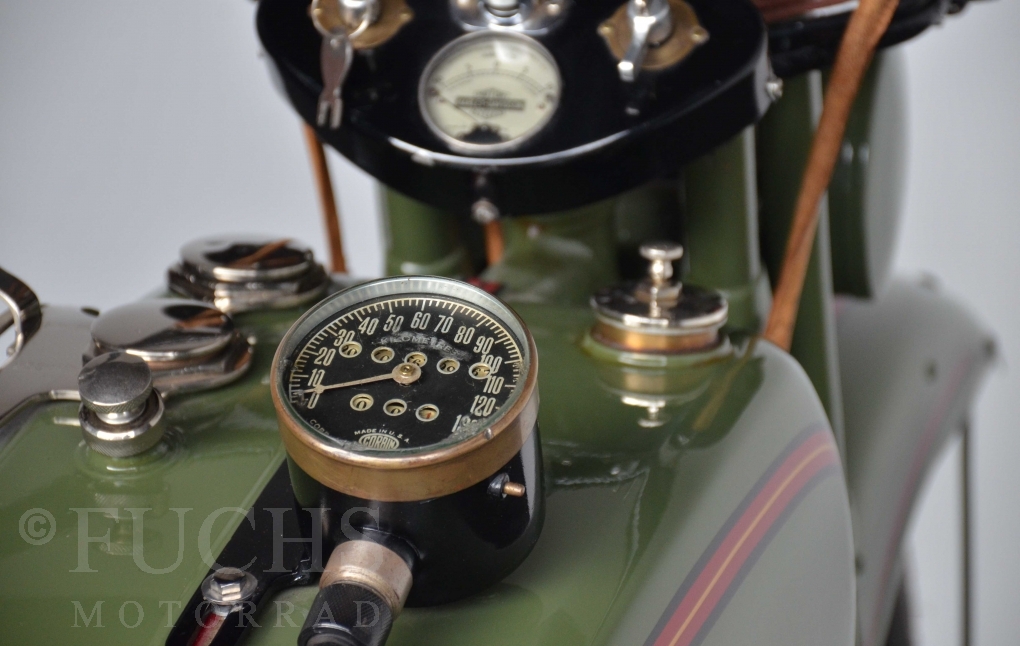 The JD is from the last production year and has the distinctive valve control. A few years ago the Harley was extensively restored and has since been part of a small and sophisticated motorbike collection. The JD convinces with a high degree of detailed originality.