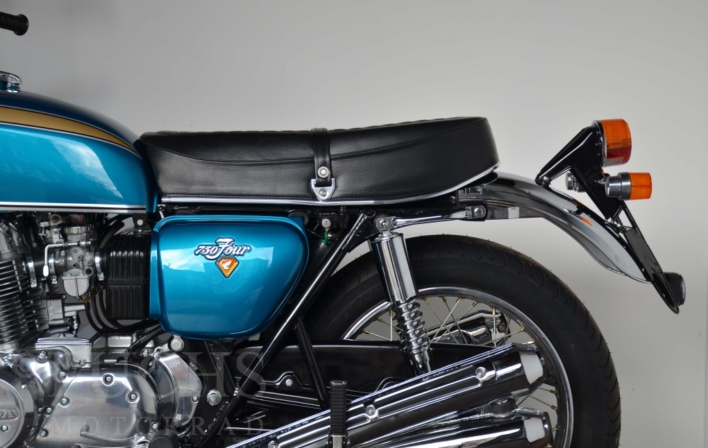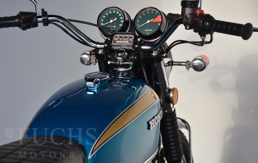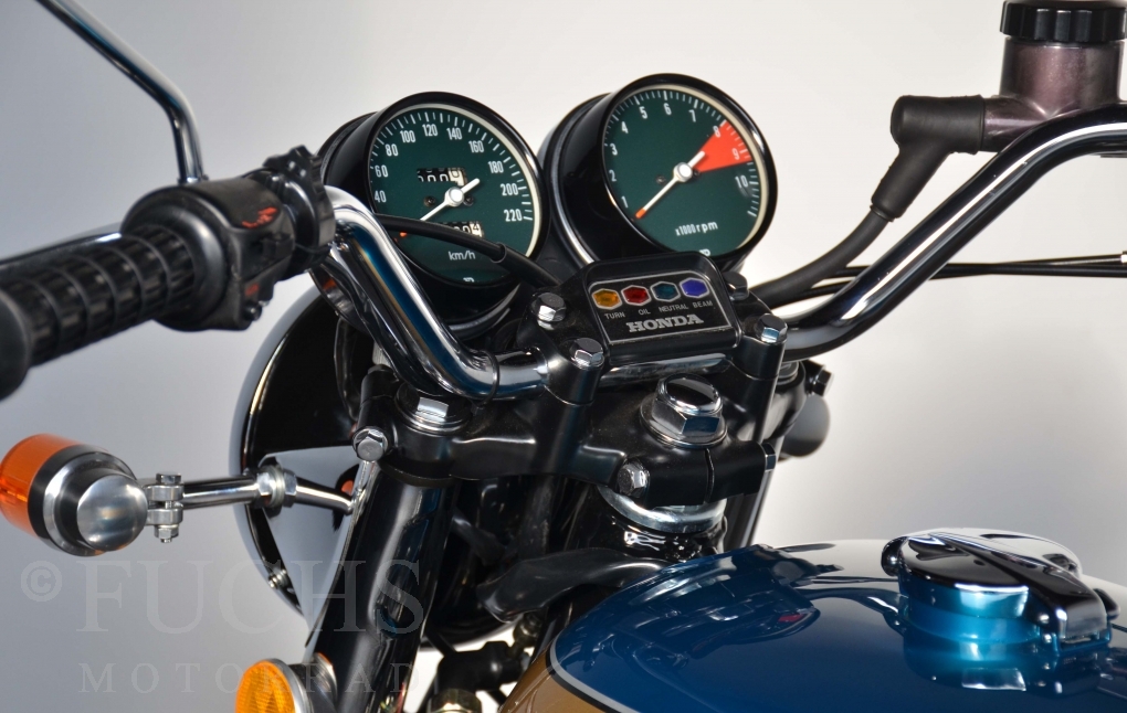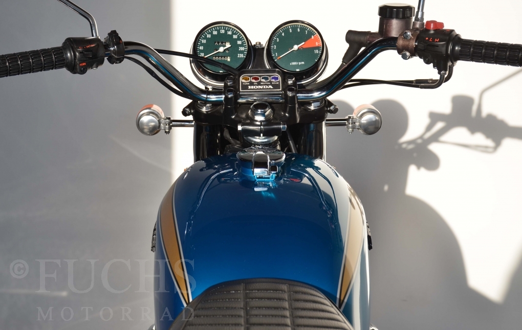 The CB 750 Four K2 is a classic also for customers who want a quality that is almost equivalent to a new Honda Four. A full restoration, including engine, done by a proven expert allows us to make this comparison. When you look at our photos, please bear in mind that this beautiful Honda Four came off the production line 47 years ago and who did not want to press their nose flat against dealer windows or at least have a poster back then. German vehicle documents are available.