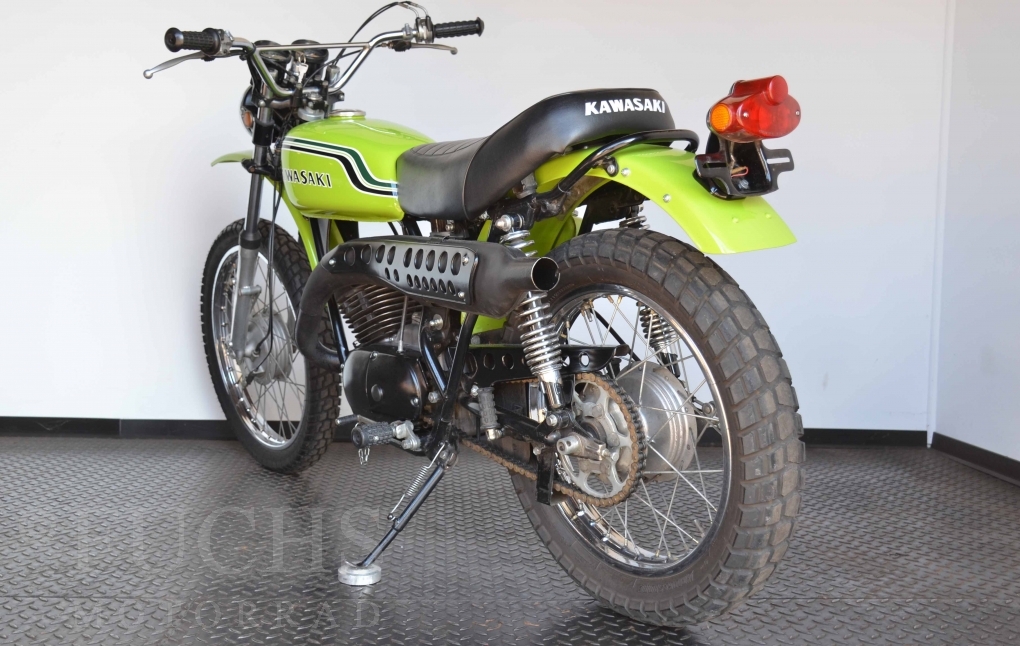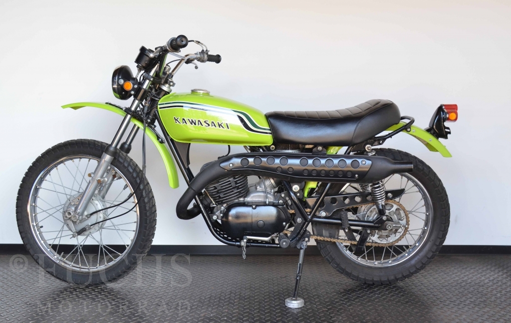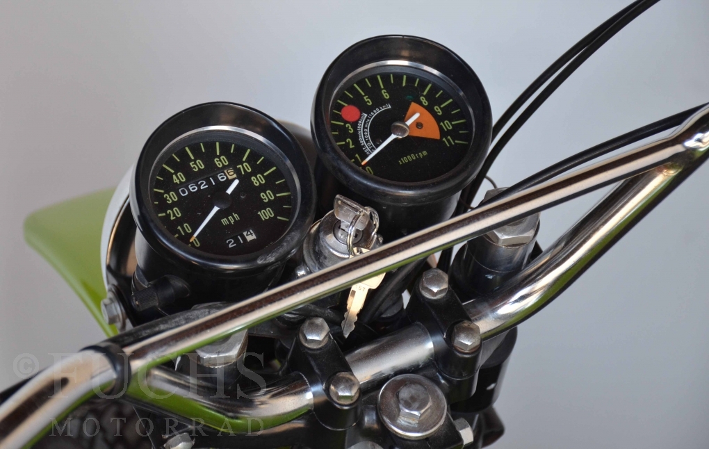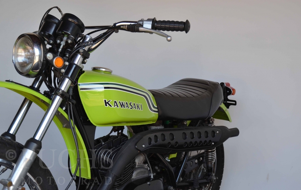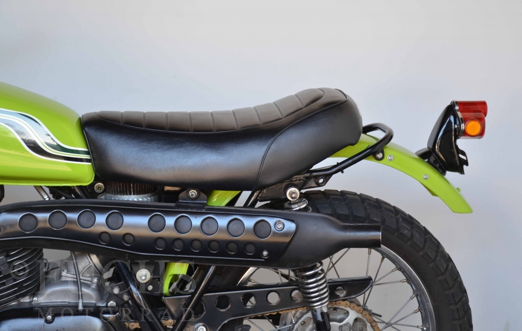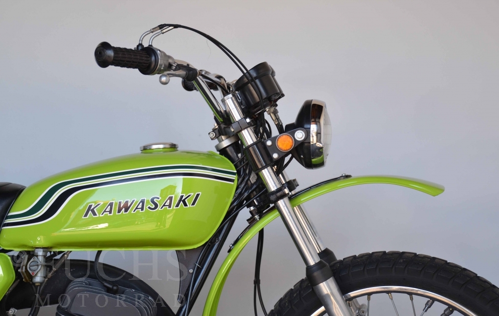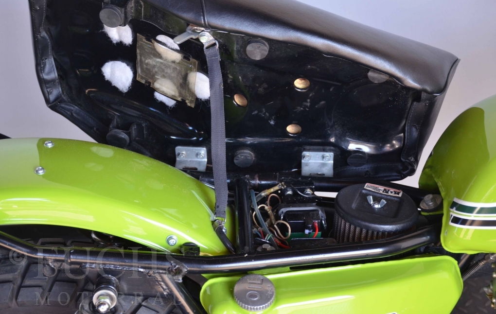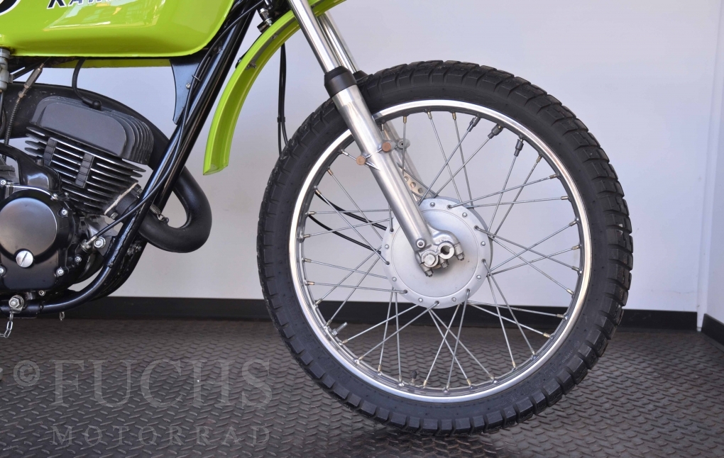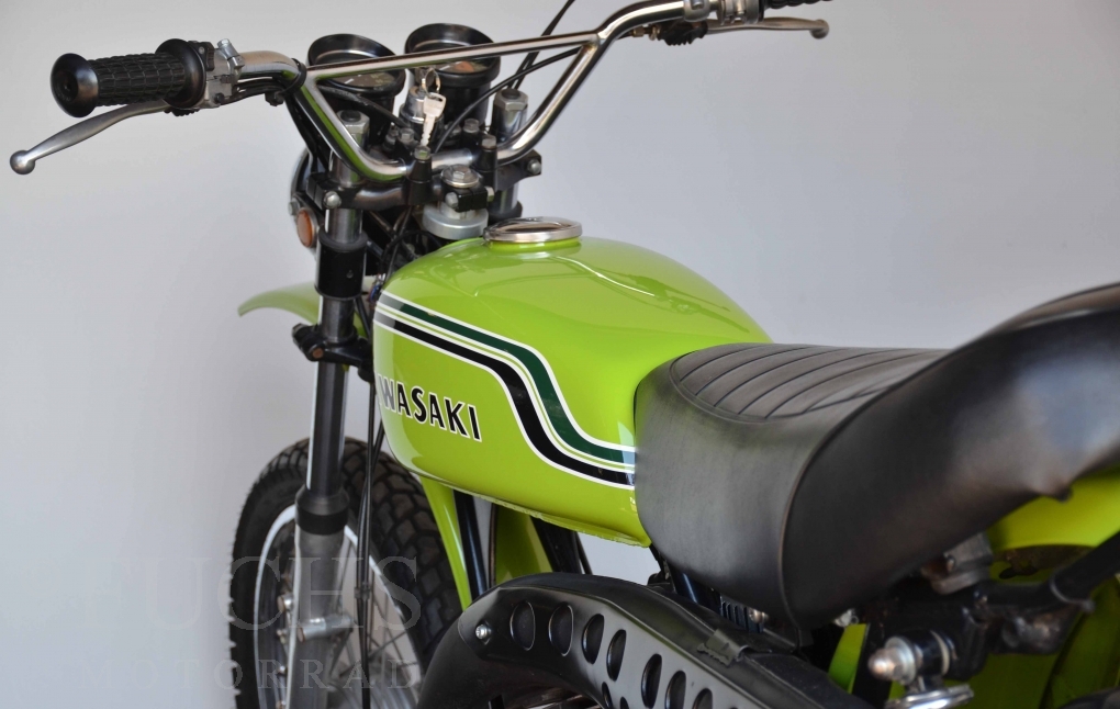 Our F5-A Big Horn dates back to 1971. With the Big Horn, Kawasaki brought an enduro onto the market for the first time that was also suitable for road use. The F5-A was primarily sold in the USA. Our Big Horn is technically and visually in very good condition. The engine and frame numbers correspond to the F5-A model, so we can speak of matching numbers for this rare machine.