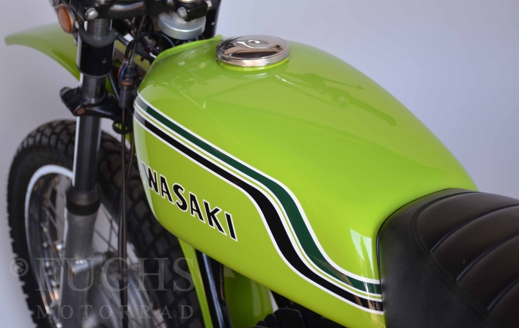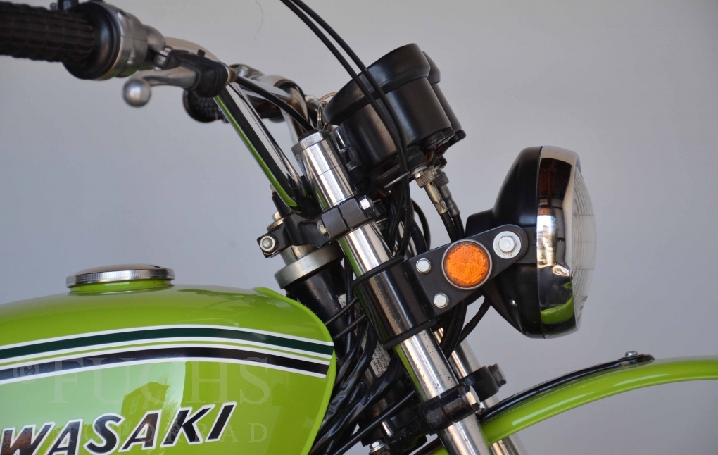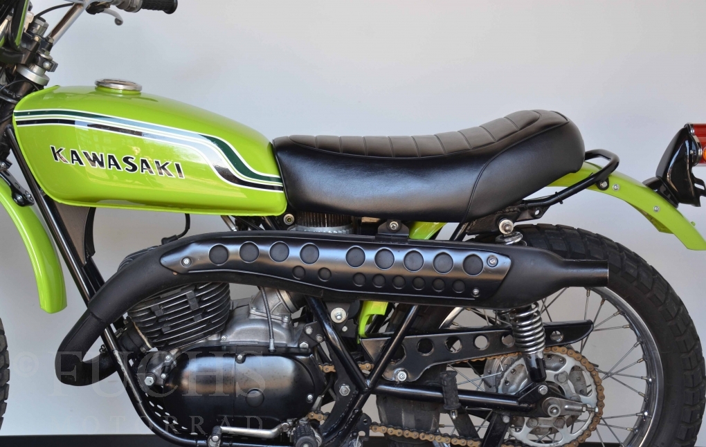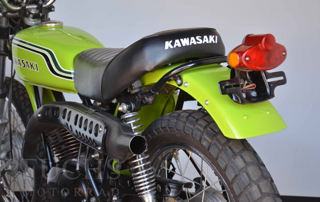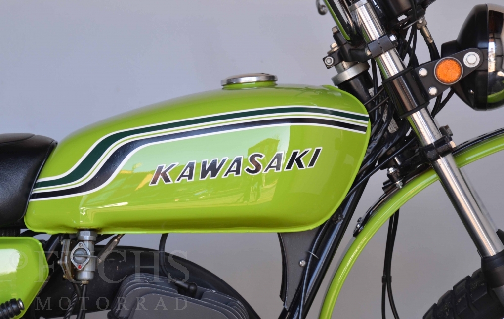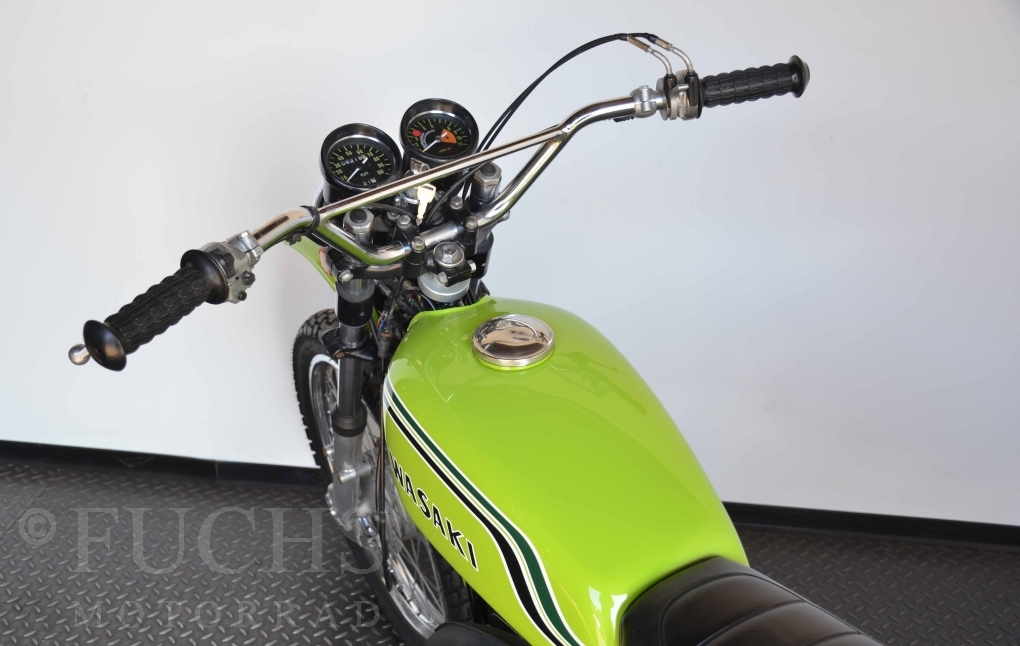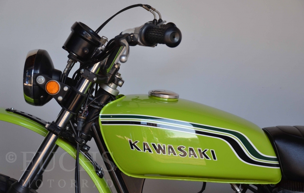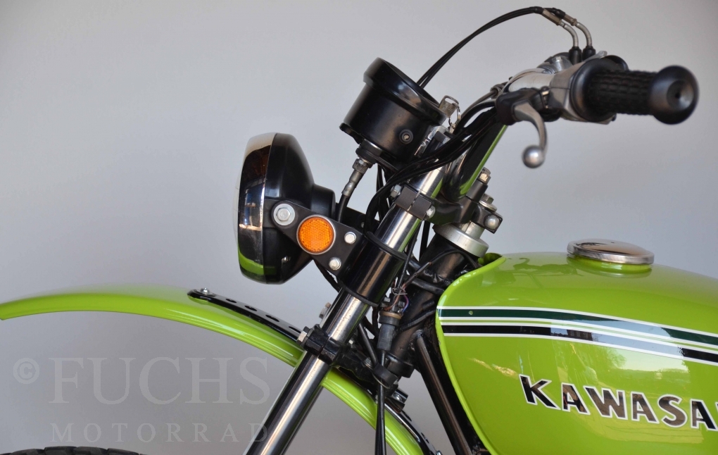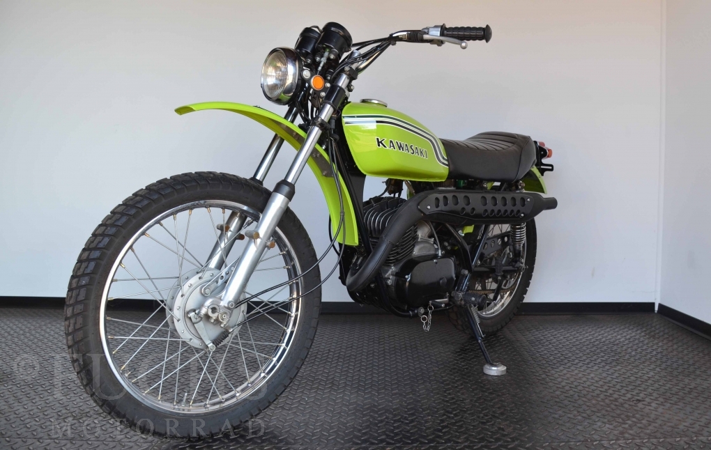 Our F5-A Big Horn dates back to 1971. With the Big Horn, Kawasaki brought an enduro onto the market for the first time that was also suitable for road use. The F5-A was primarily sold in the USA. Our Big Horn is technically and visually in very good condition. The engine and frame numbers correspond to the F5-A model, so we can speak of matching numbers for this rare machine.