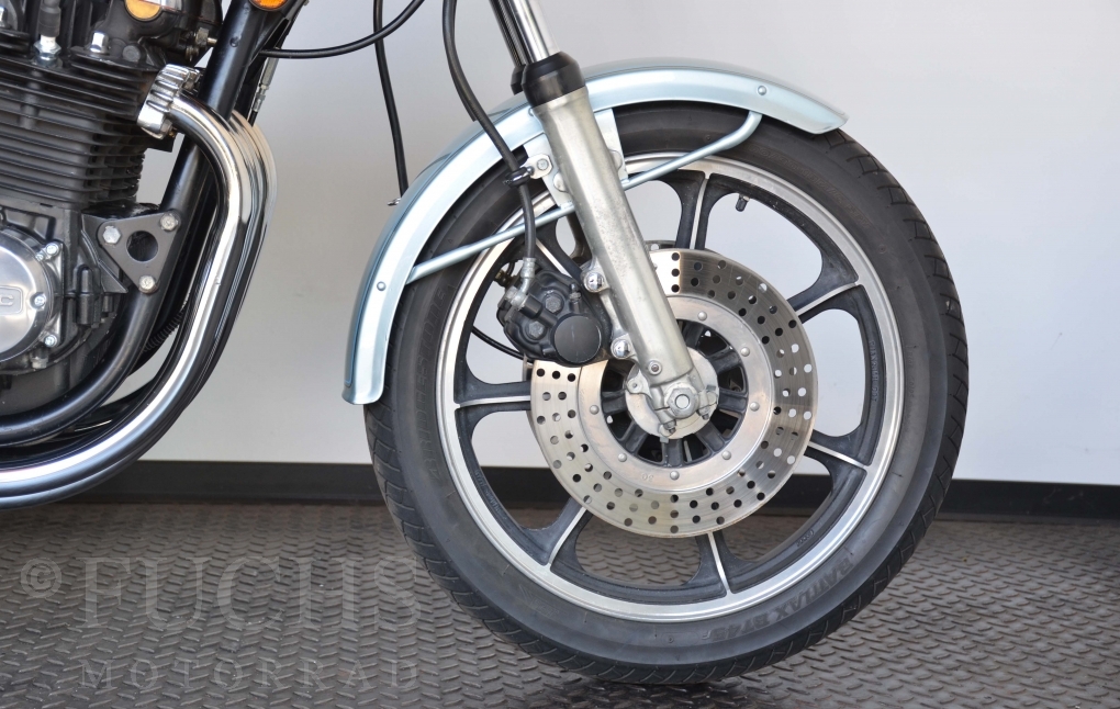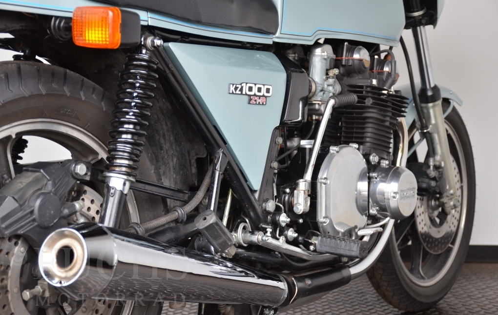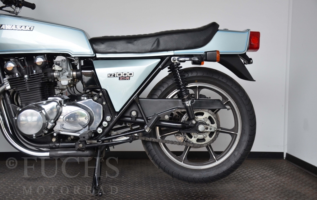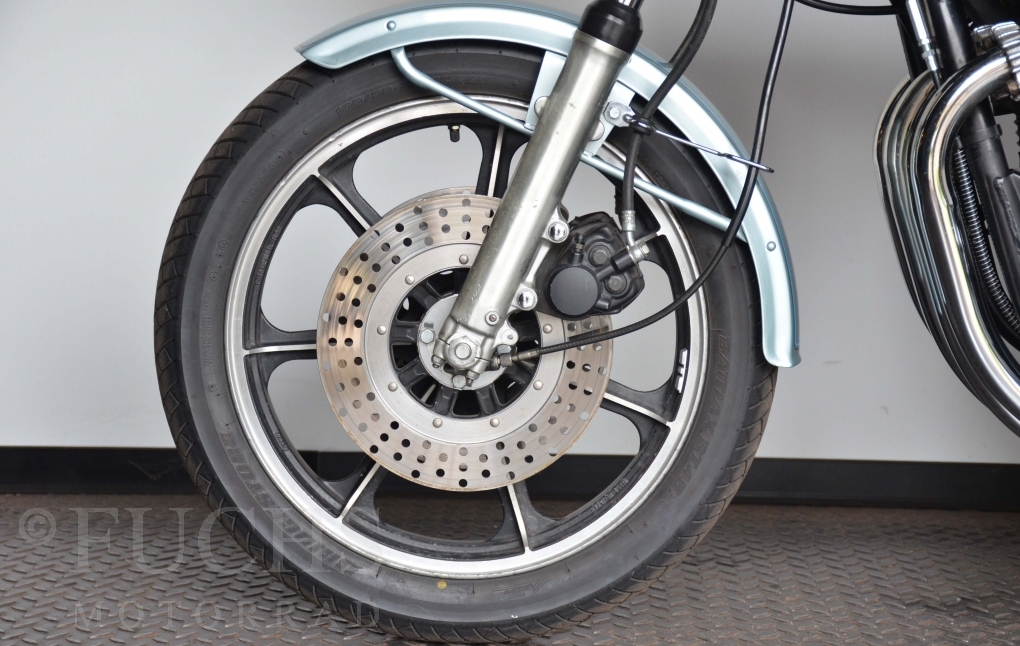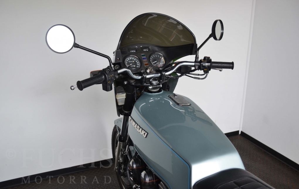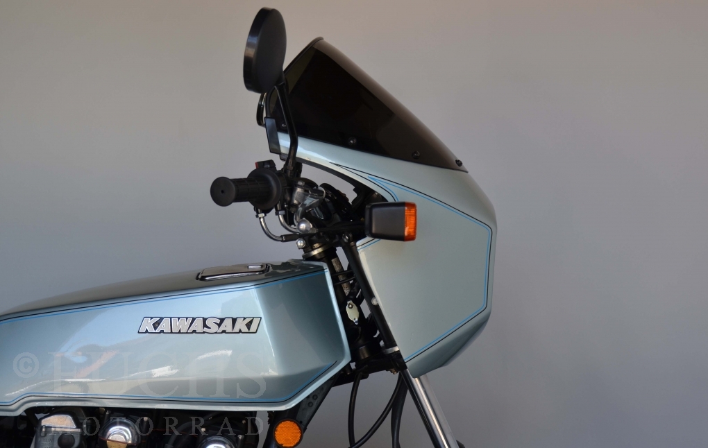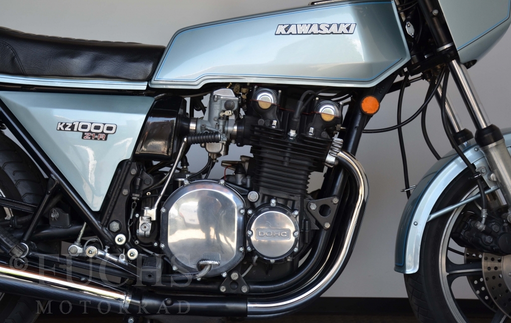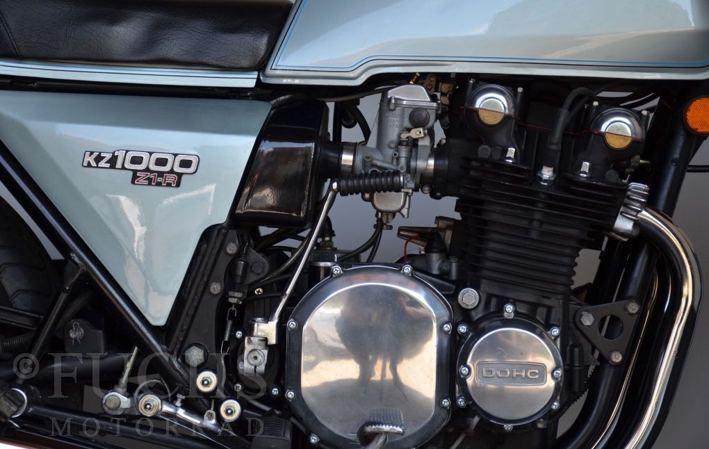 The Z1-R was presented for the first time in 1977. The Z1-R was immediately voted Motorcycle of the Year in Germany. In recent years, this model has become one of the most sought-after classics of the Kawasaki brand. We are pleased to be able to present a good Z1-R. Especially for collectors it is worth mentioning that the engine number (KZT00DE0148XX) matches the frame number. The originality has also been preserved. As before, the main brake cylinder is on the left fork leg and the dosage is done from the handlebar by means of a cable.