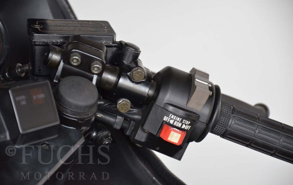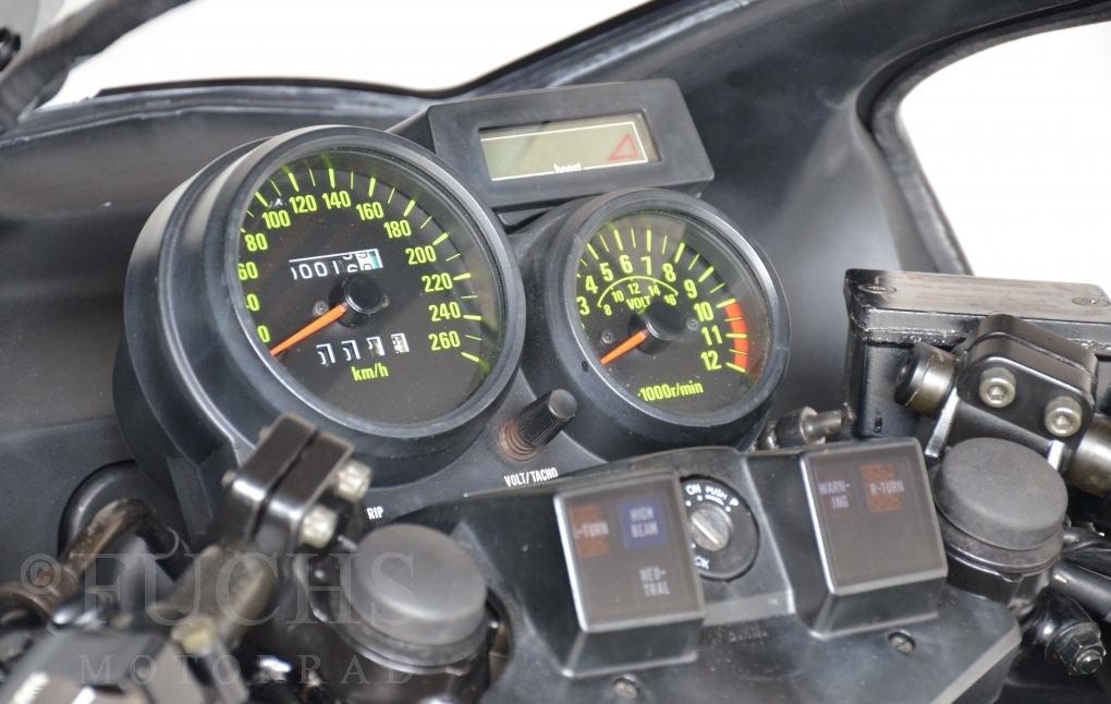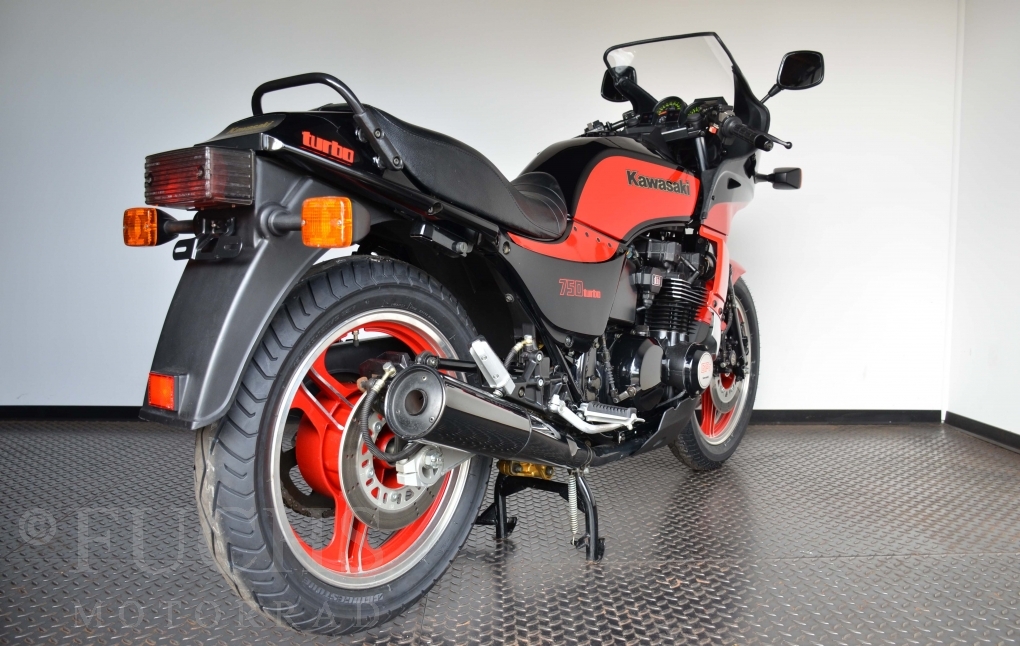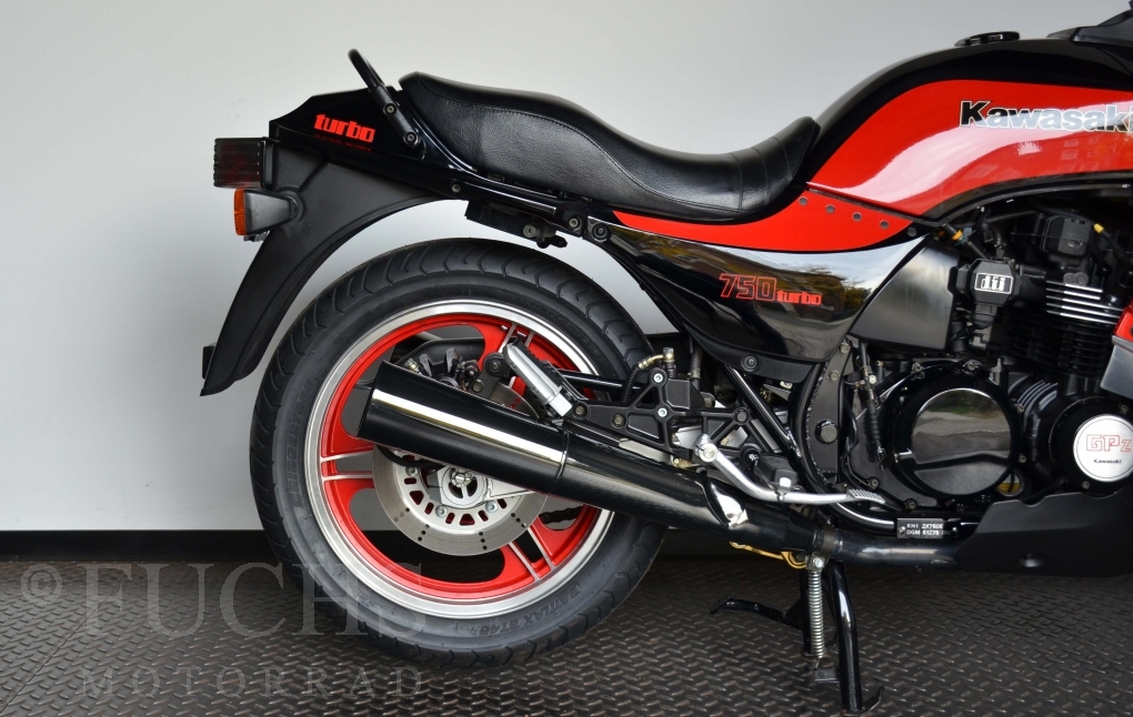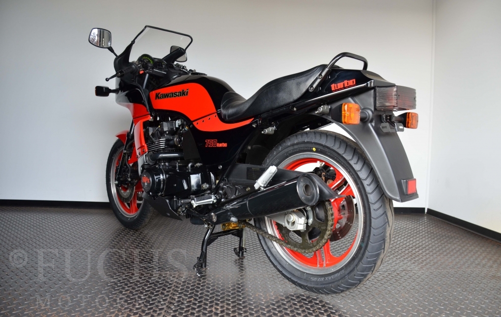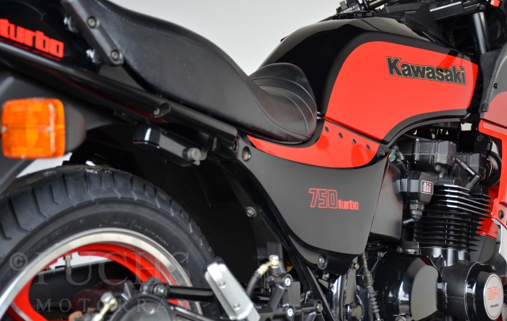 After almost 40 years we can present a Z 750 Turbo in a first class original unrestored condition. Only 16 km was this model moved. Kawasaki produced this model only 2 years. Our E1 corresponds to the first model year 1983. Although the technical development of the turbo engine was well thought out and the performance was considered good, only a few vehicles were sold, which has made our Turbo a sought-after collectors item today. With our significantly increased number of detail photos, we want to illustrate the preserved condition over the many decades.