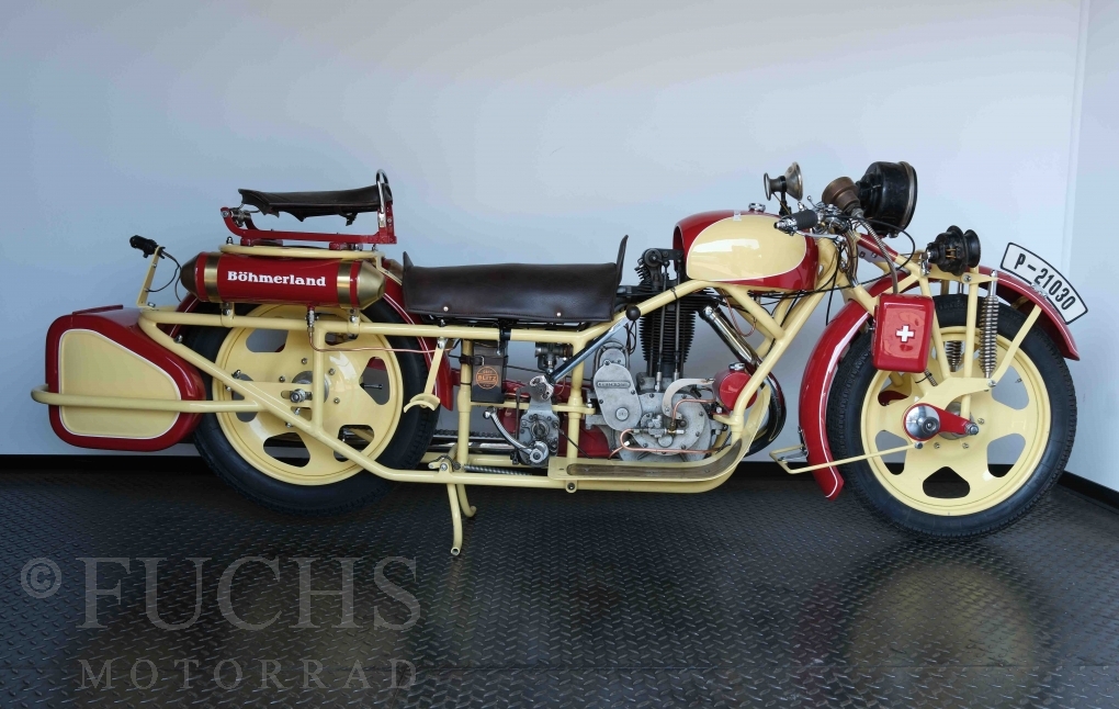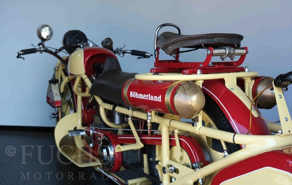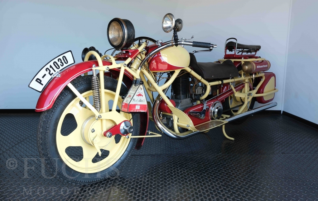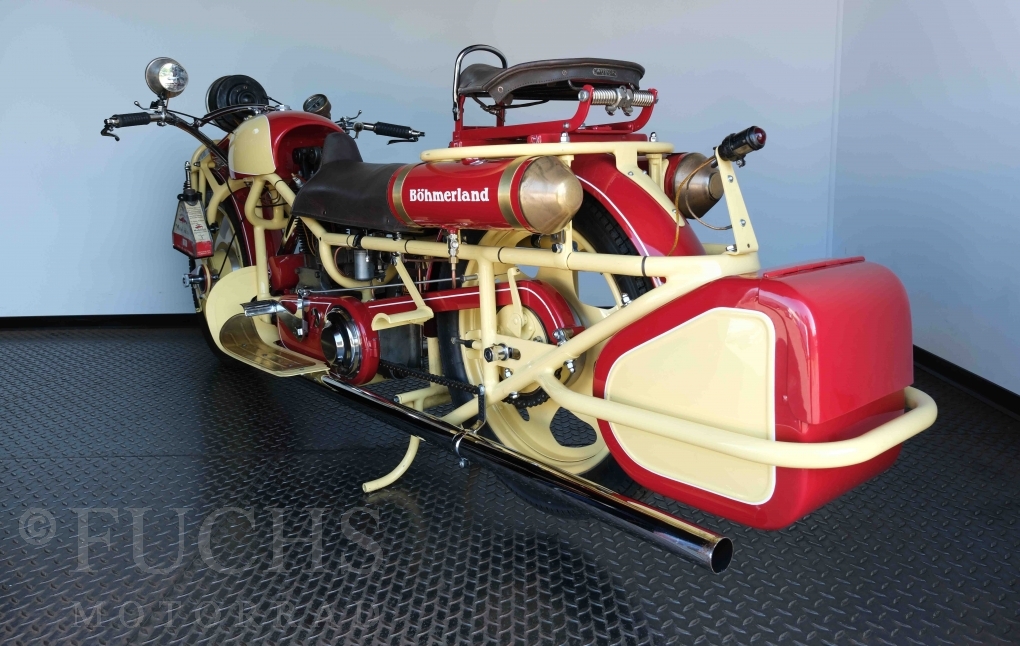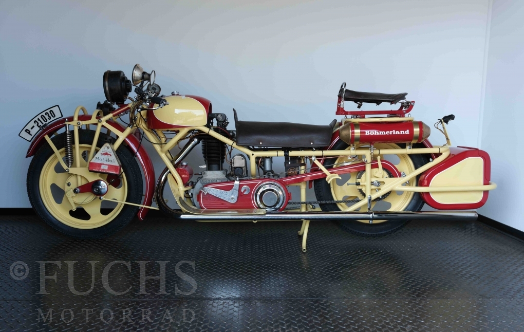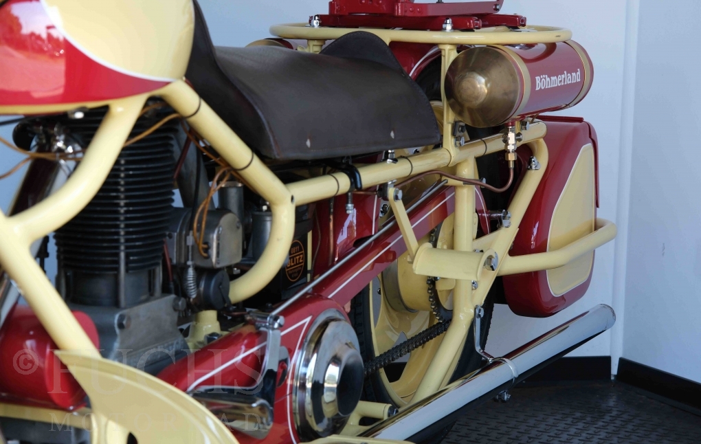 In German-speaking countries, the machine was sold as Böhmerland and internationally as Cechie. In 1923, Albin Liebisch went into business for himself with the development of his motorbike. Albin Liebisch produced the custom-built motorbikes in his factory, which was modern and perfectly equipped at the time. A distinction was made between two variants. The Jubilee was shorter. Today, Böhmerland motorbikes are coveted collectors items all over the world. Our Tourster has a 600 cc engine and is in ready-to-ride condition. German vehicle documents are available.