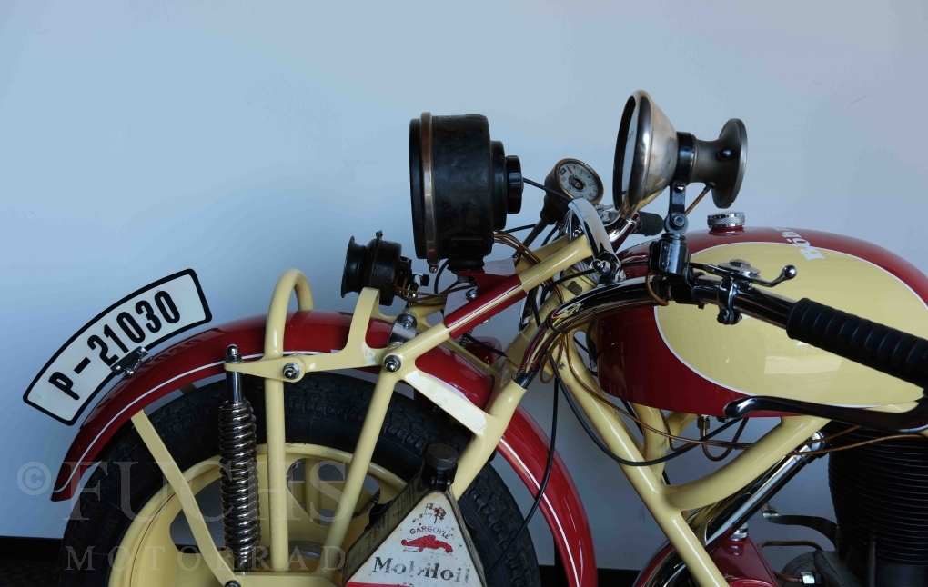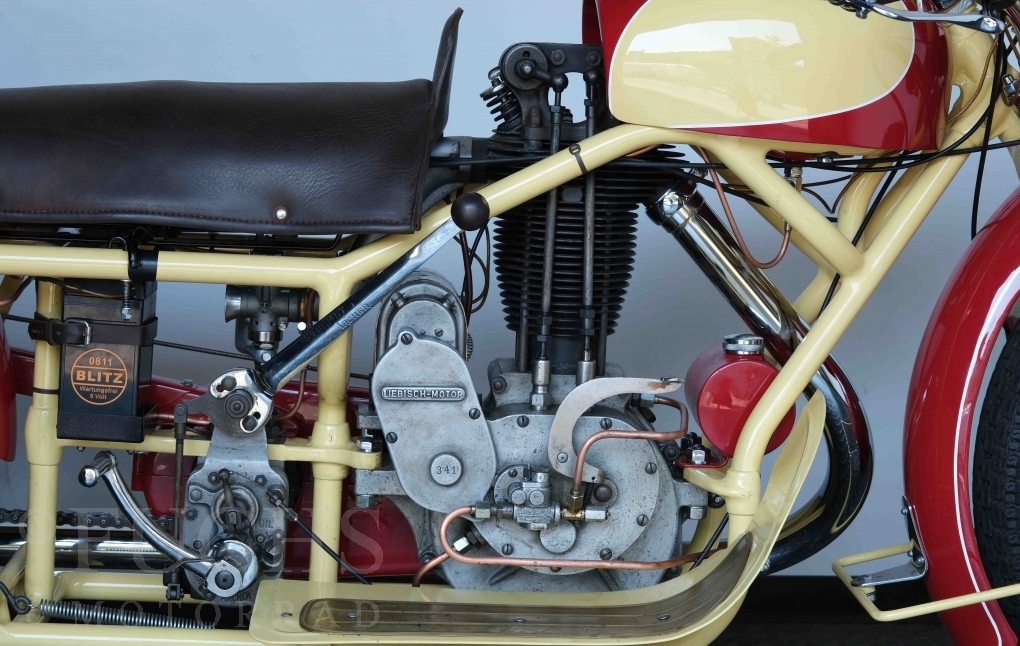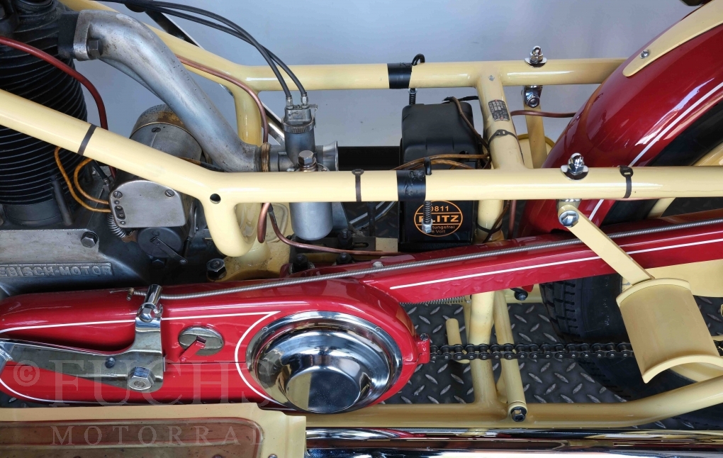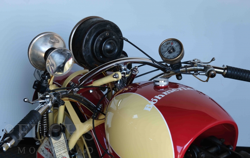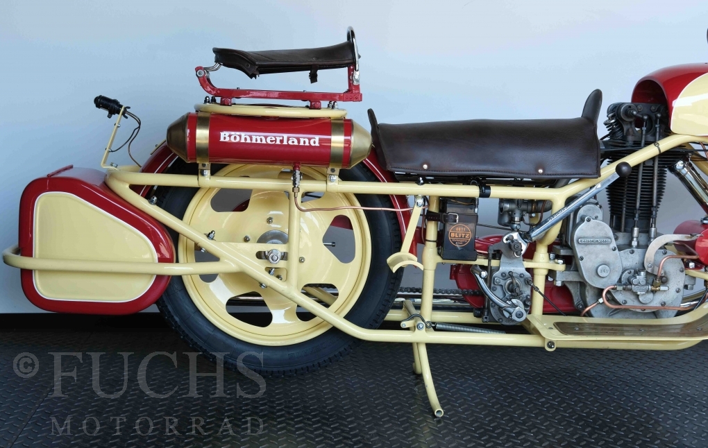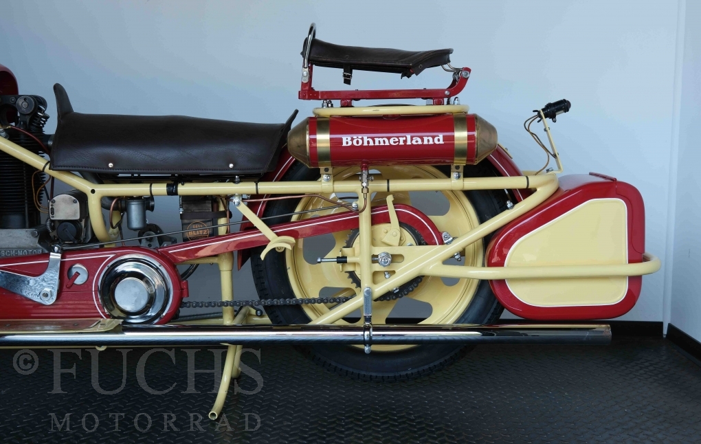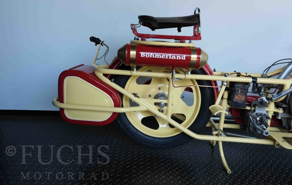 In German-speaking countries, the machine was sold as Böhmerland and internationally as Cechie. In 1923, Albin Liebisch went into business for himself with the development of his motorbike. Albin Liebisch produced the custom-built motorbikes in his factory, which was modern and perfectly equipped at the time. A distinction was made between two variants. The Jubilee was shorter. Today, Böhmerland motorbikes are coveted collectors items all over the world. Our Tourster has a 600 cc engine and is in ready-to-ride condition. German vehicle documents are available.