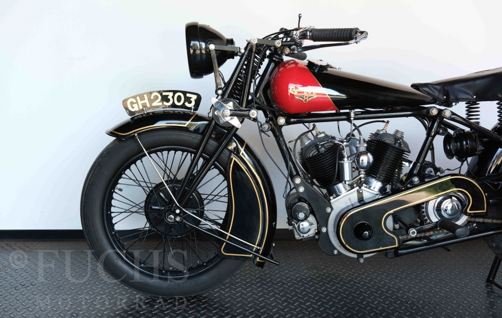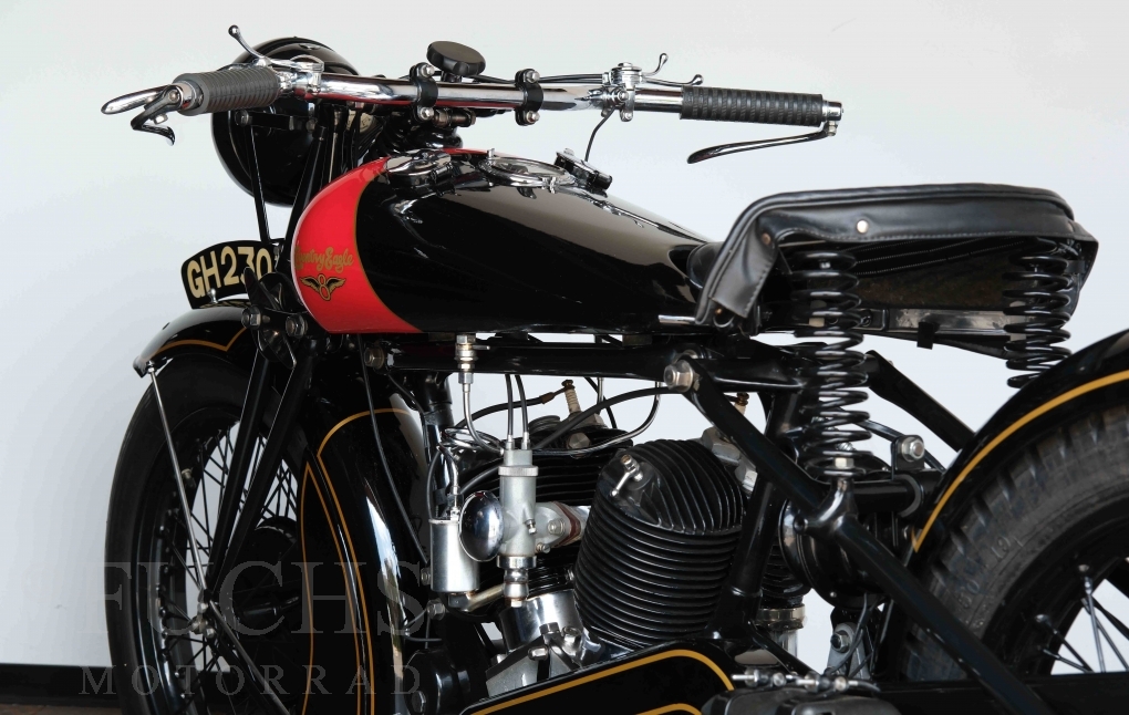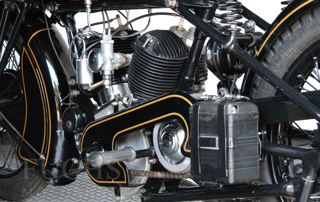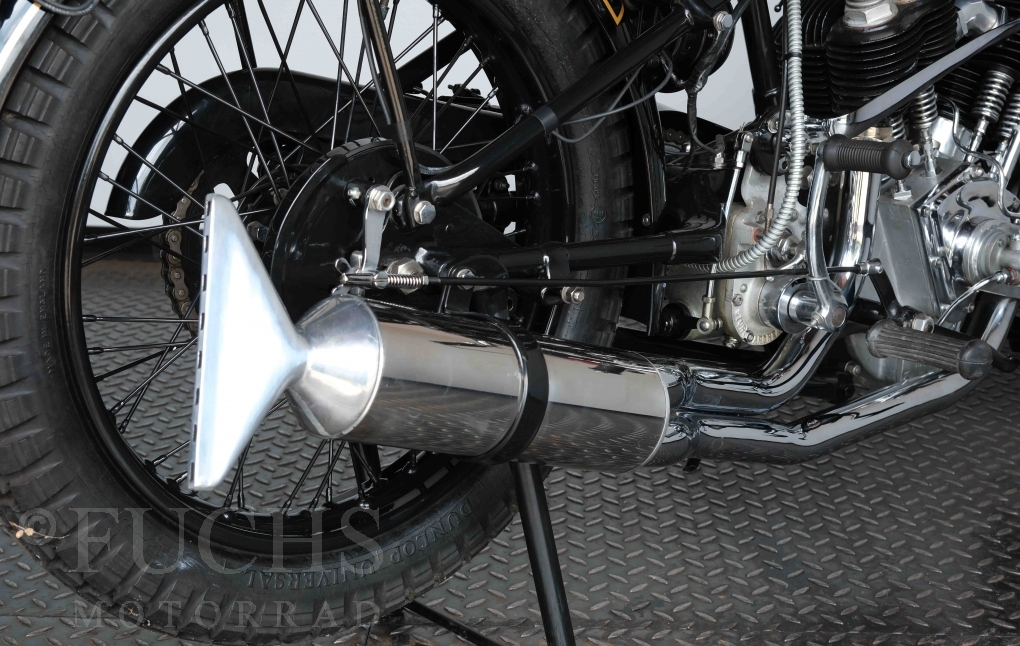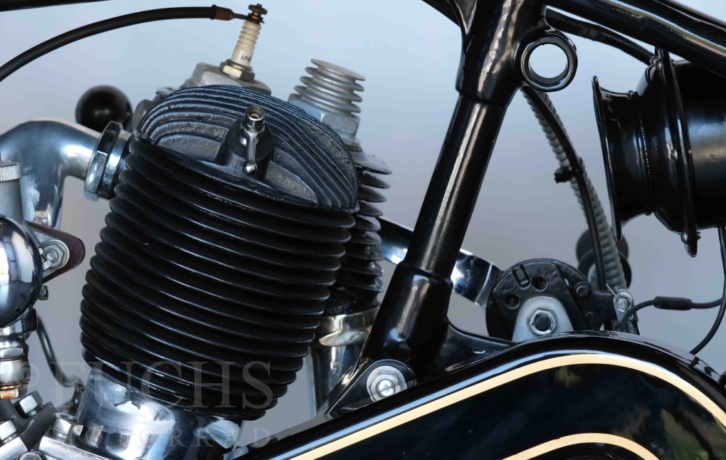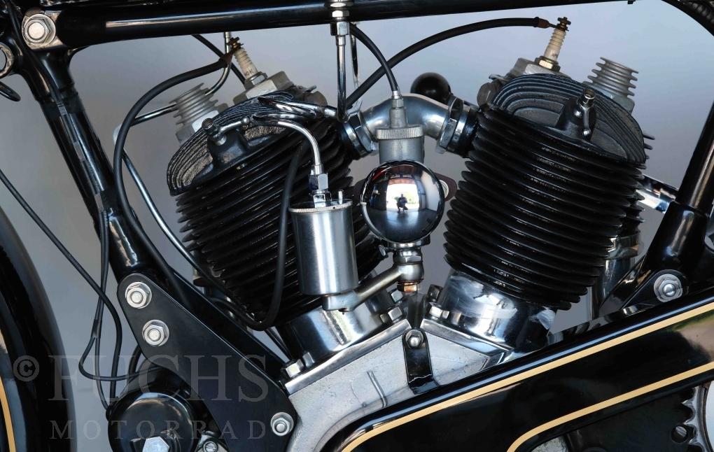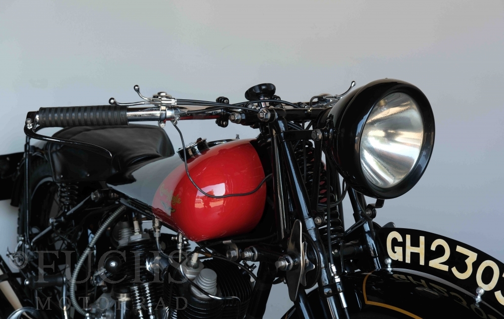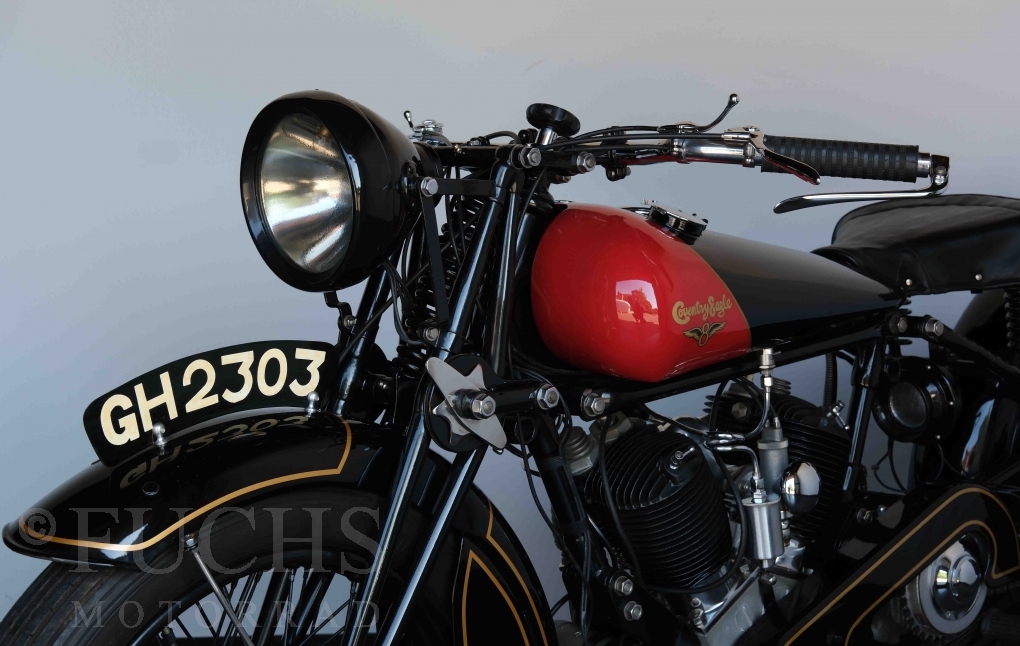 Undisputedly, the manufacturer Coventry Eagle is considered one of the best motorcycle producers in the 20s. The Flying Eight has become a celebrity. Good examples are very rare to find in the world market. The rounded tank reveals a certain kinship with the Brough Superior models. One of the reasons is that employees of Brough Superior moved to Coventry Eagle. The entrepreneurial goal to establish itself as a manufacturer of luxury motorcycles could not be realized. The production had to be stopped in 1945. All the more we are pleased to be able to offer this beautiful rarity.