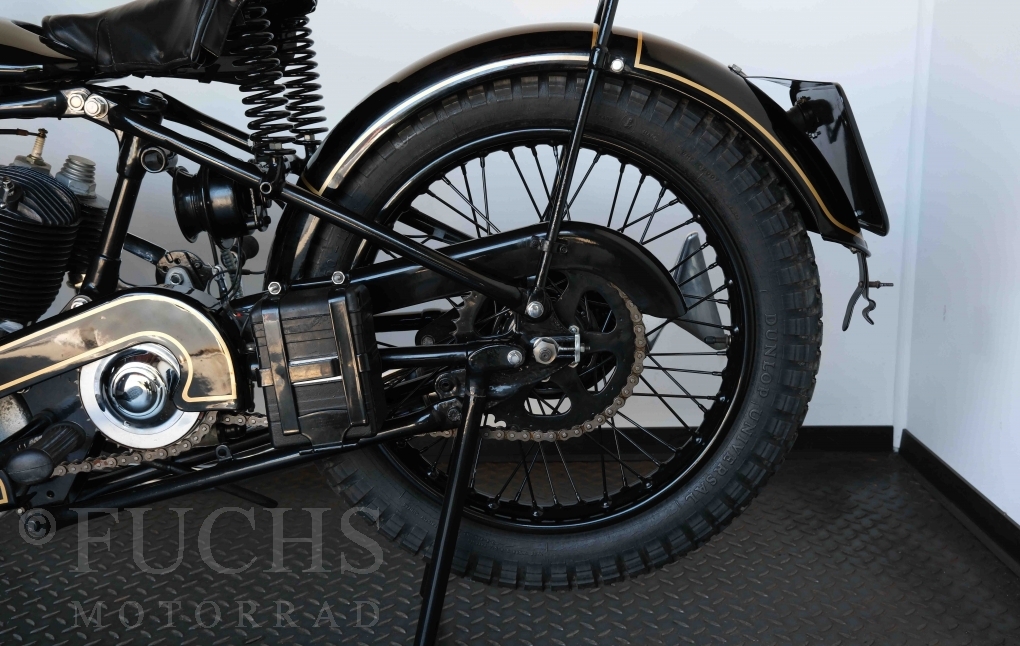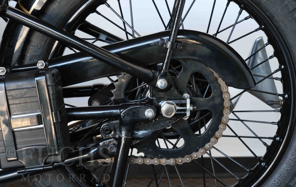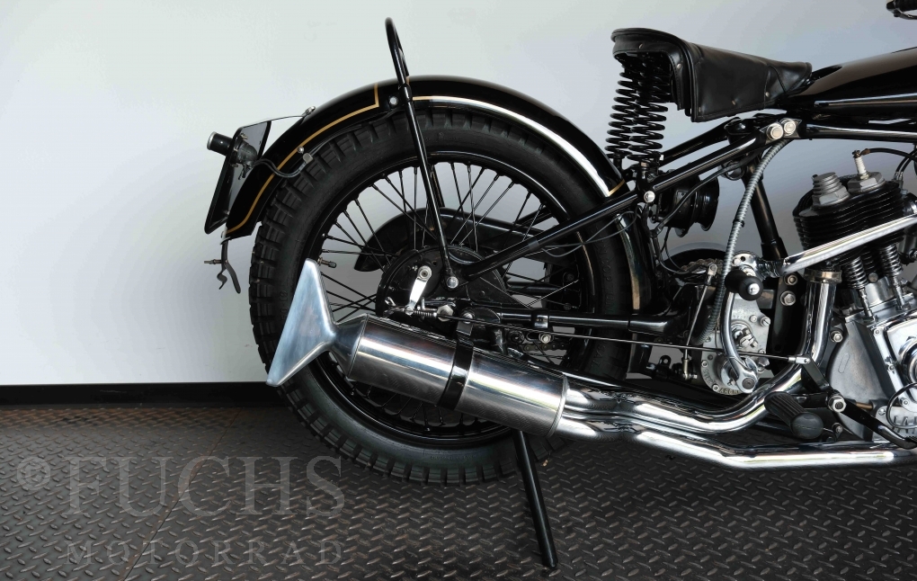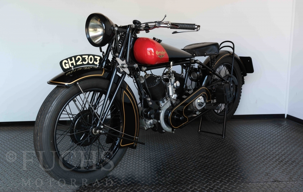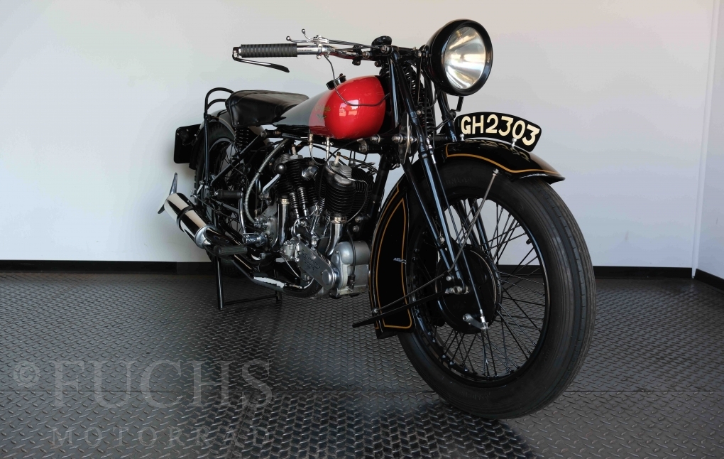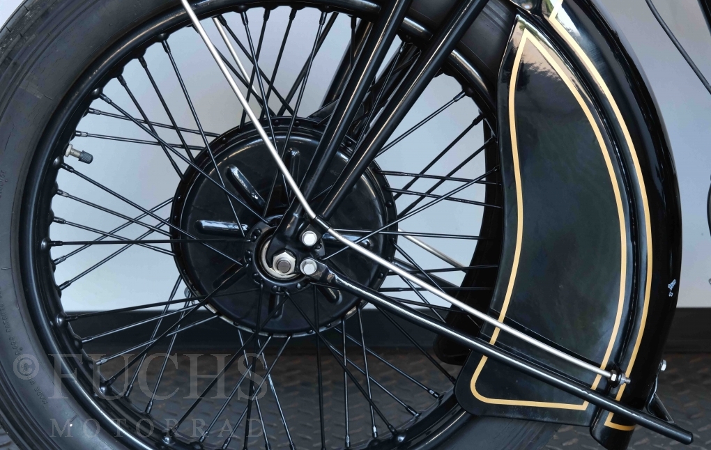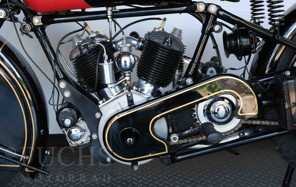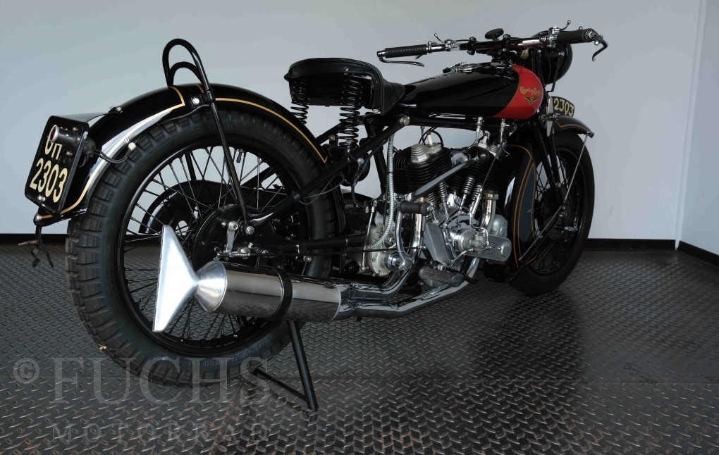 Undisputedly, the manufacturer Coventry Eagle is considered one of the best motorcycle producers in the 20s. The Flying Eight has become a celebrity. Good examples are very rare to find in the world market. The rounded tank reveals a certain kinship with the Brough Superior models. One of the reasons is that employees of Brough Superior moved to Coventry Eagle. The entrepreneurial goal to establish itself as a manufacturer of luxury motorcycles could not be realized. The production had to be stopped in 1945. All the more we are pleased to be able to offer this beautiful rarity.