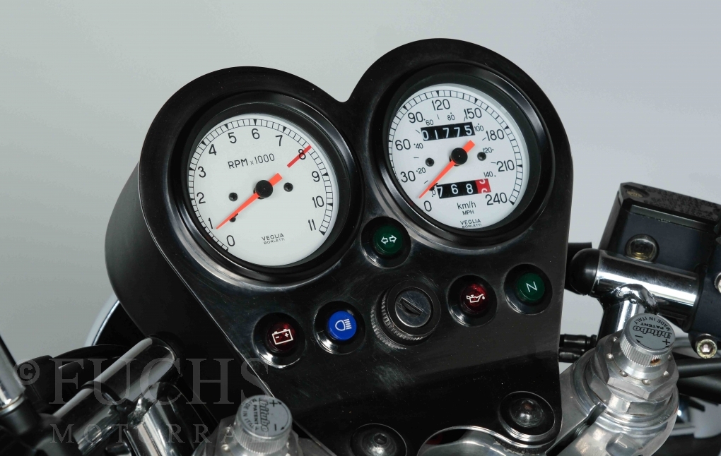 In 1989, a Moto Guzzi 1000 S was offered for the first time. The Moto Guzzi 1000 S was based on the Moto Guzzi 750 S3. The 1000 S was launched on the market with catalytic converter technology and a crankshaft with plain bearings. Our Moto Guzzi has one previous owner and was part of a motorbike collection for years. The low mileage and the very good original condition distinguish this Guzzi.
