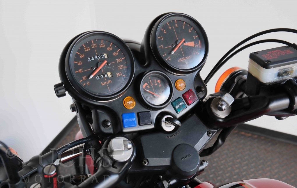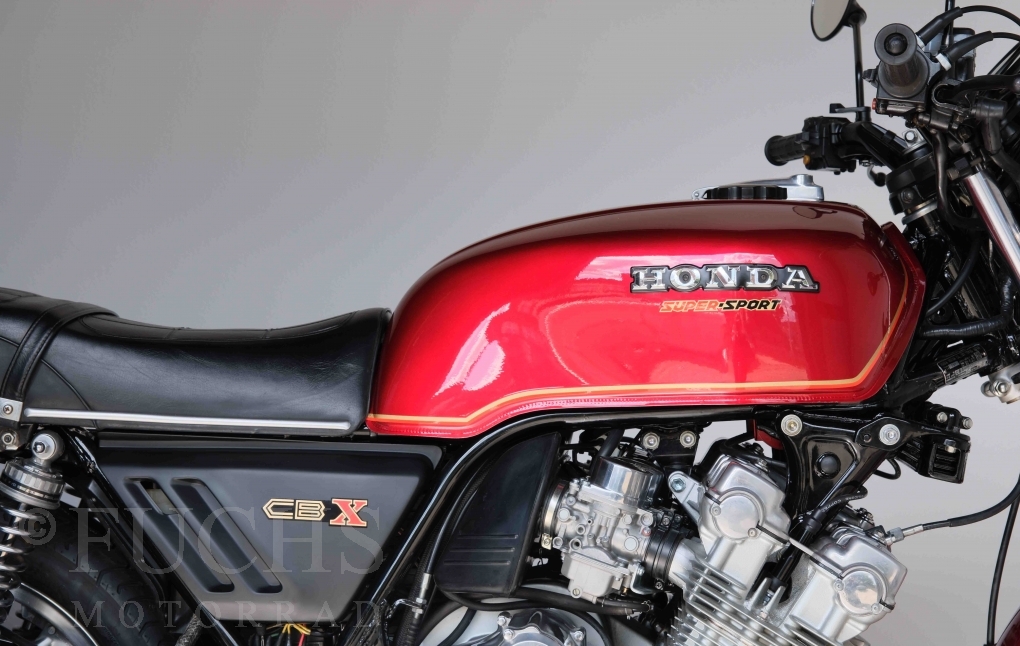 We bought the Honda CBX 1000 from a collector in order to technically overhaul the 6-cylinder. Visually, we thought the Honda was beautiful. We overhauled the engine. After test rides of around 150 kilometres, we can now deliver the CBX. It should also be emphasised that we had the carburettor system overhauled by a qualified specialist. With new tyres, a fresh MOT and German vehicle documents, the Honda is now waiting for its new customer.