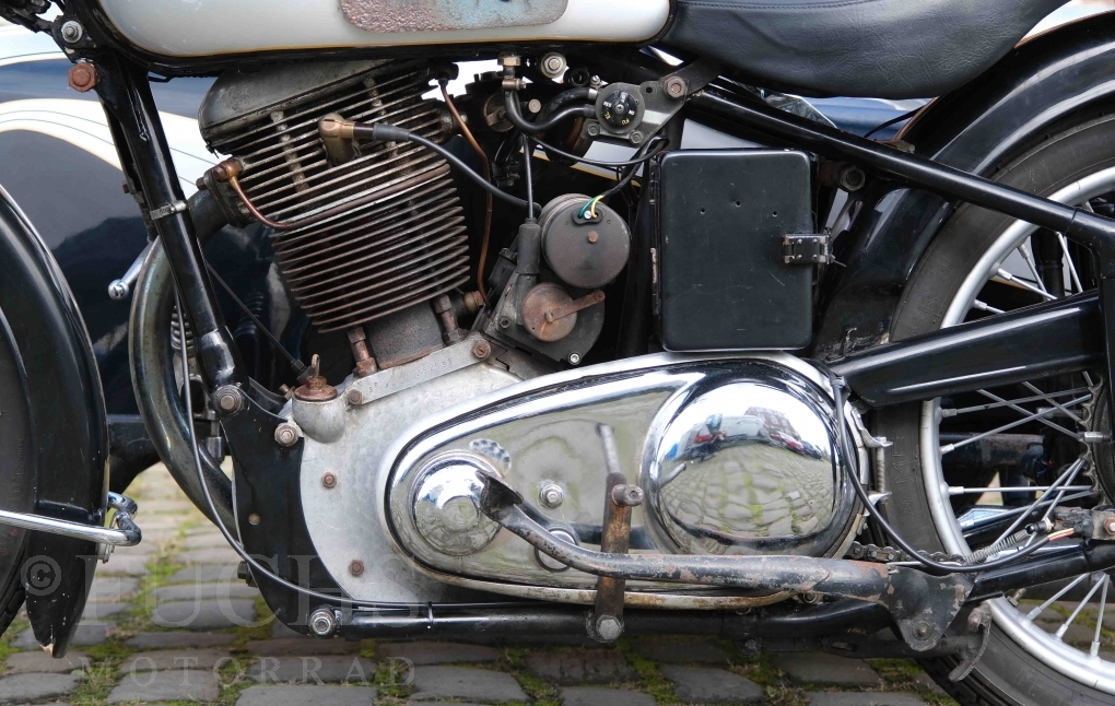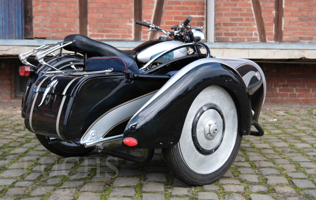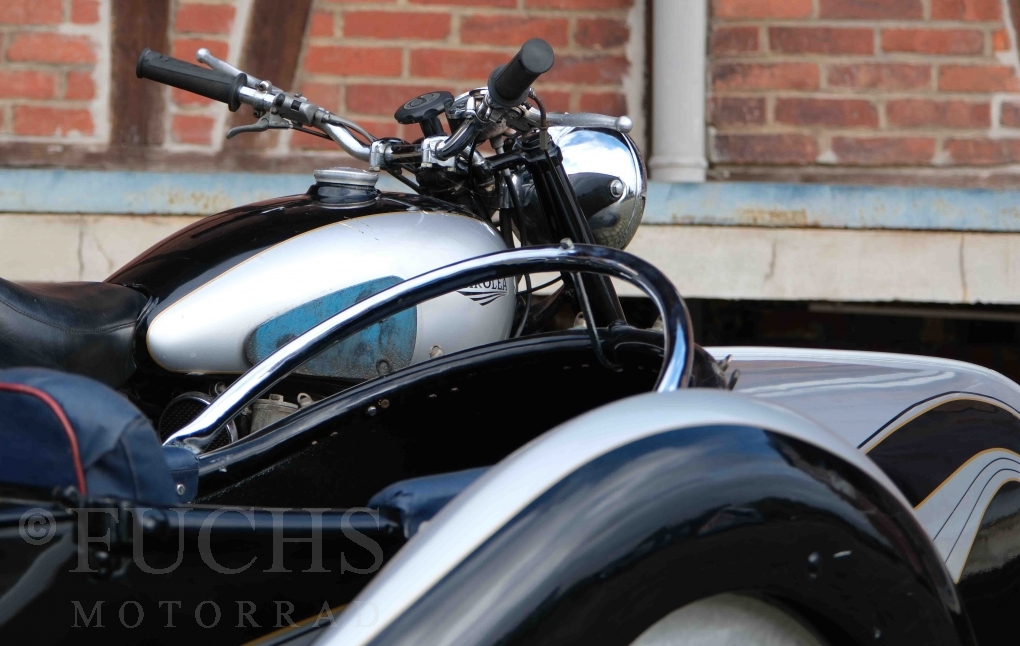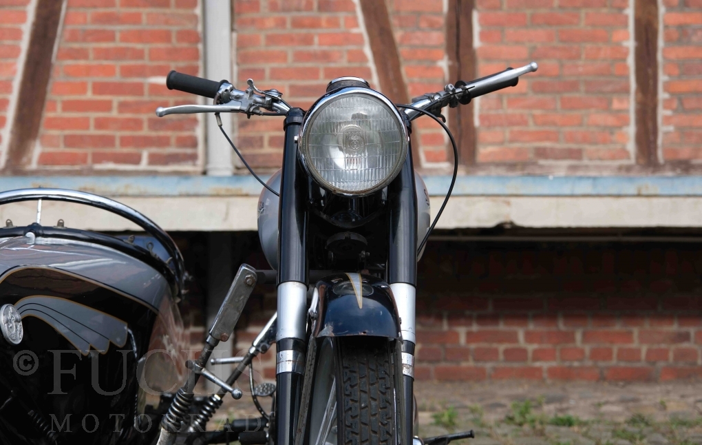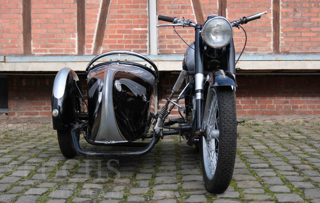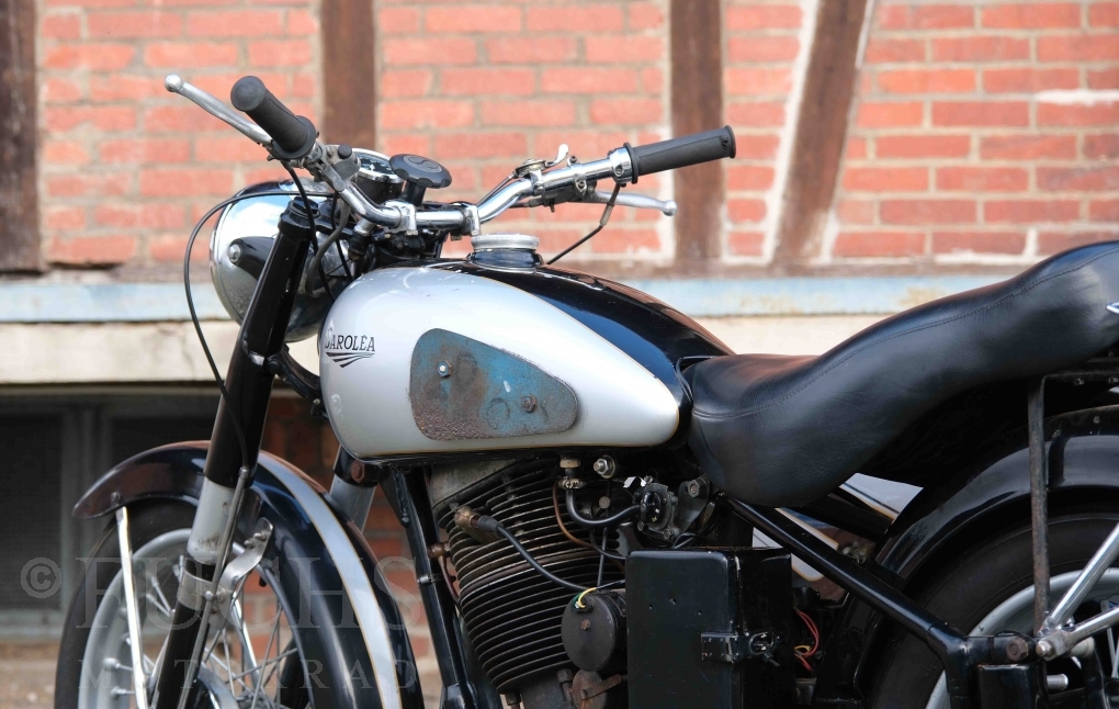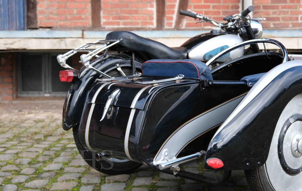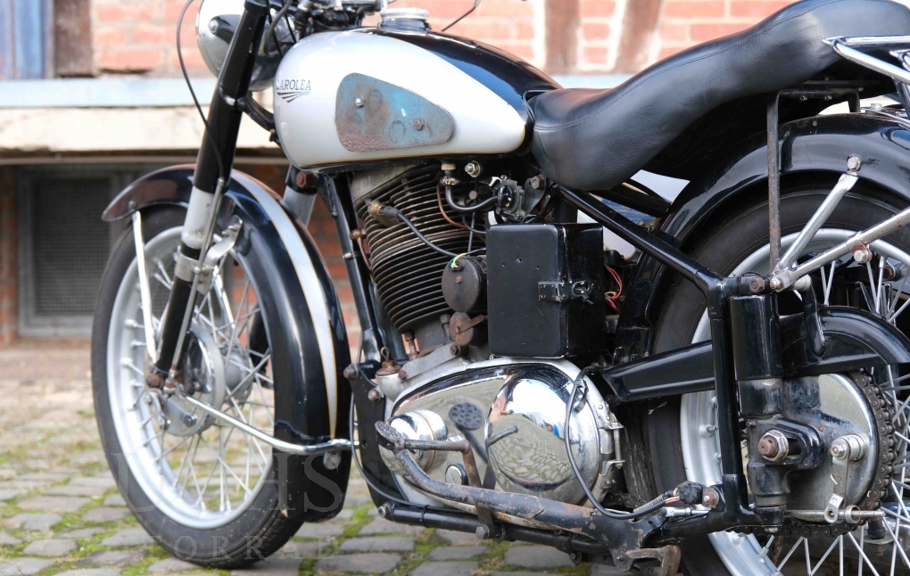 The Sarolea company was founded in Belgium in 1898. In the first few decades, Sarolea was able to make a name for itself with a range of different products. These were bicycles with an auxiliary motor called Kerry around 1905. In the 1920s, the first 500 was introduced. From then on, sports bikes, touring bikes and super sports bikes were offered. Sarolea ceased production in 1960. Our combination of the 600 cc Grand Tourisme and the Precision SS Luxery is in need of restoration.