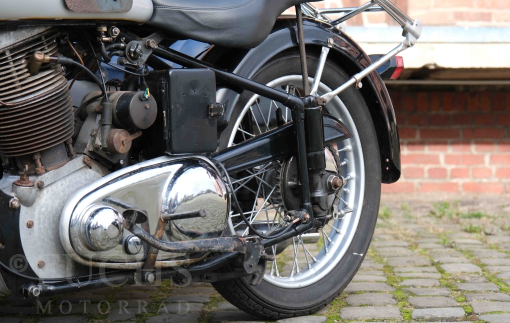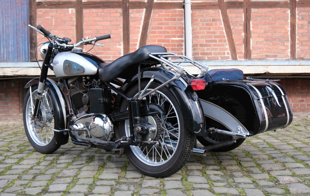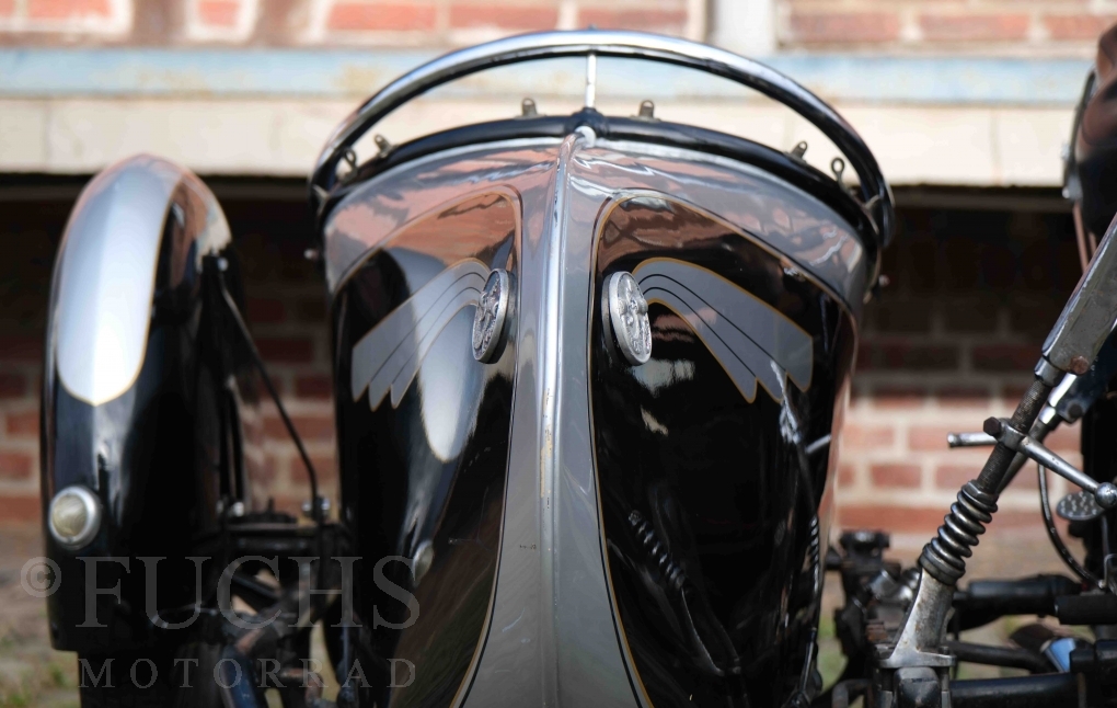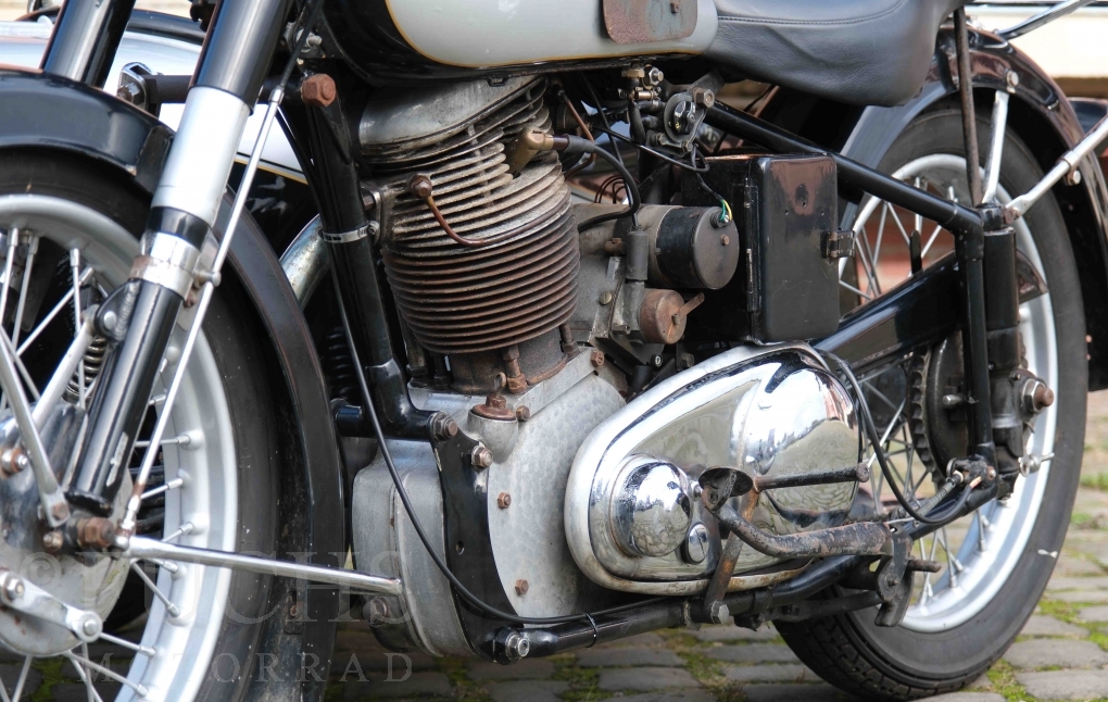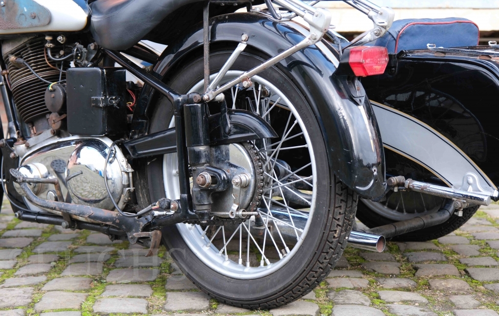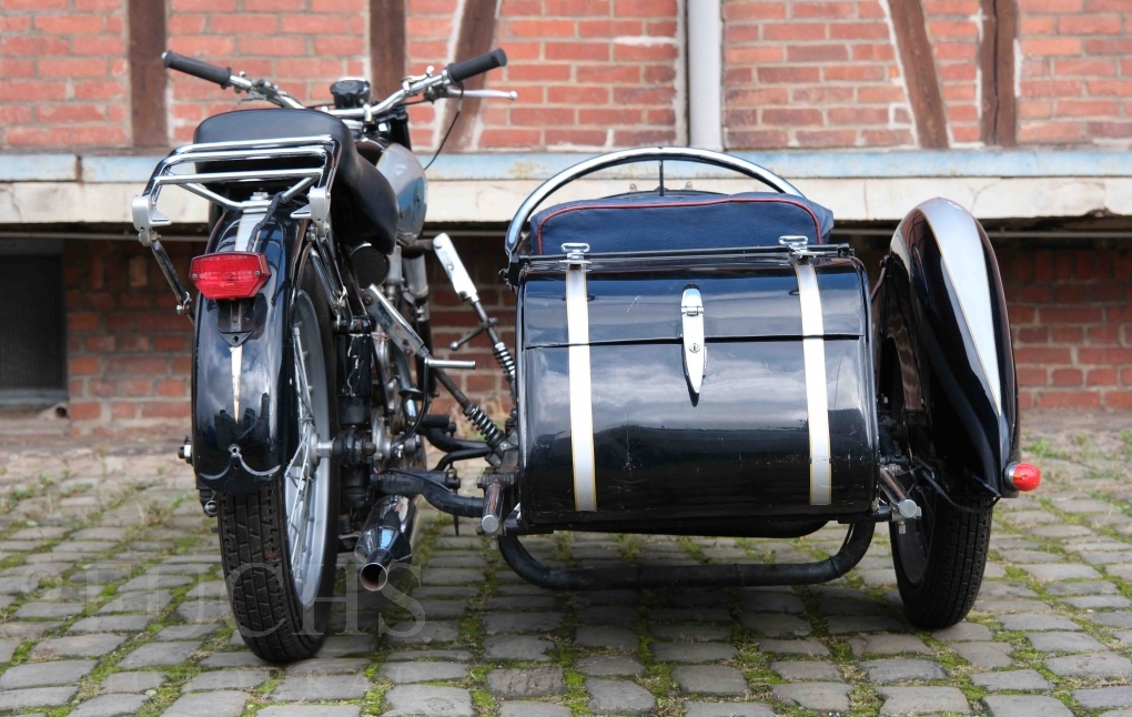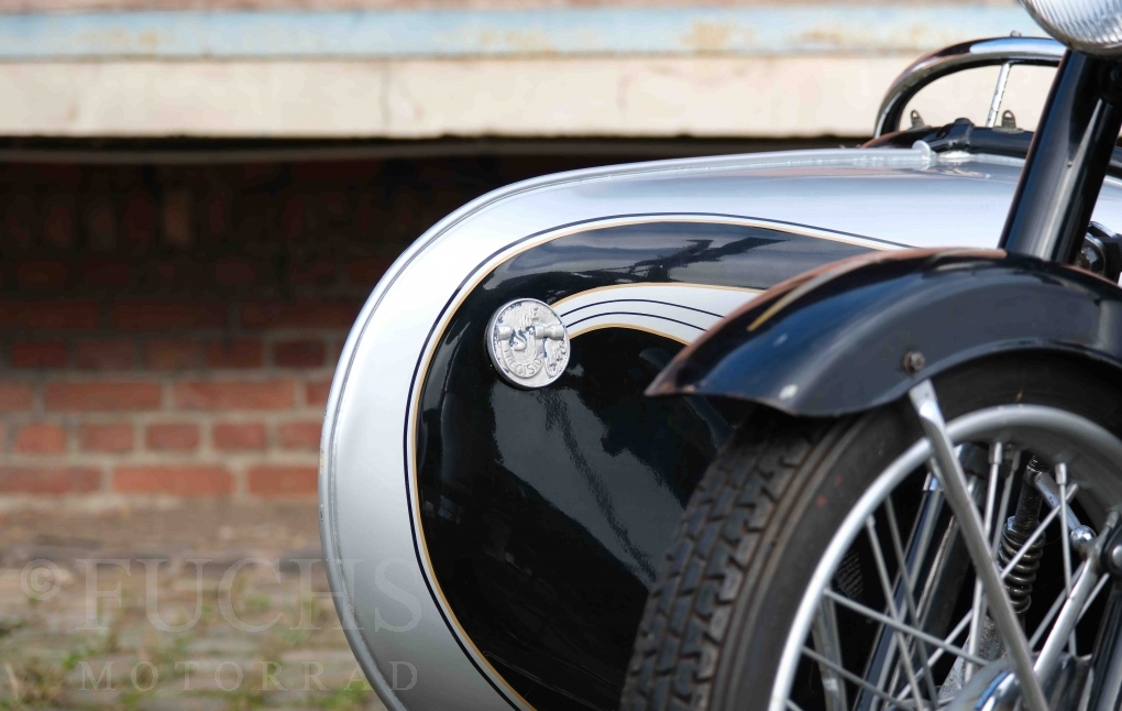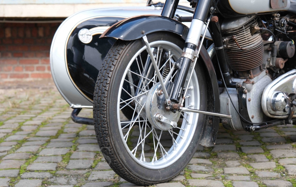 The Sarolea company was founded in Belgium in 1898. In the first few decades, Sarolea was able to make a name for itself with a range of different products. These were bicycles with an auxiliary motor called Kerry around 1905. In the 1920s, the first 500 was introduced. From then on, sports bikes, touring bikes and super sports bikes were offered. Sarolea ceased production in 1960. Our combination of the 600 cc Grand Tourisme and the Precision SS Luxery is in need of restoration.