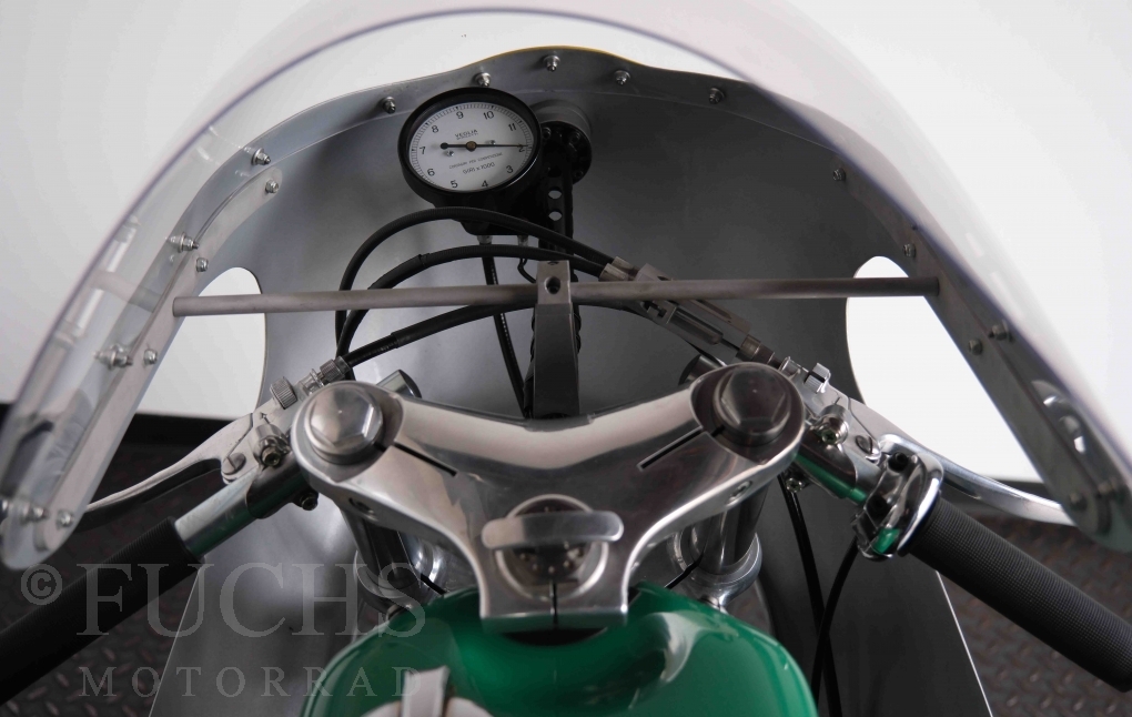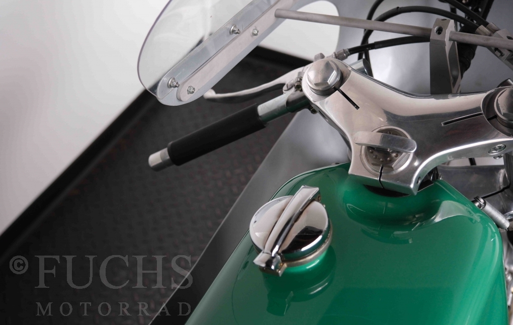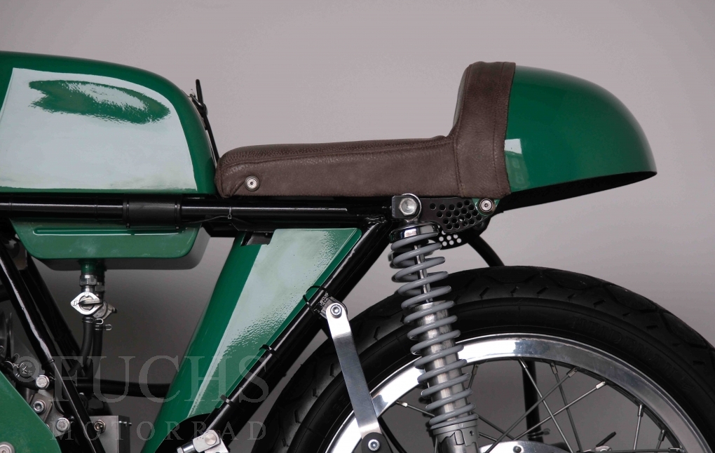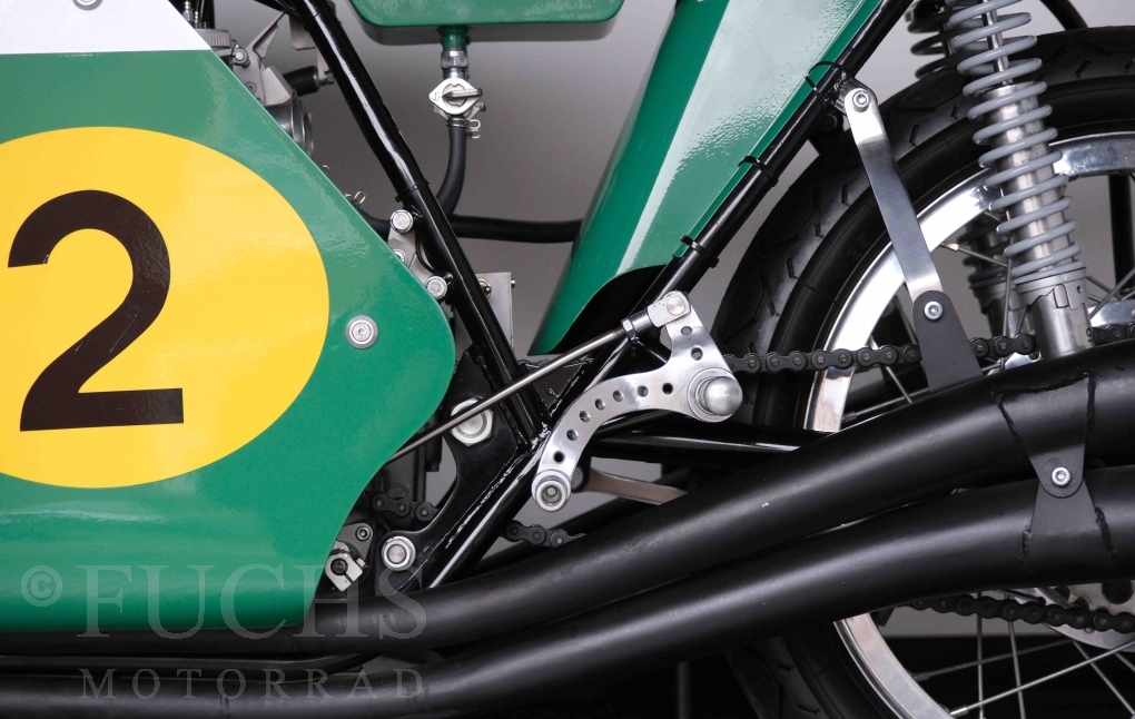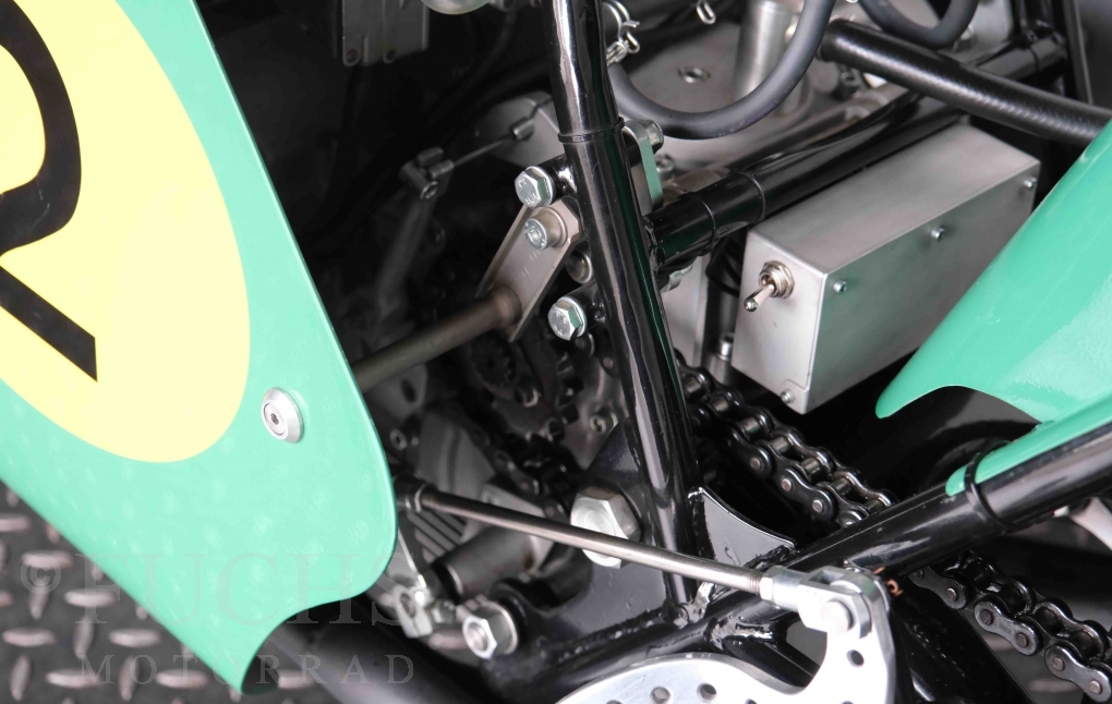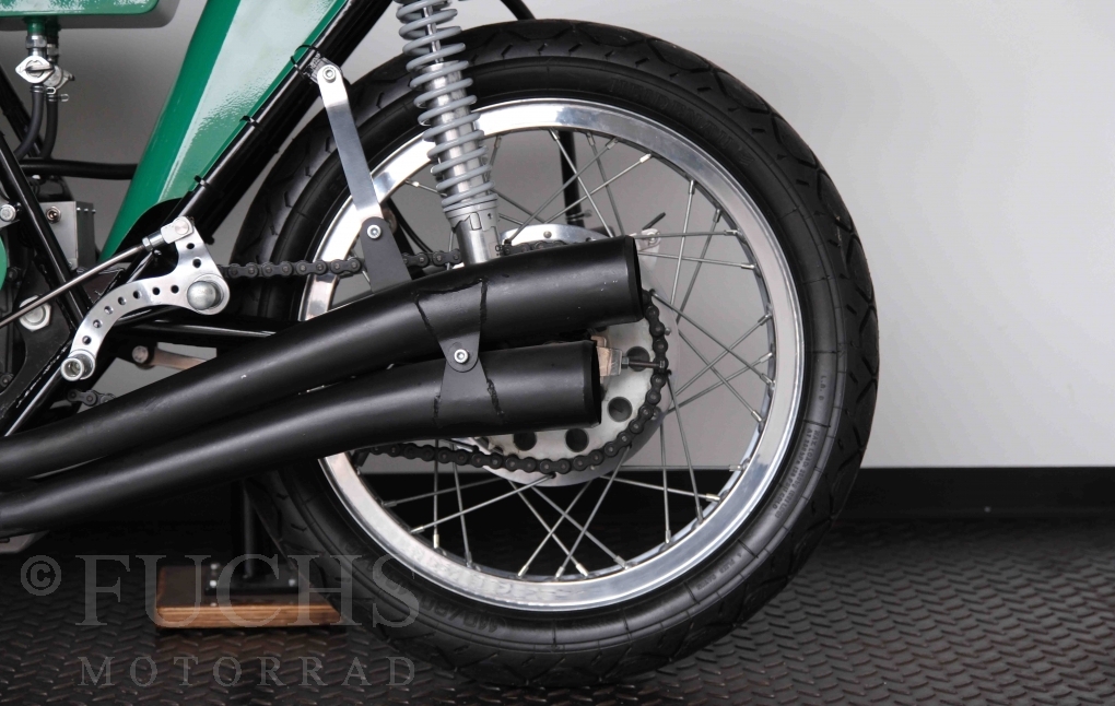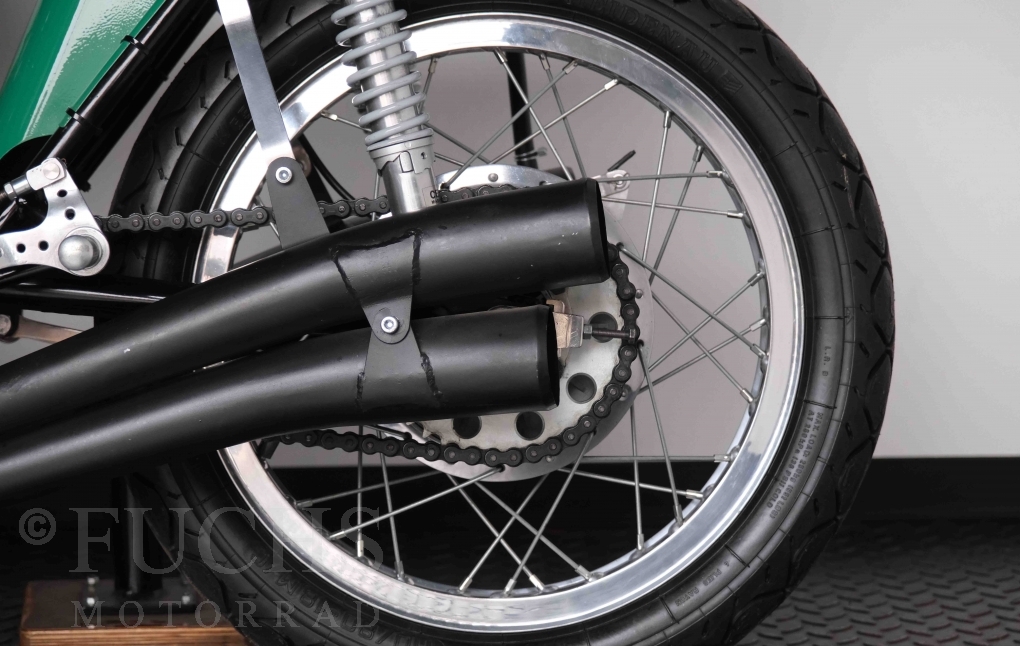 Cerani front fork, Cerani brake system, Veglia rev counter, 36mm Dellorto carburettor, Mercury magnet ignition, Kawasaki Z 550 engine with powering kit to 605 ccm. Wiseco pistons, modified camshaft, harder valve springs, dry clutch, the oil sump is comparable to the original sump.