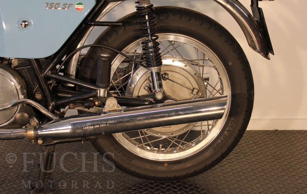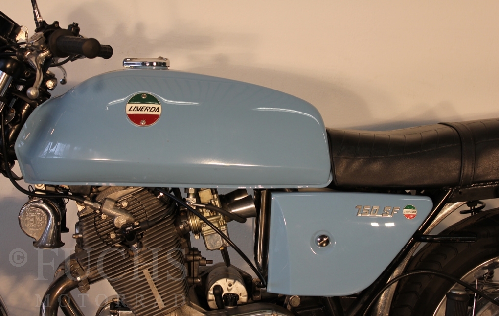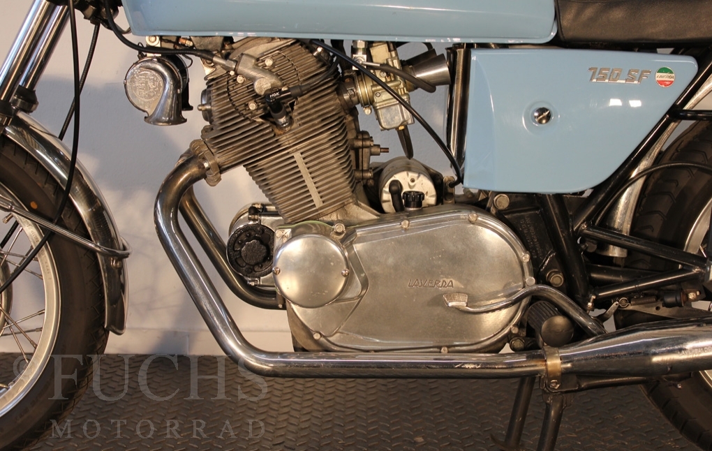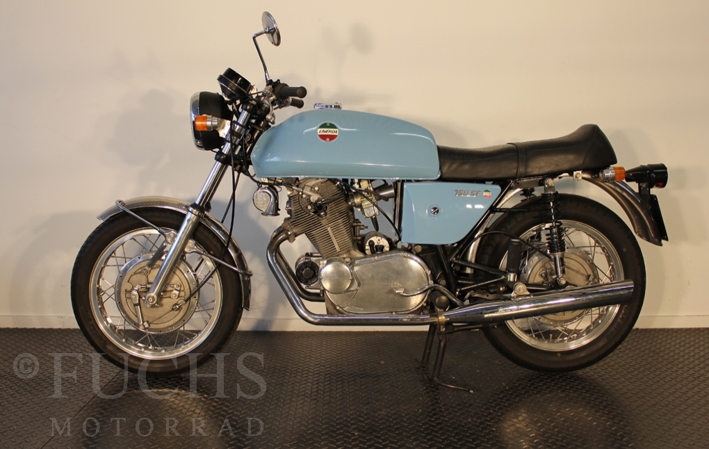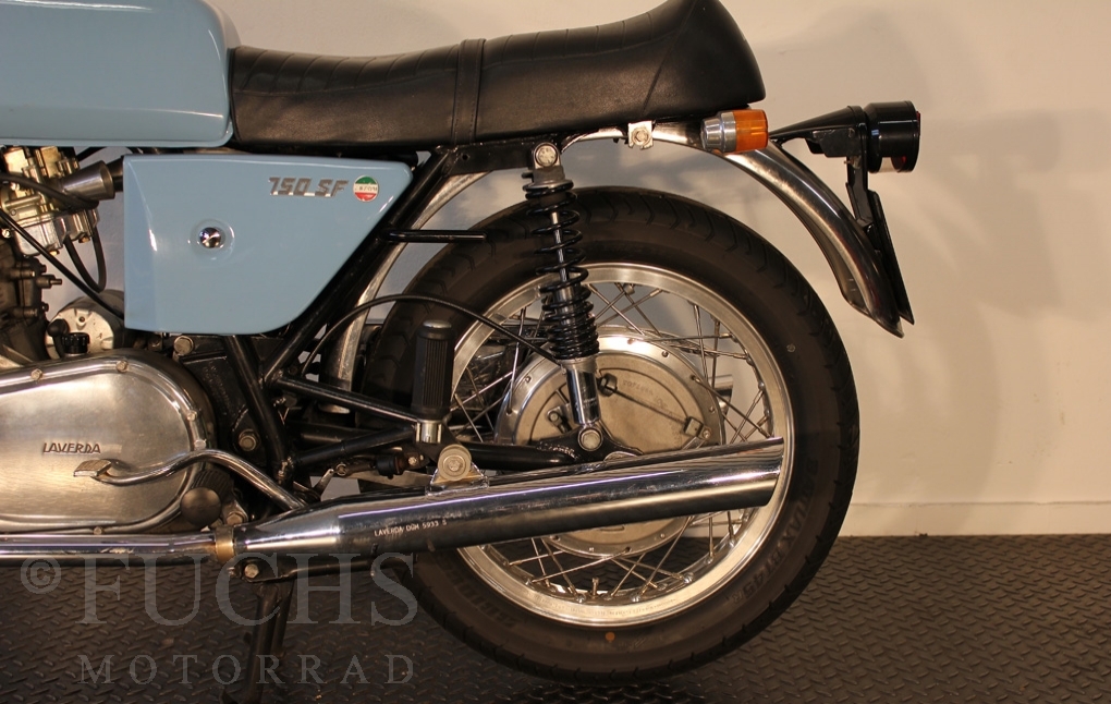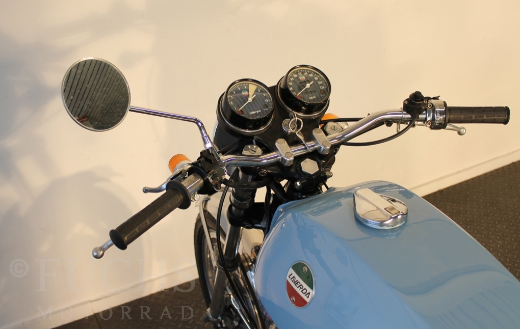 The Laverda was completely restored. Crankshaft, new bearings and balanced. The following items are new: all bearings and oil seals, clutch with improved leverage, pistons, piston rings, cylinder liners, camshafts, including all bearings, chains, stainless spokes, electronic ignition, battery, Ikon shock absorbers, mufflers, carburetors, painting, apron front. Rebuilt, the fork, brakes, starter and alternator