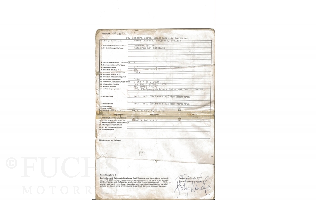 The story of our SFC begins with the initial approval of the SFC in 1974 in Austria. We have original registration paper. By Michael Stocker, the SFC came to Germany. About our vehicle, the special motorcycle magazine MO reported 25/06/2001. In subsequent years, the SFC was in the possession of collectors. Since the machine is driven, details have been modified. We have the opinion that today's appearance reflects the turbulent history of the SFC.