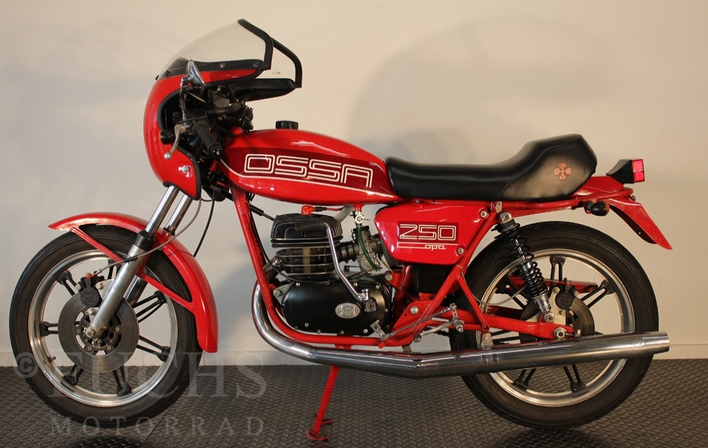 We think, that we have a very rare 2-Stroke Ossa with a regular registration paper. We know that Ossa only has built round about 600 Formula 3. Our Ossa has a very low milage. The Formula 3 looks very nice and runs perfect.