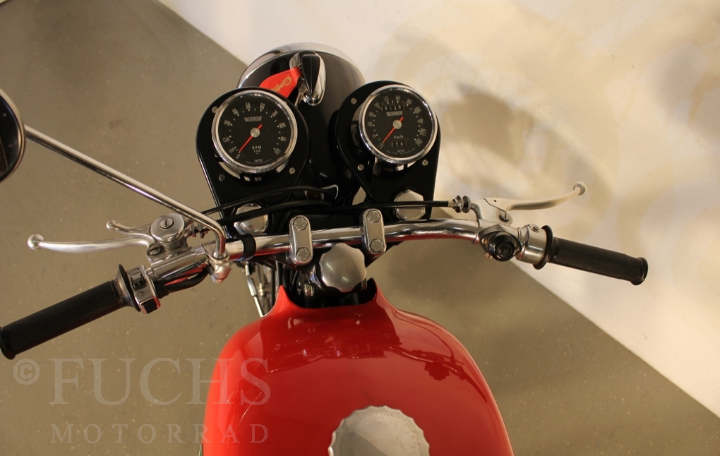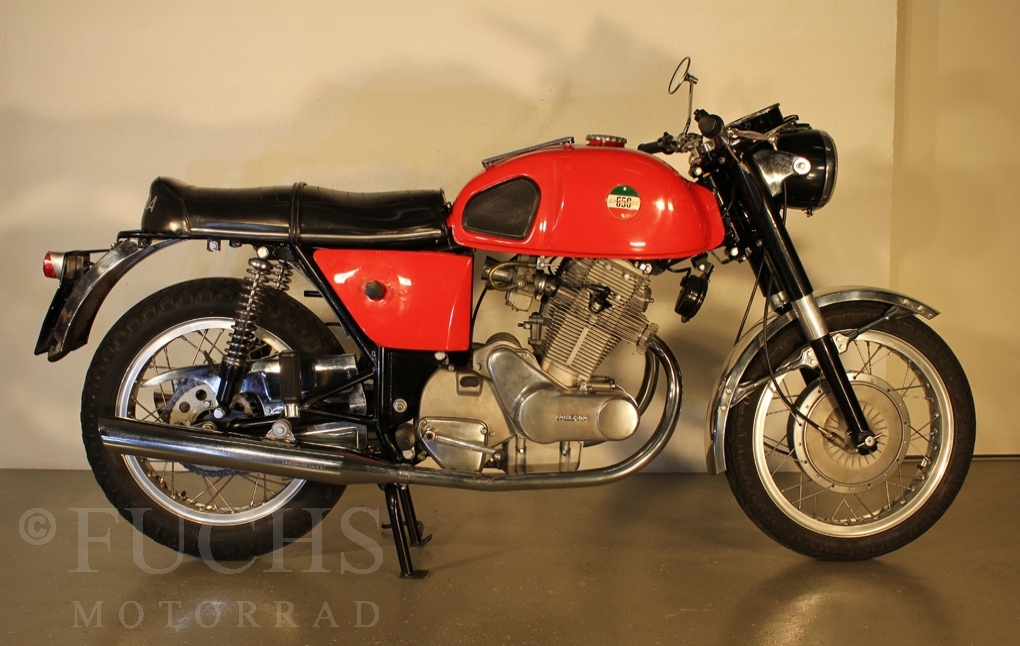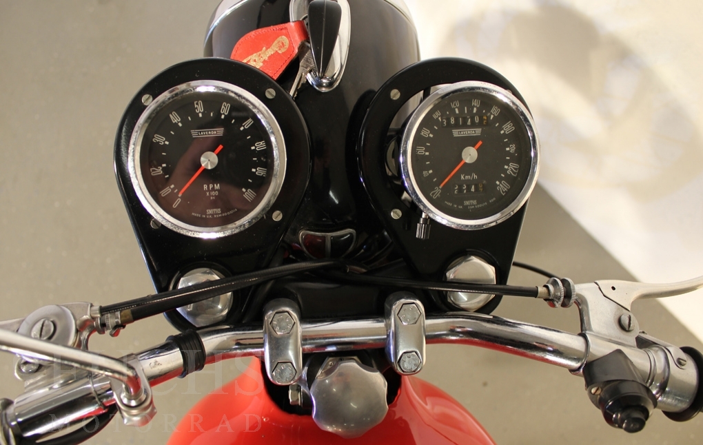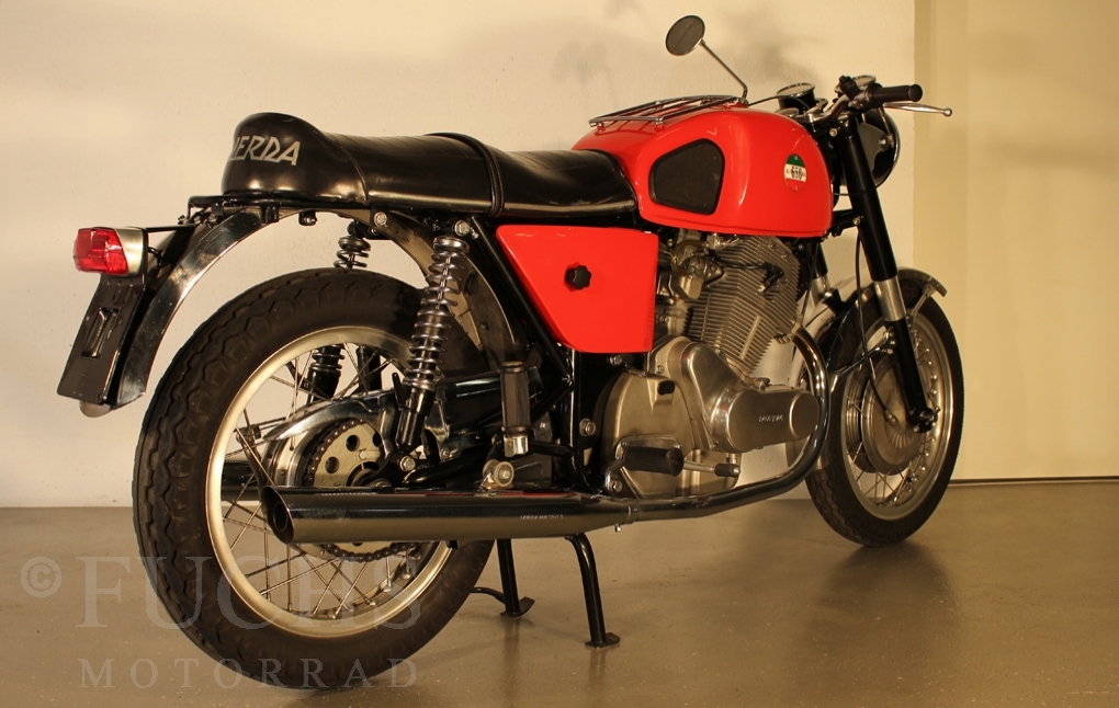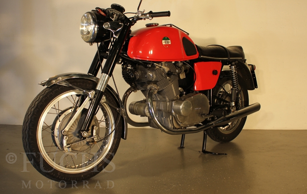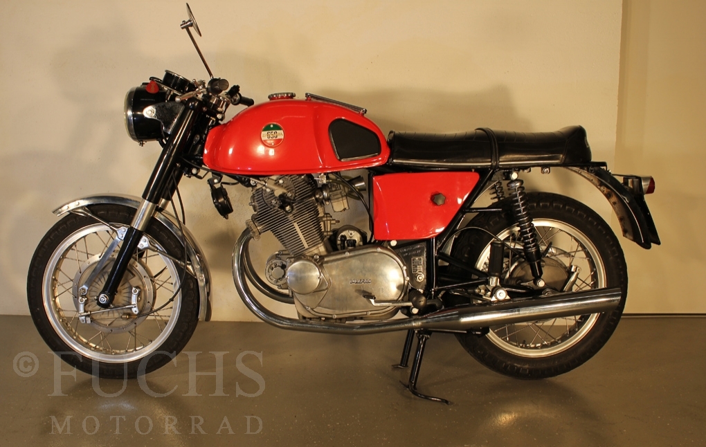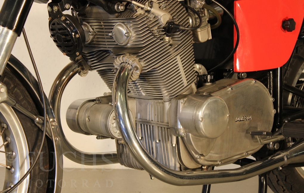 We can offer a very rare Laverda. This model was the start for the Laverda brand to built bigger motorcycles. Our 650 is one of the first 50 Laverda twins ever built. The Laverda was restored and it is nearly original.