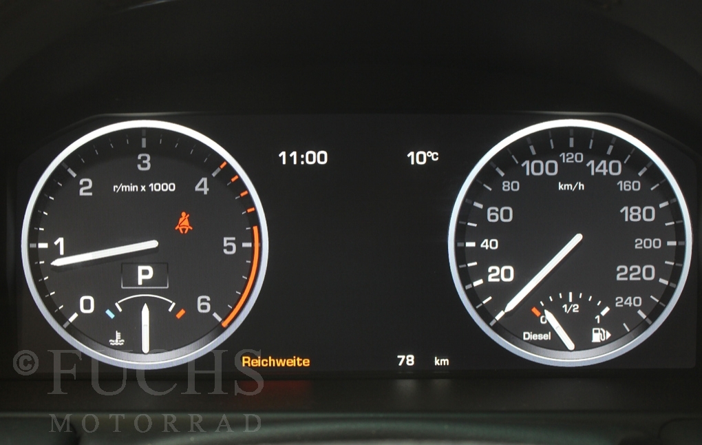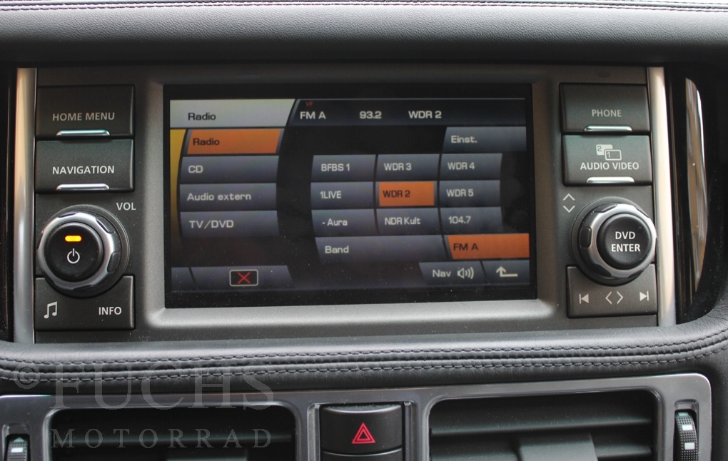 14 speakers, 2 Glove compartment, Adaptive Chassis Control (Adaptive Dynamics), Adaptive headlights, airbag driver and passenger, alarm, trailer stabilization program, audio-navigation system: hard drive navigation including TV function, audio controls on steering wheel, Audio System Premium Harman Kardon Logic mirrors electr. folding, Electric mirrors. adjustable and heated, hill descent control, Onboard computer, Brakes: Brembo, Contour seats in the rear, Contour front seats, dual sun visors, Dynamic Response system (Active suspension stabilization), parking sensors, electronic, electric brake force distribution, Heated front window, luggage compartment capture (AC), belt tensioners, belt tensioners with force limiters, Home Link (garage door opener integrated), interior: hardwood, interior: leather, interior: seams for leather seats contrast color, interior mirror with auto dip, instrument display TFT color display (12 inches) body: 5 doors, automatic climate control, driver-side knee airbag, rear head airbag system, curtain airbag system, front, headphone jacks in the rear, radiator titanium finish, seat lumbar support, front left and right, electr. adjustable, heated steering wheel, steering column (steering wheel) electr. adjustable, alloy wheels, air intake aperture titanium look, regulated air suspension, electronic, memory function for front left seat, mirrors, steering, engine 3.6 liters - 200 kW TD V8, multimedia system in the rear, parking brake, electrically, wheelbase 2880 mm, tire pressure monitoring system, reversing camera, Schalt-/Wählhebelgriff leather, rain-sensing wipers, Sunroof electric, side airbags, front seats air-conditioned, ski bag, special edition Autobiography, heater with remote control, start-stop button (start / stop system without key), traction control, tinted windows, Roll Stability Control (RSC)