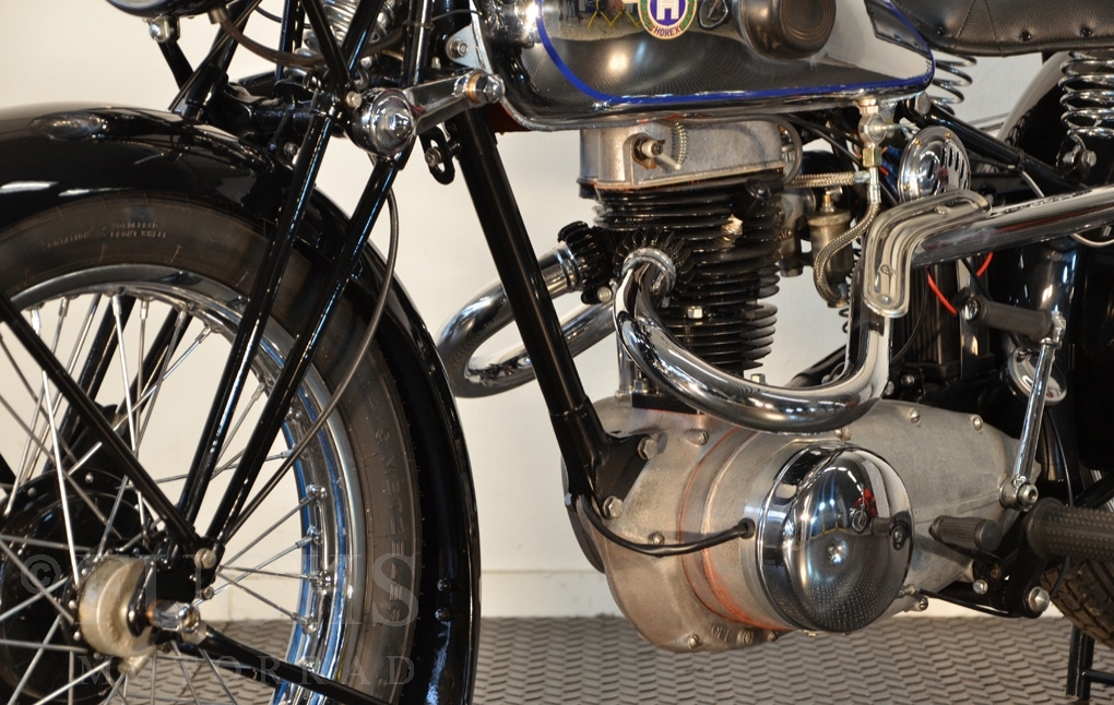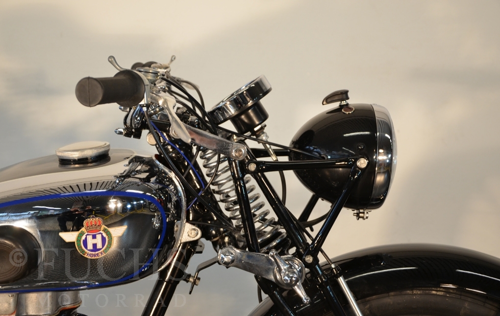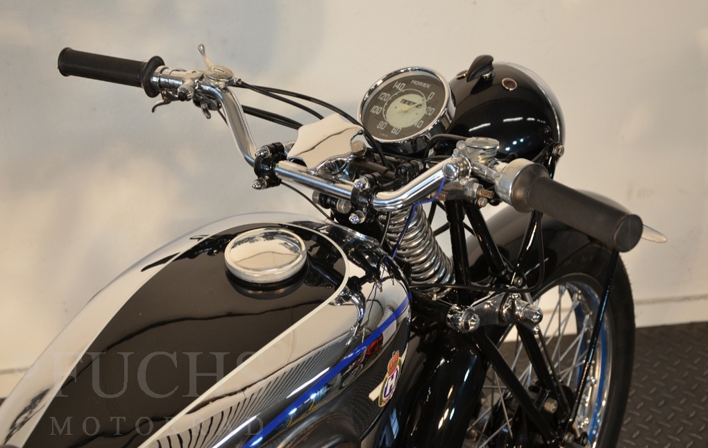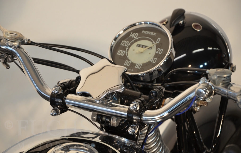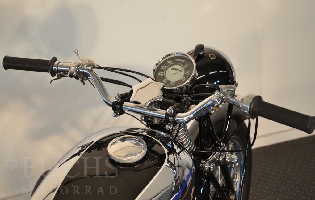 Herbert Ammon has beautifully documented the restoration of these Horex SB 35 on his website. Without question he has built a very nice machine. The SB 35 was prepared as pre-war motorcycle with a quantity of 1,200 pieces. The long period of time have considered only a few vehicles. We can offer a ready to drive, very nice machine.