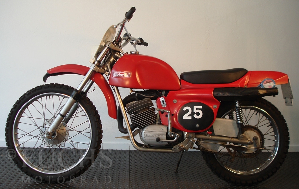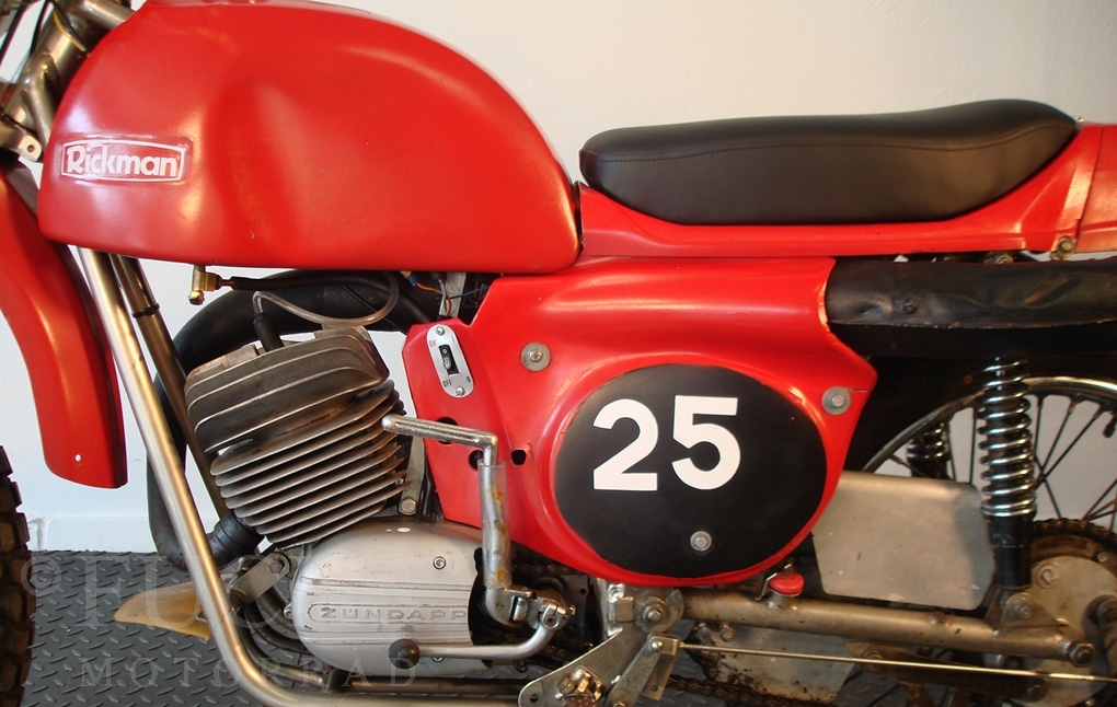The Rickman Company begun the production of frame with the Zuendapp engine in 1970. Our model is nearly original. We have made a new seat. We would say that the R 125 MX has a used condition.
