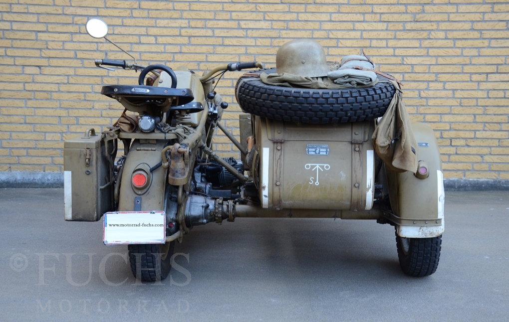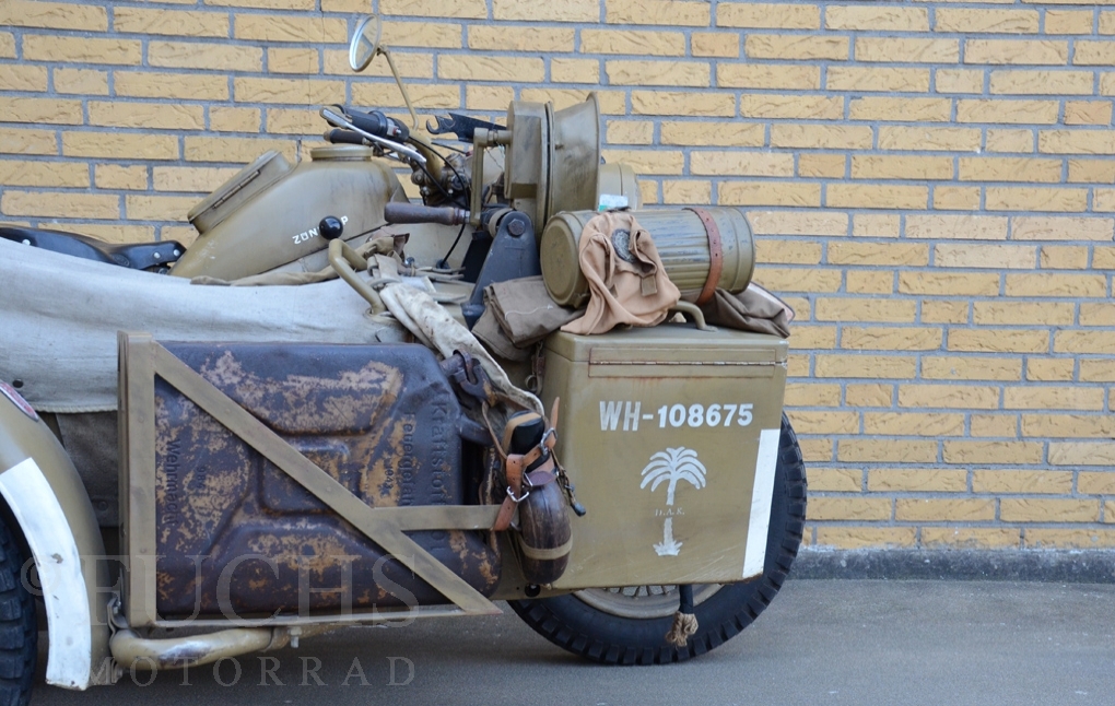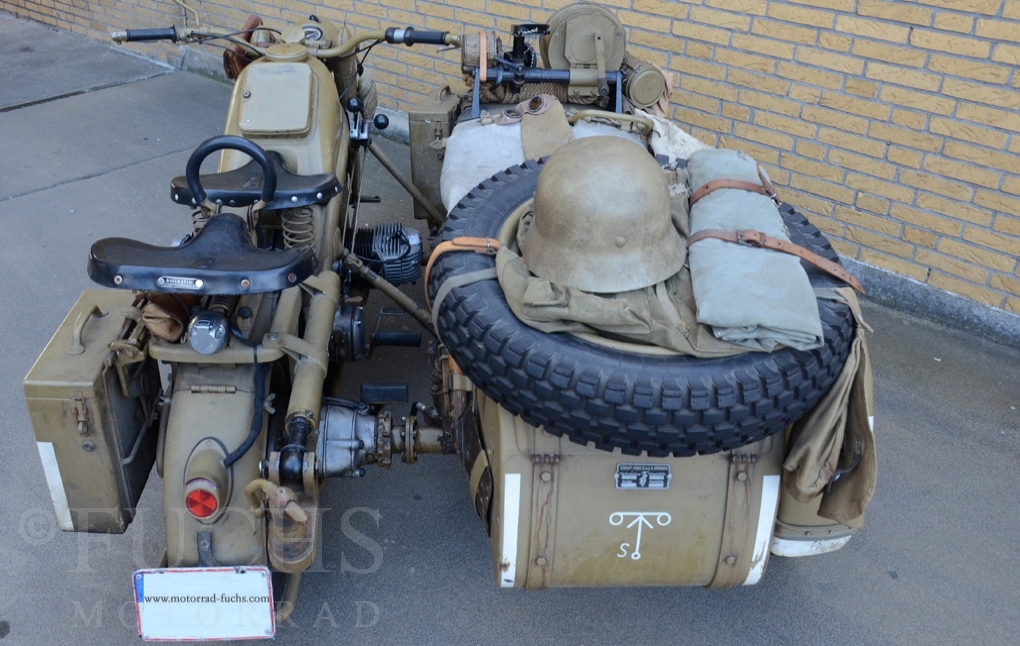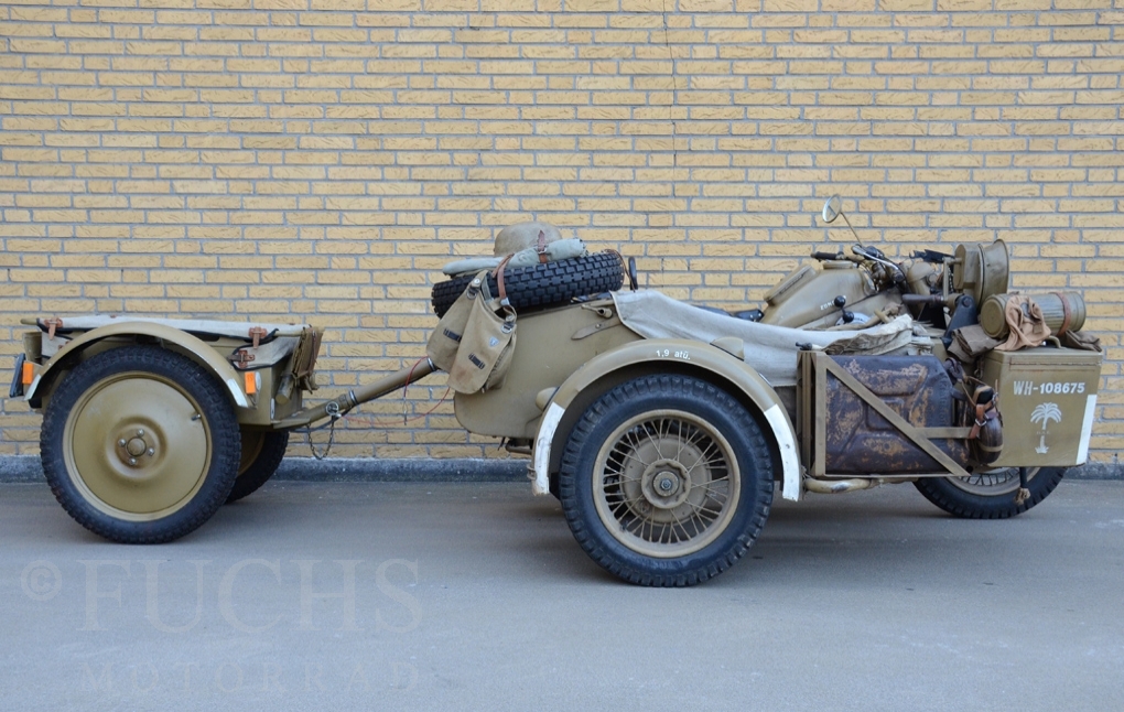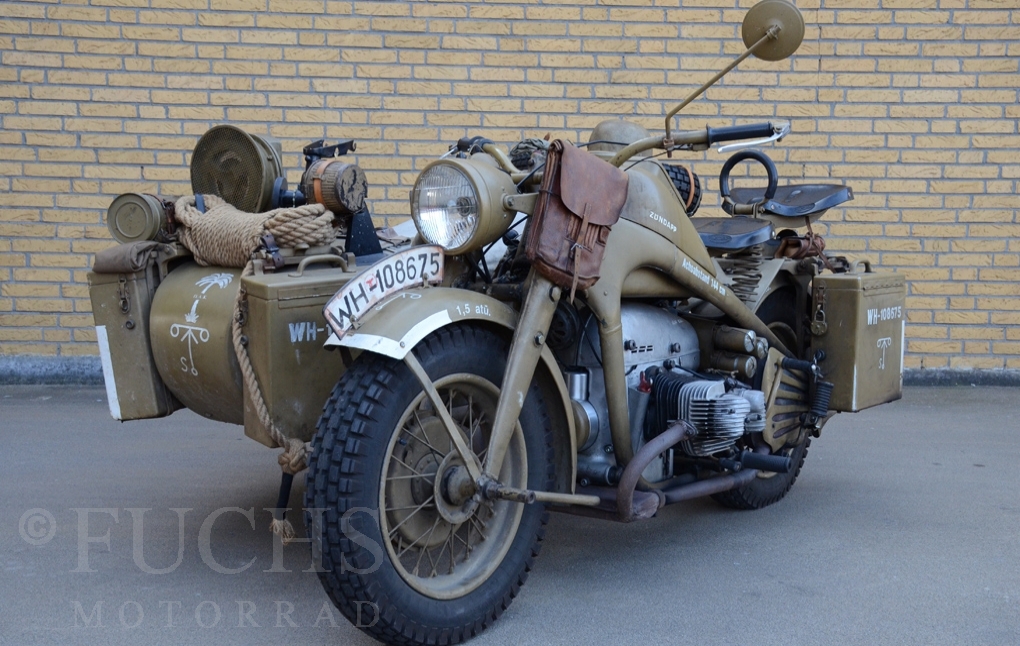 This Zündapp World War II sidecar combination was made in 1943. We sell the complete combination including trailer and a lot of special parts. The engine runs very well and the engine was partly overhauled. We have also modified the electric system. We are happy to offer also a lot of special details: