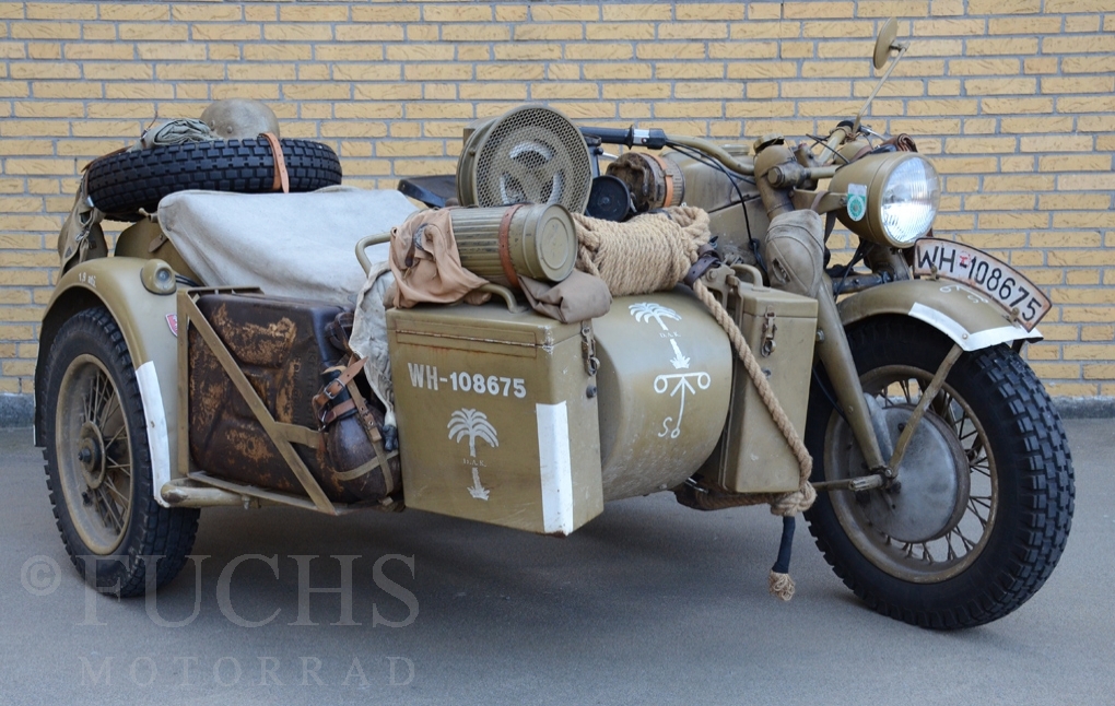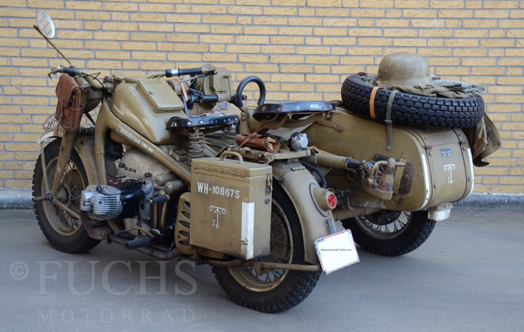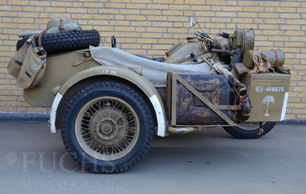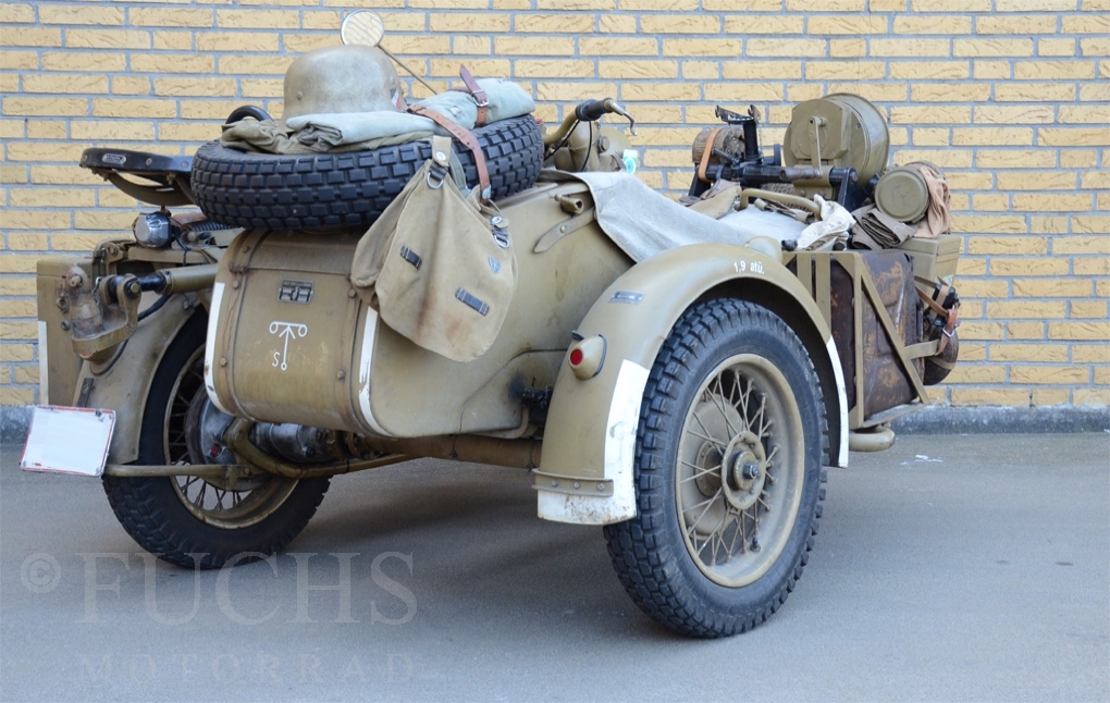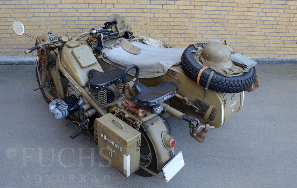 This Zündapp World War II sidecar combination was made in 1943. We sell the complete combination including trailer and a lot of special parts. The engine runs very well and the engine was partly overhauled. We have also modified the electric system. We are happy to offer also a lot of special details: