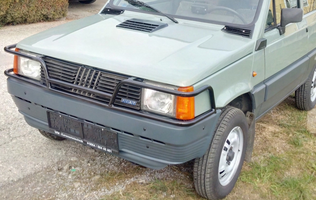 We can offer a first-class, conserved Panda 4 x. 4 The car is in original condition and comes from the first STEYR FIAT 141 A1 series. Our vehicle was costly, professionally restored and converses. Weighing around 800 kg, this small four-wheel drive Panda copes almost every mountain. Our Panda is ready to use. We deliver with German vehicle documents.
