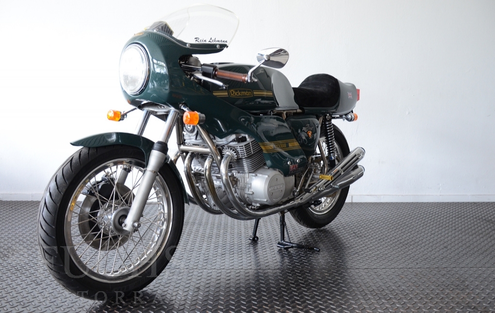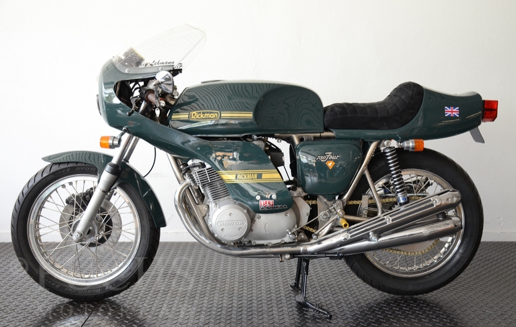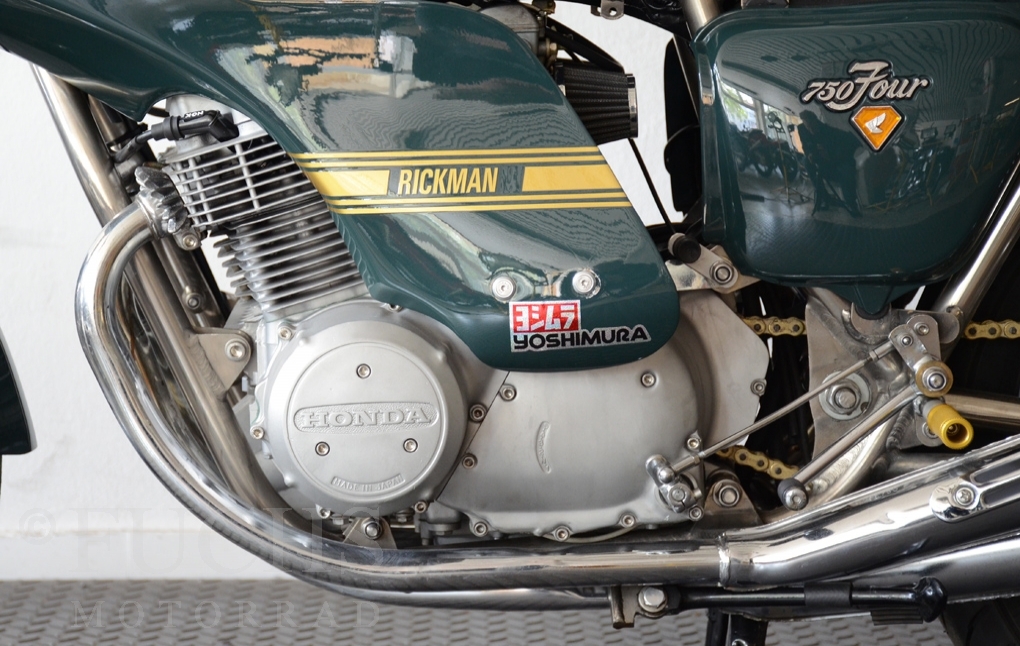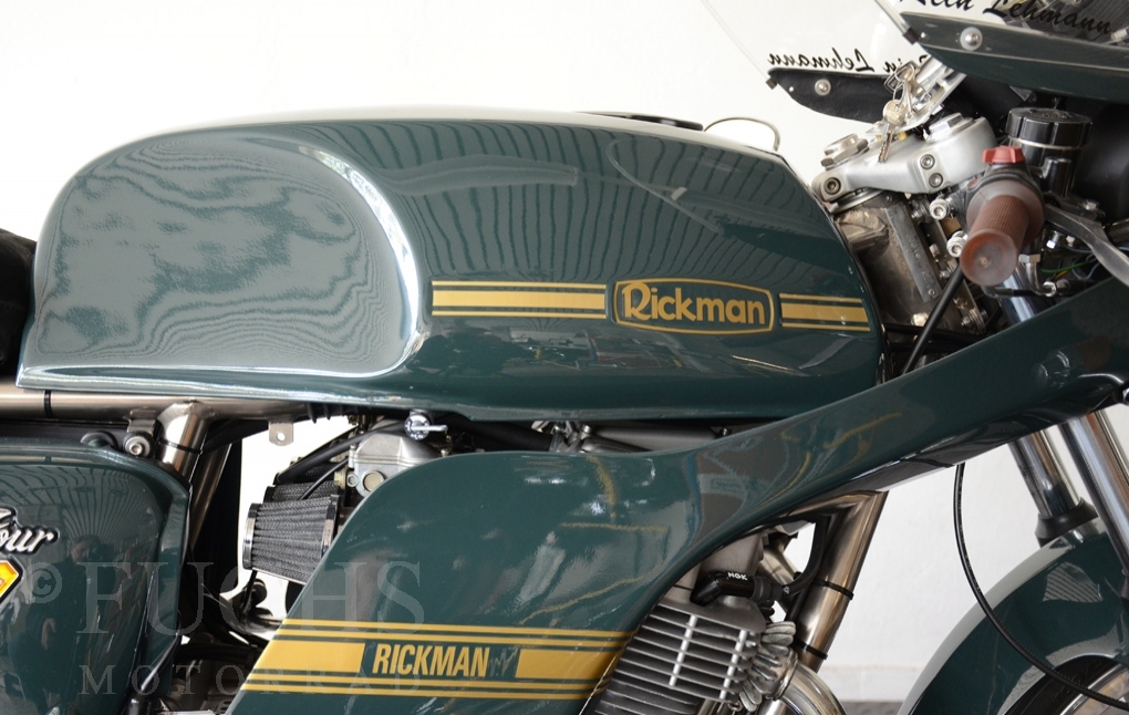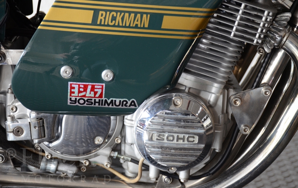 The Rickman has got an german registration in 1975. Our Rickman with the Honda CB 750 four engine was fully restored with an engine overhaul. The machine is in very good condition with a small flaw. Custom Paint and chrome parts are perfect. The engine runs excellent.